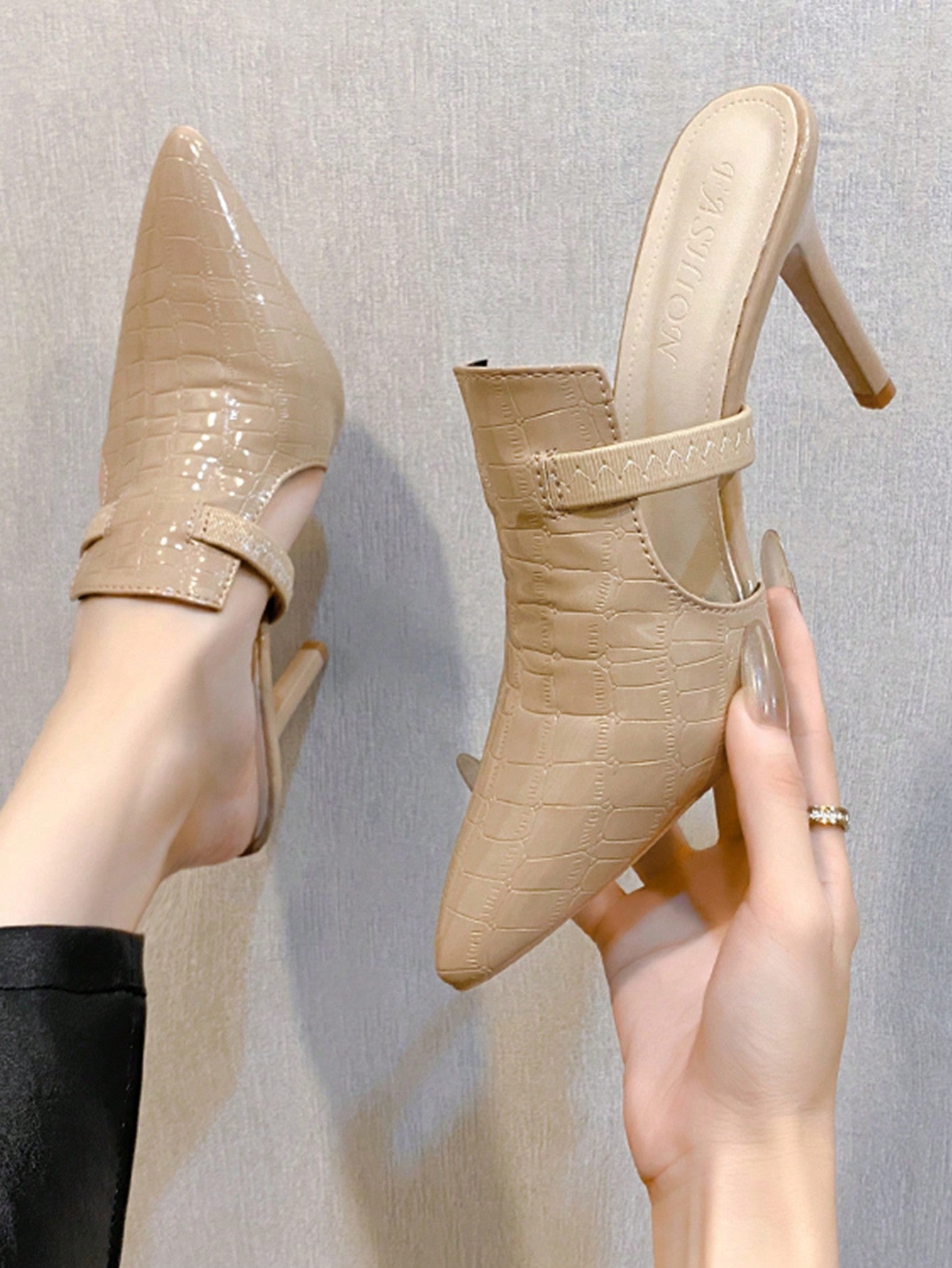 صندل نسائي بكعب عالي و مغلق بطراز أوروبي أمريكي، نصف شبشب و نصف صندل بلون سادة