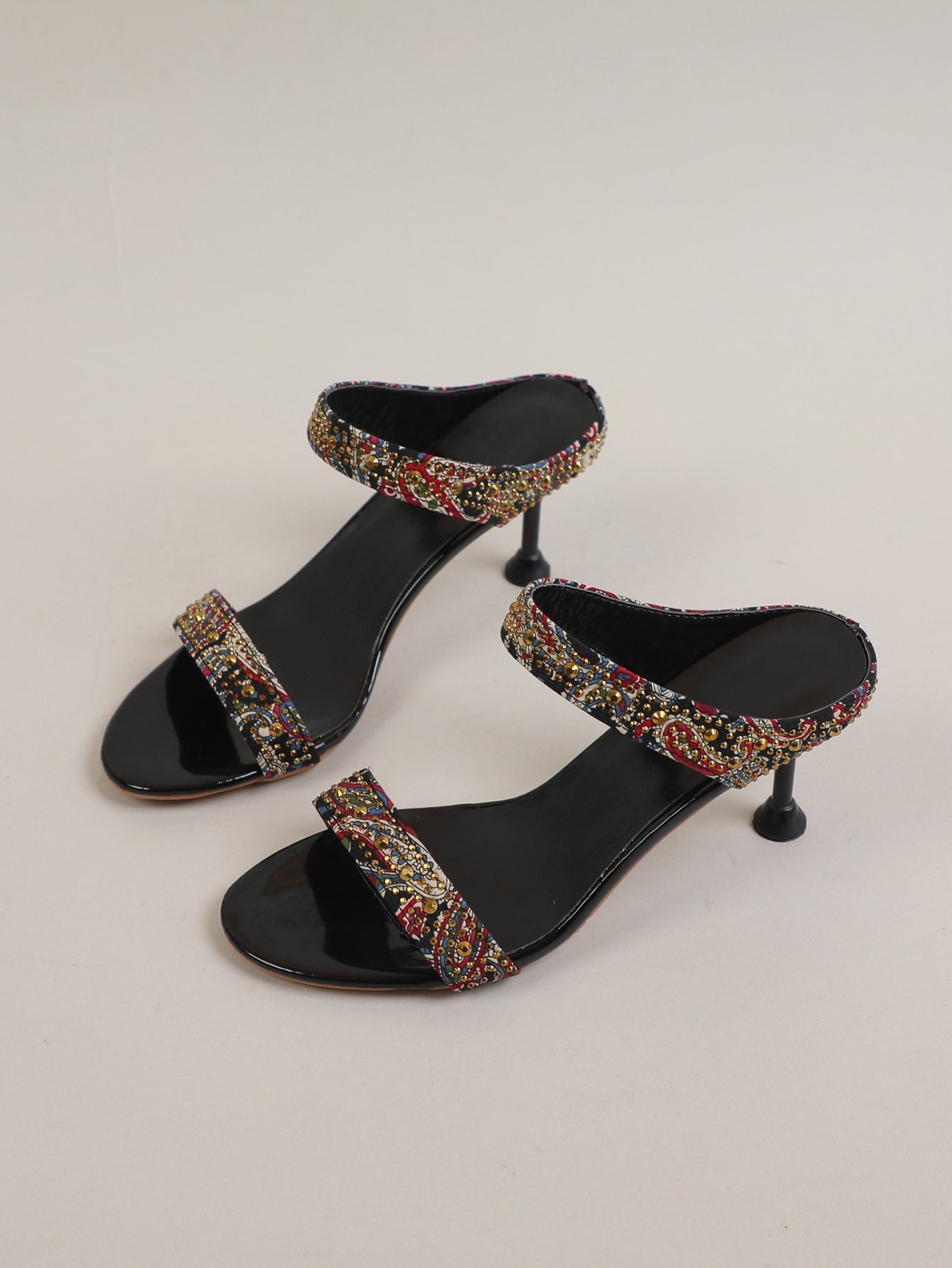 صندل نسائي بكعب عالٍ مرصع بالألوان، صنادل بكعب صيفية عصرية