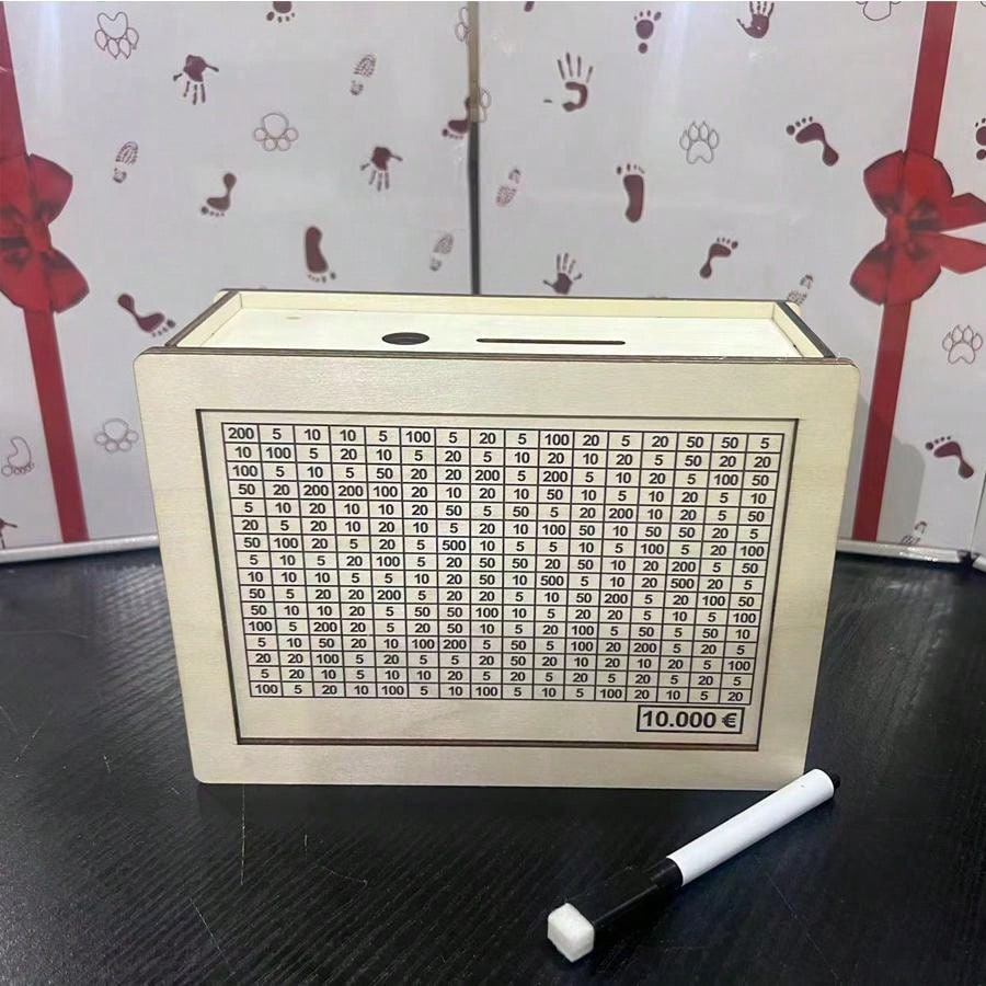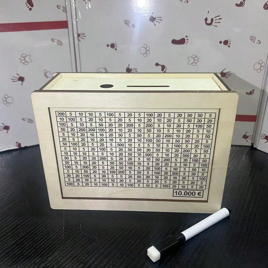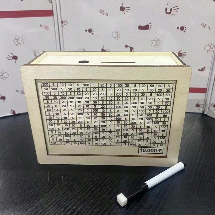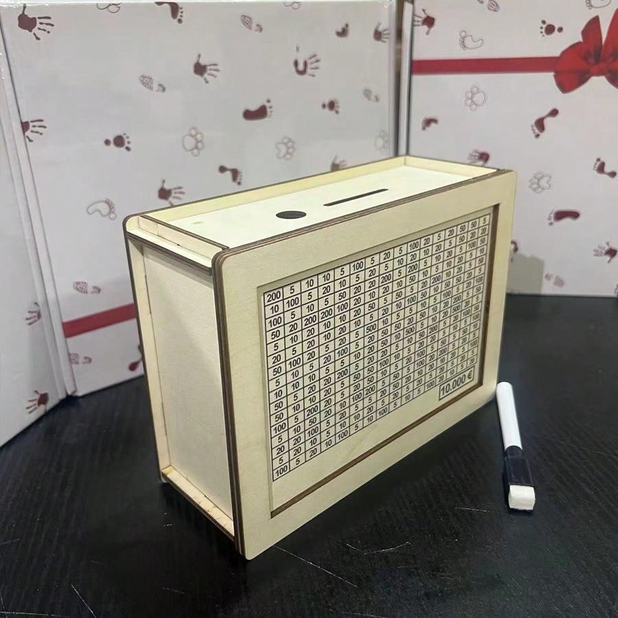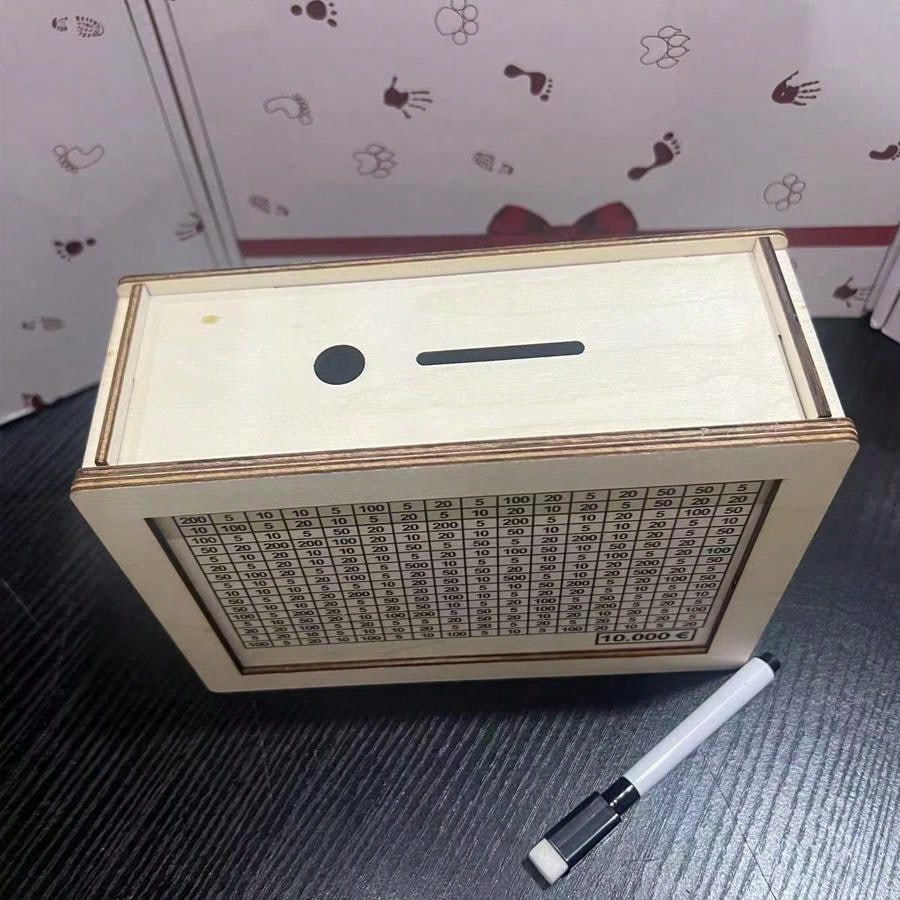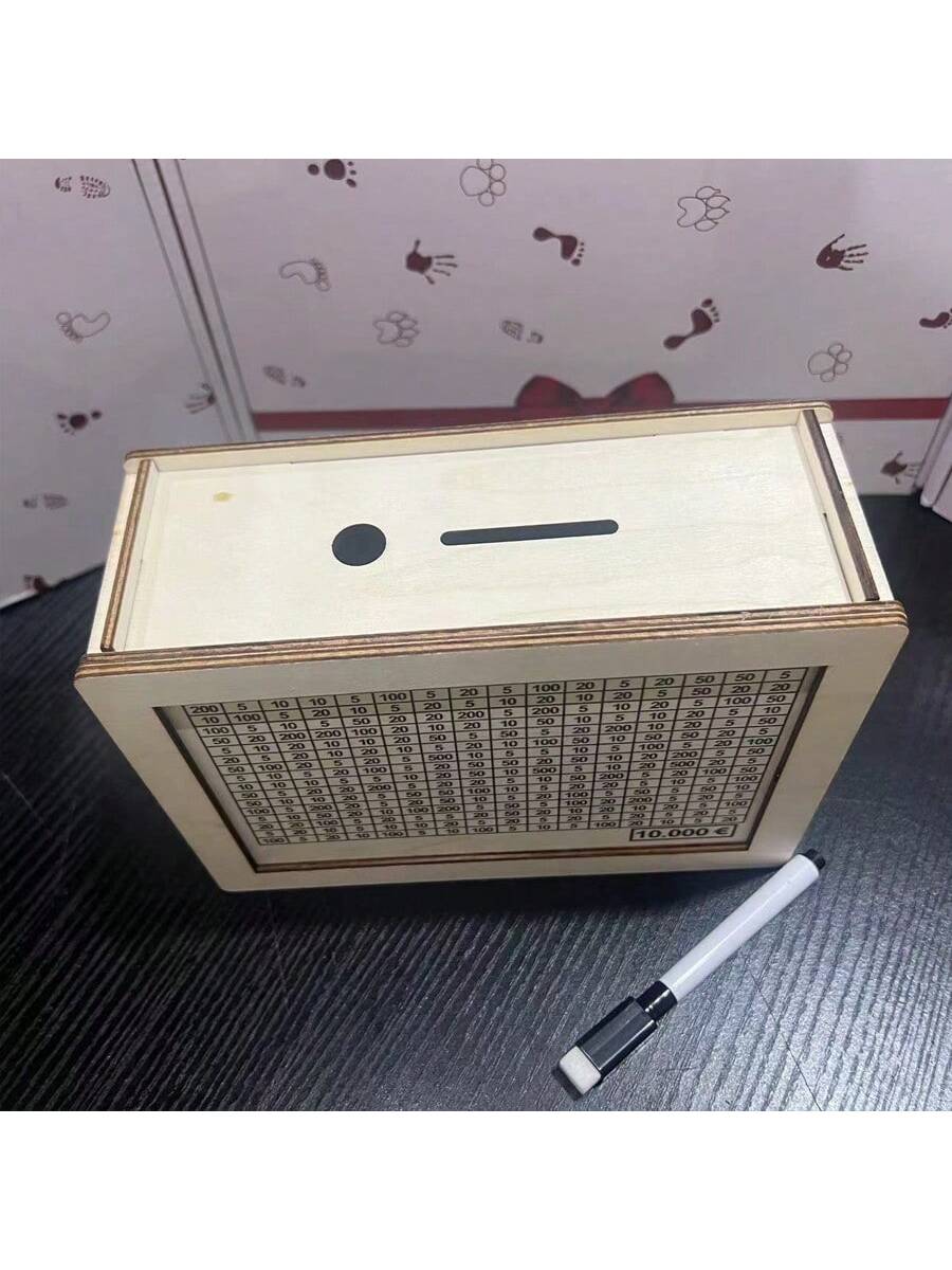 صندوق أموال خشبي أبيض يحتوي على عداد لمكتب المنزل لتوفير النقد