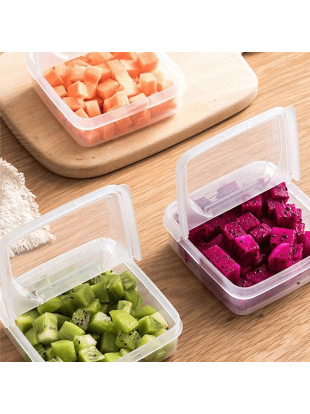 صندوق تخزين للثلاجة قطعة واحدة ، حاوية للحفاظ على الطازجة للمكعبات الفاكهة والجبن والصلصة ، مع غطاء ، شكل مربع