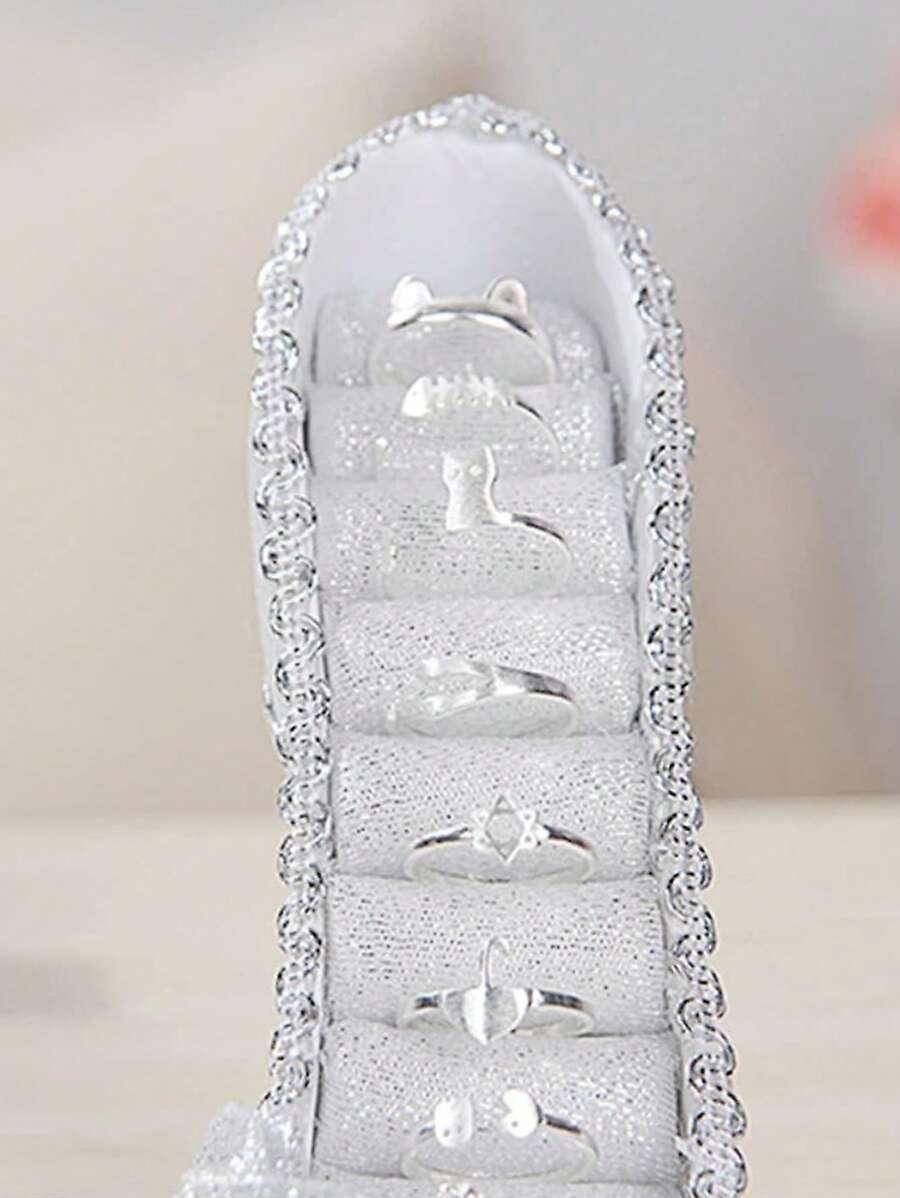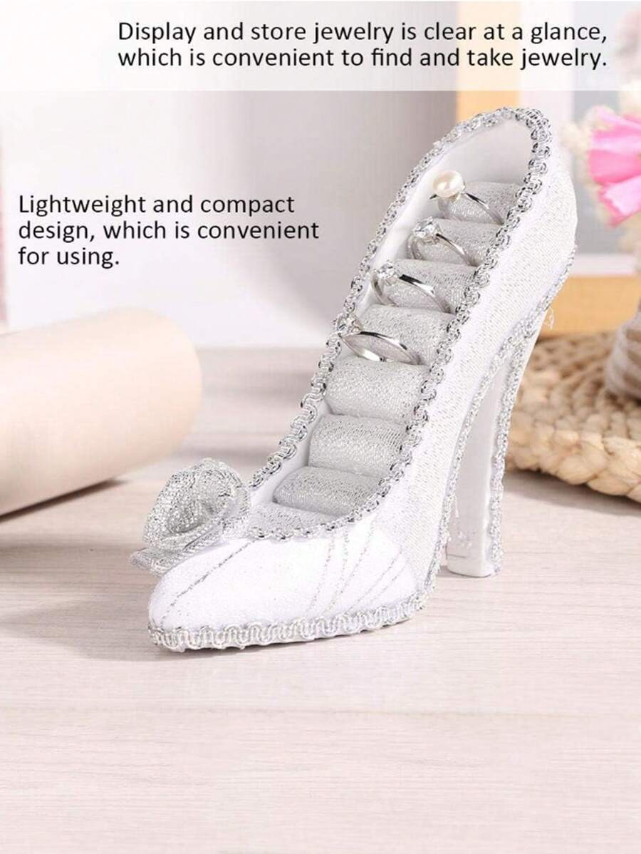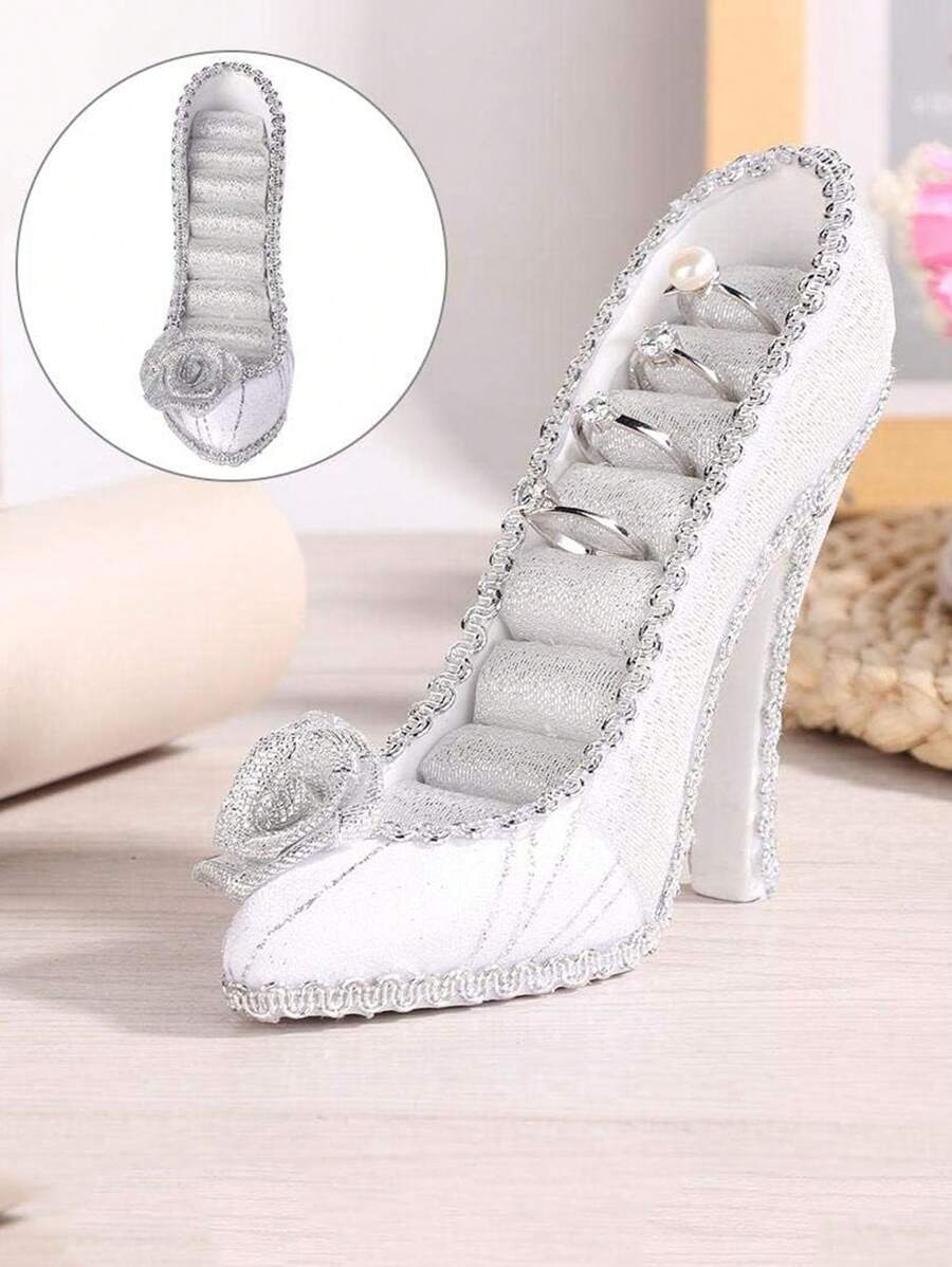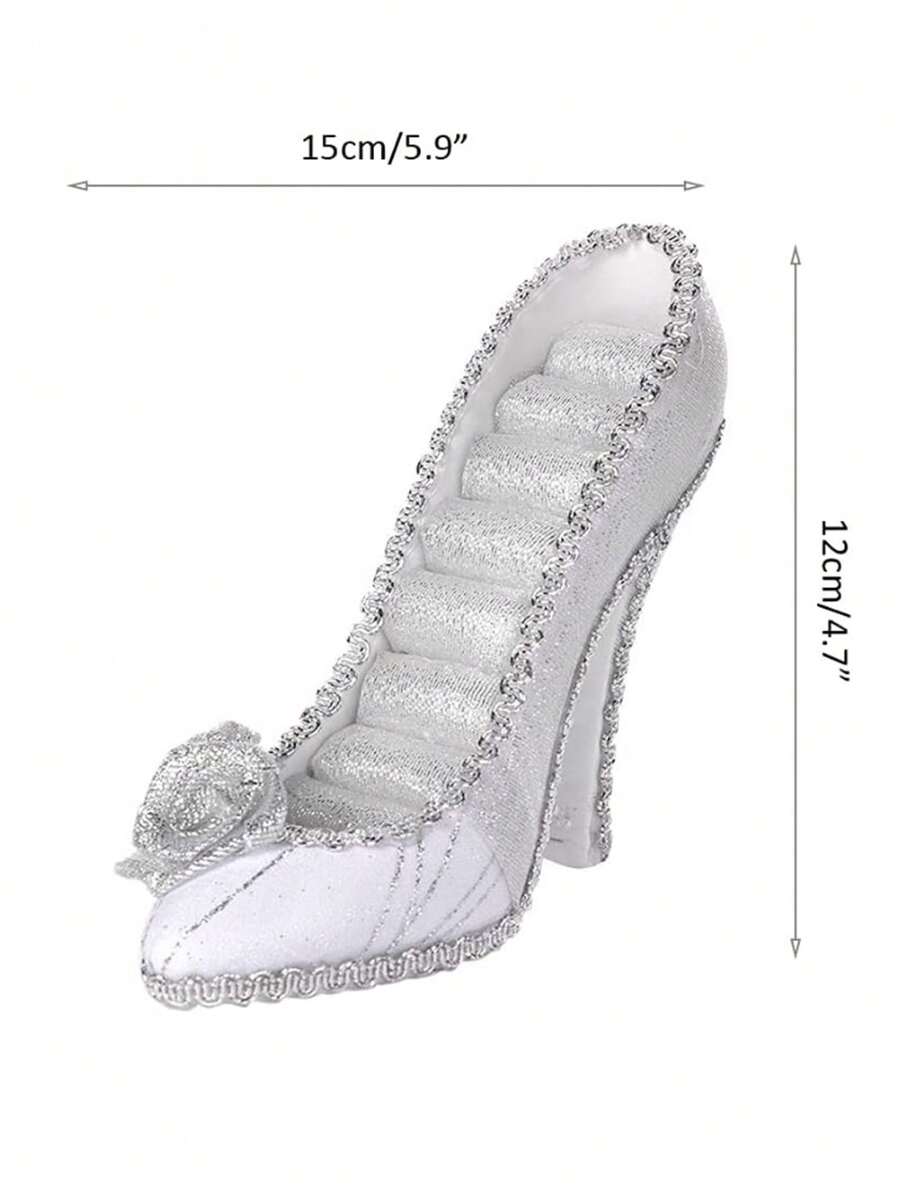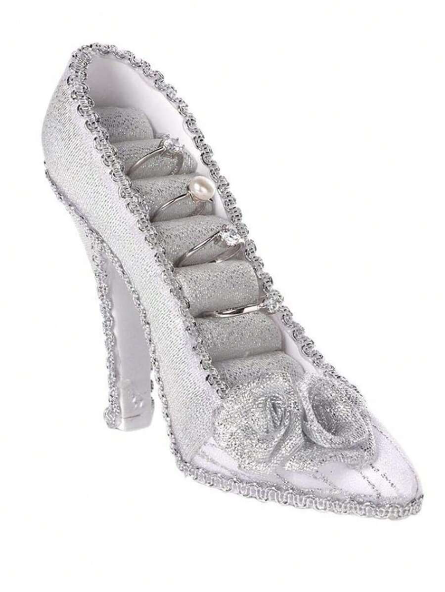 صندوق تخزين مجوهرات و حلقات على شكل حذاء كعب عالي فضي اللون