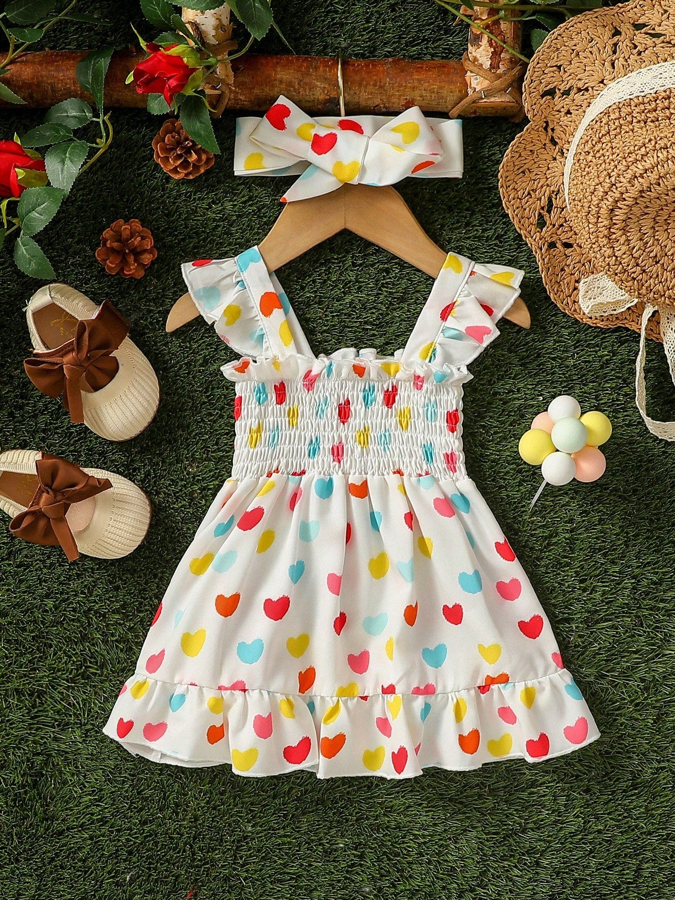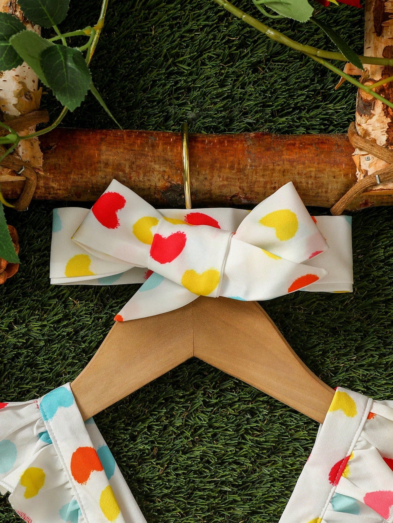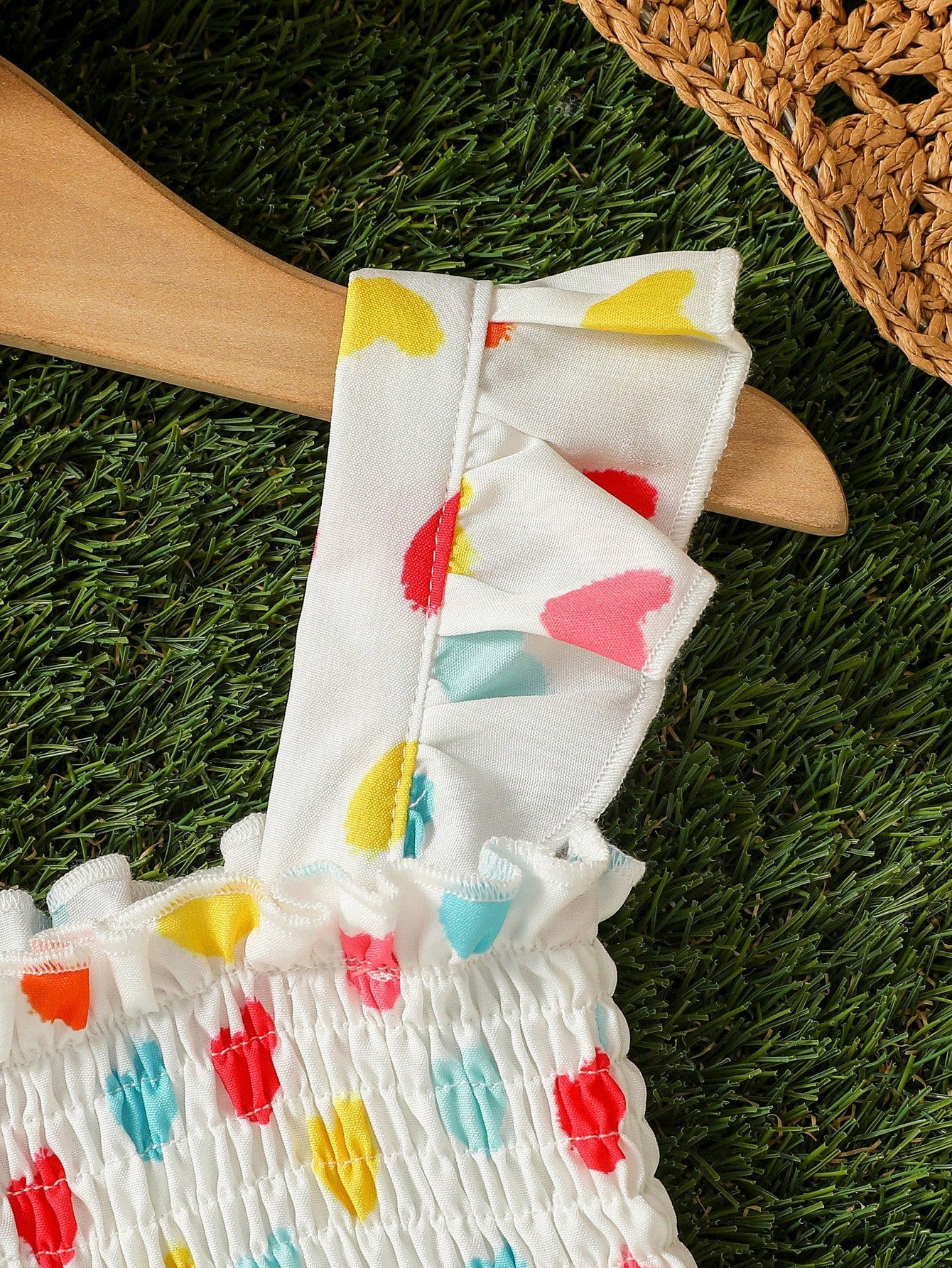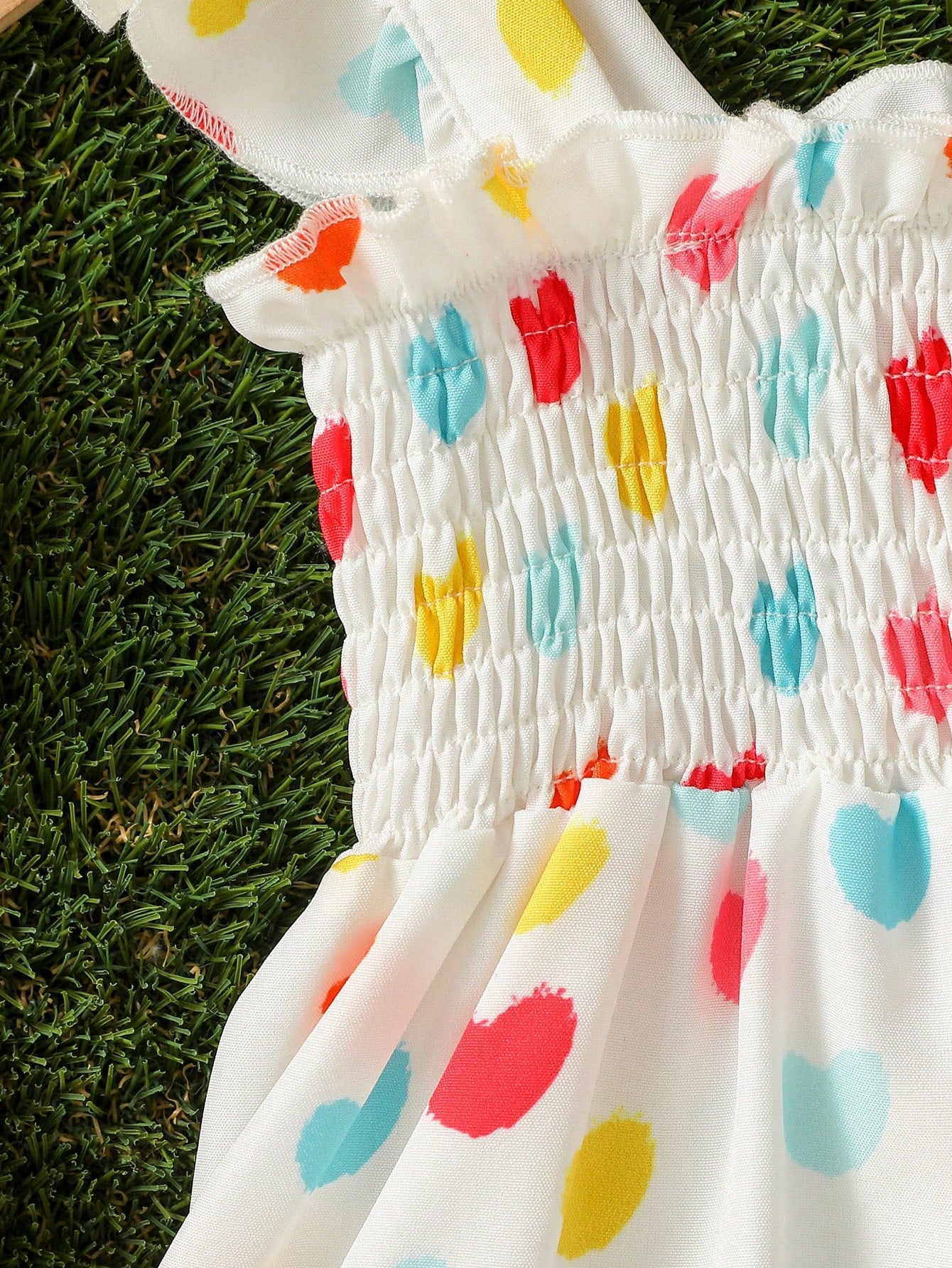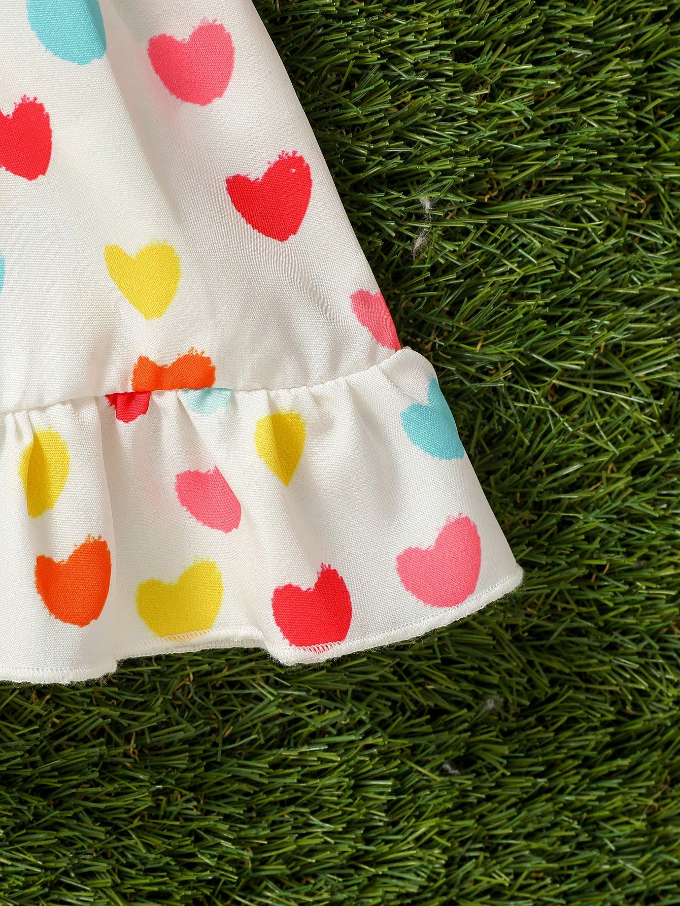 طفلة نمط القلب فستان الشمس طبقة مزدوجة حزام كشكش