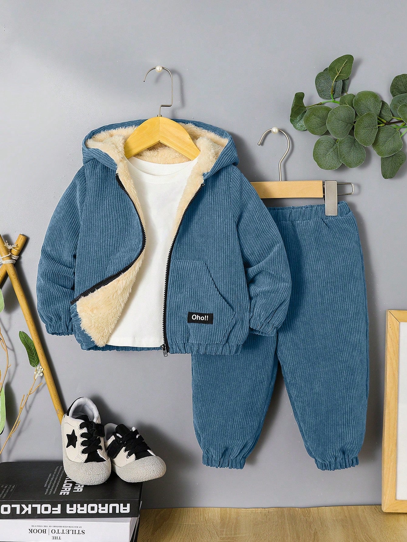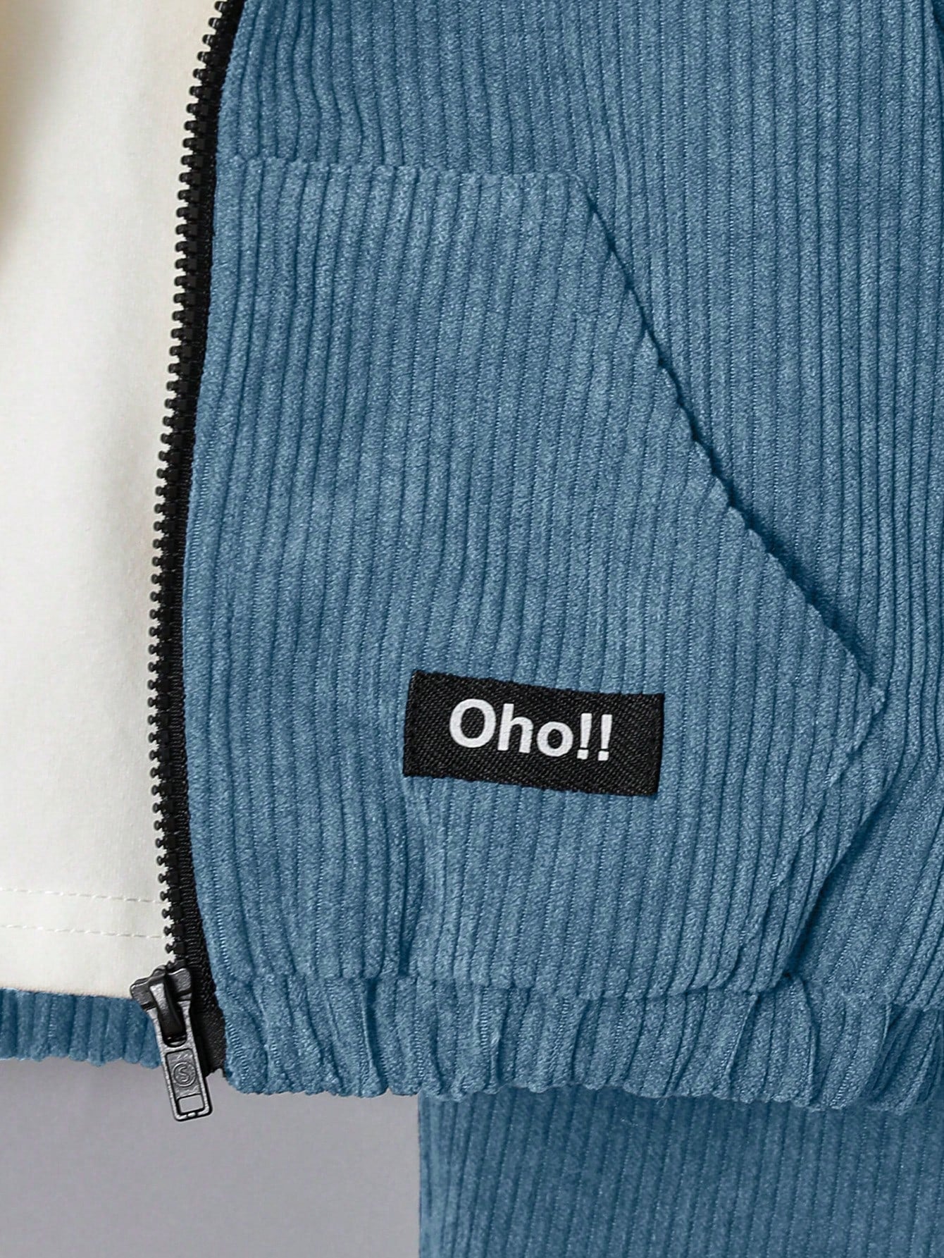 طقم بنطلون برباط خصر مرن وسترة كاجوال خارجية