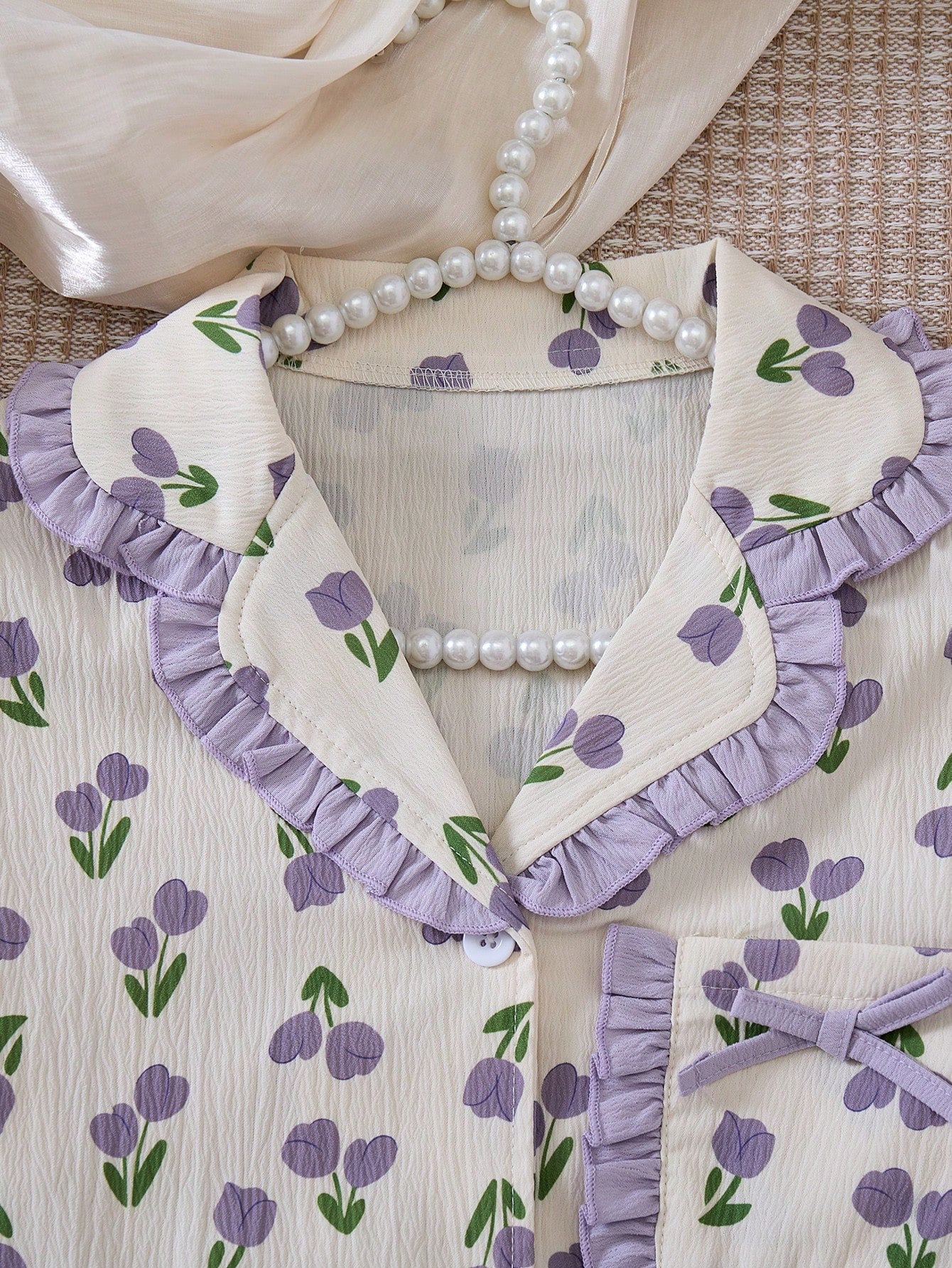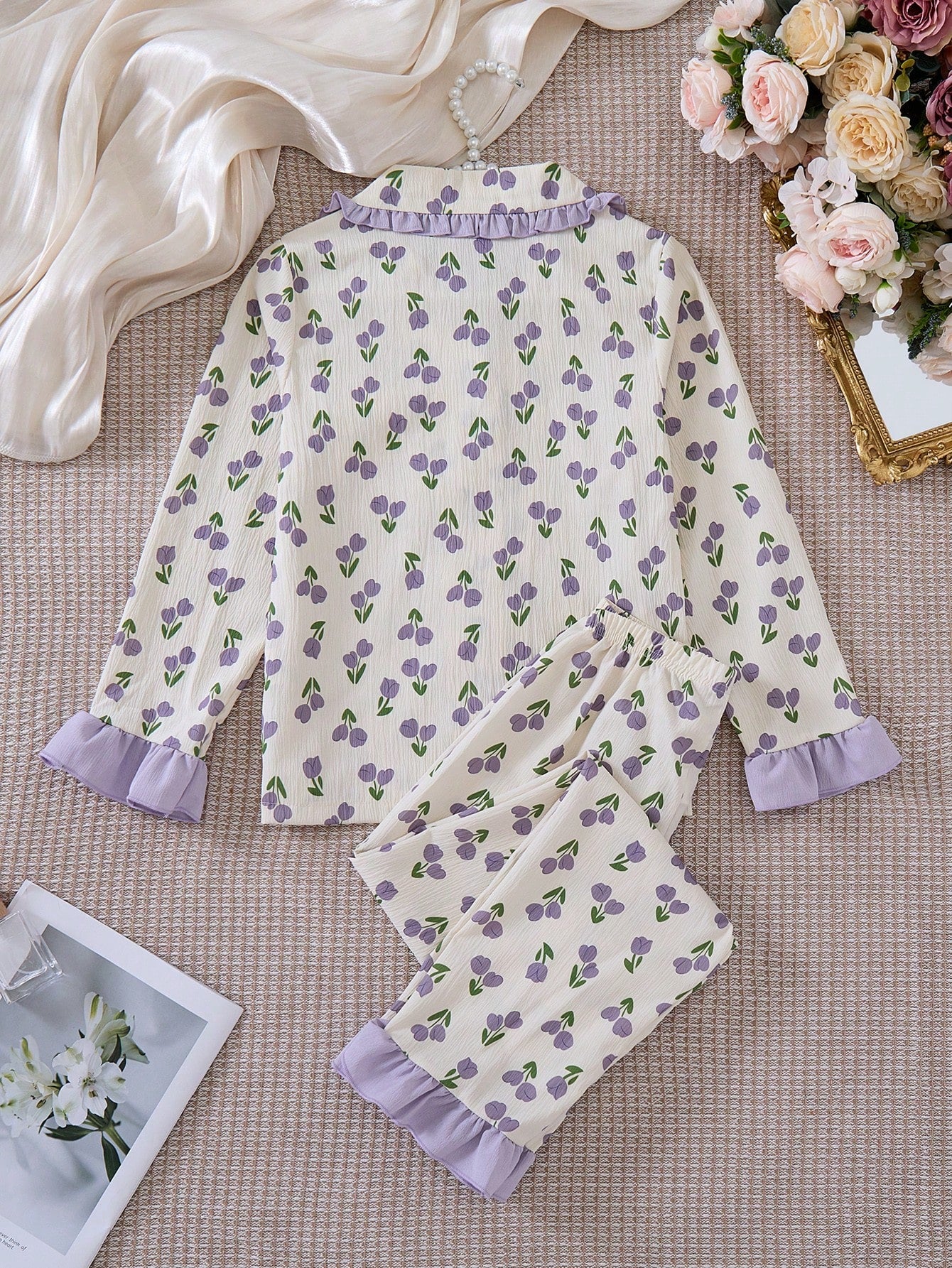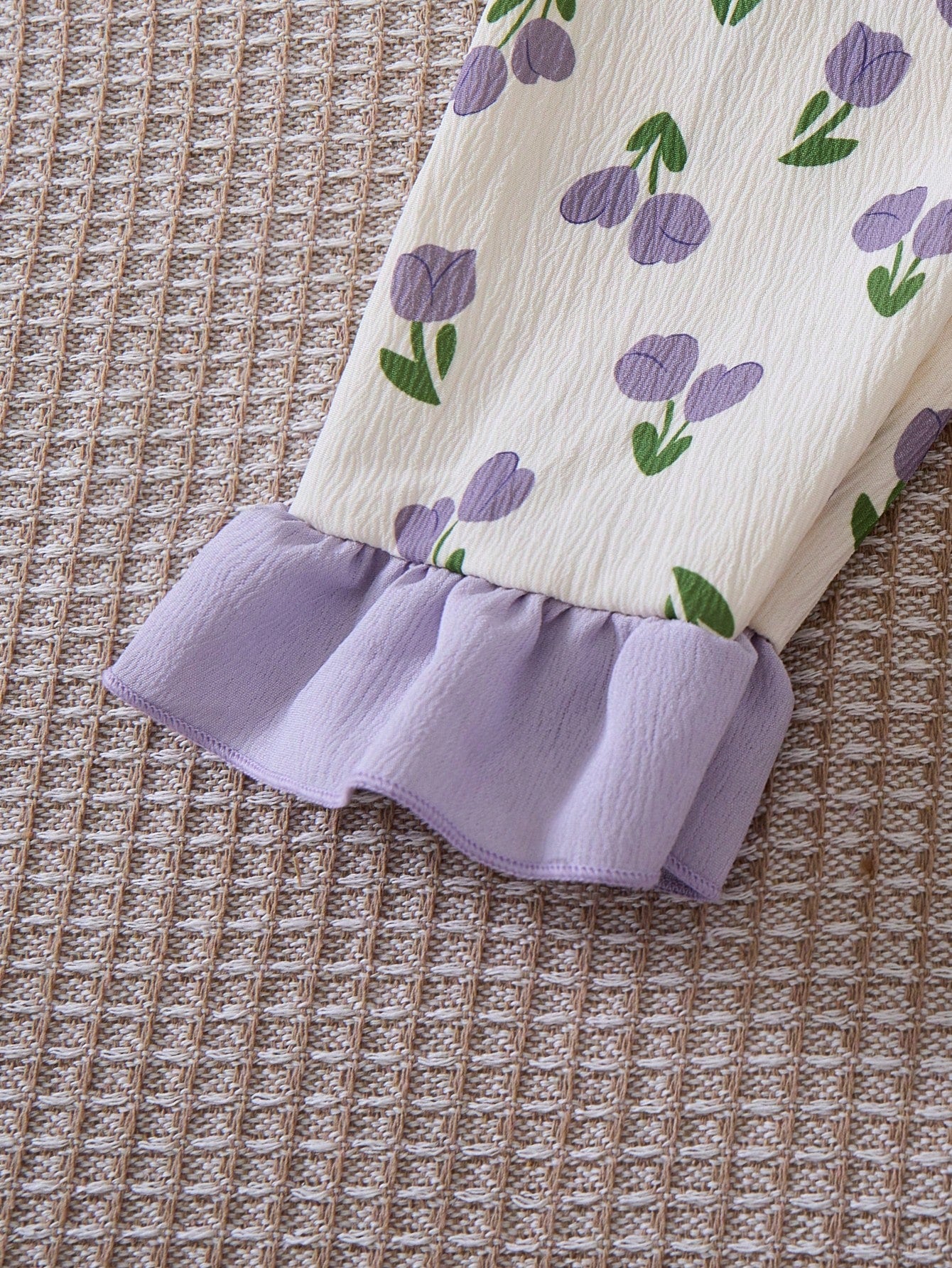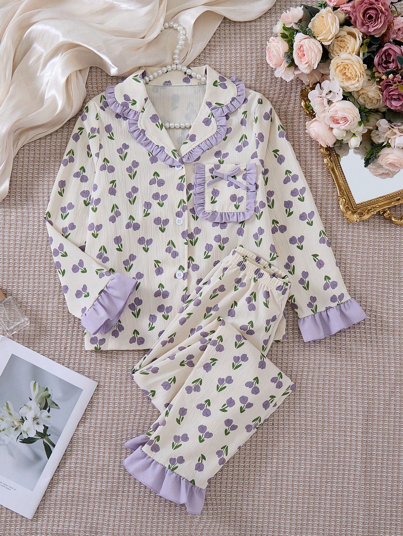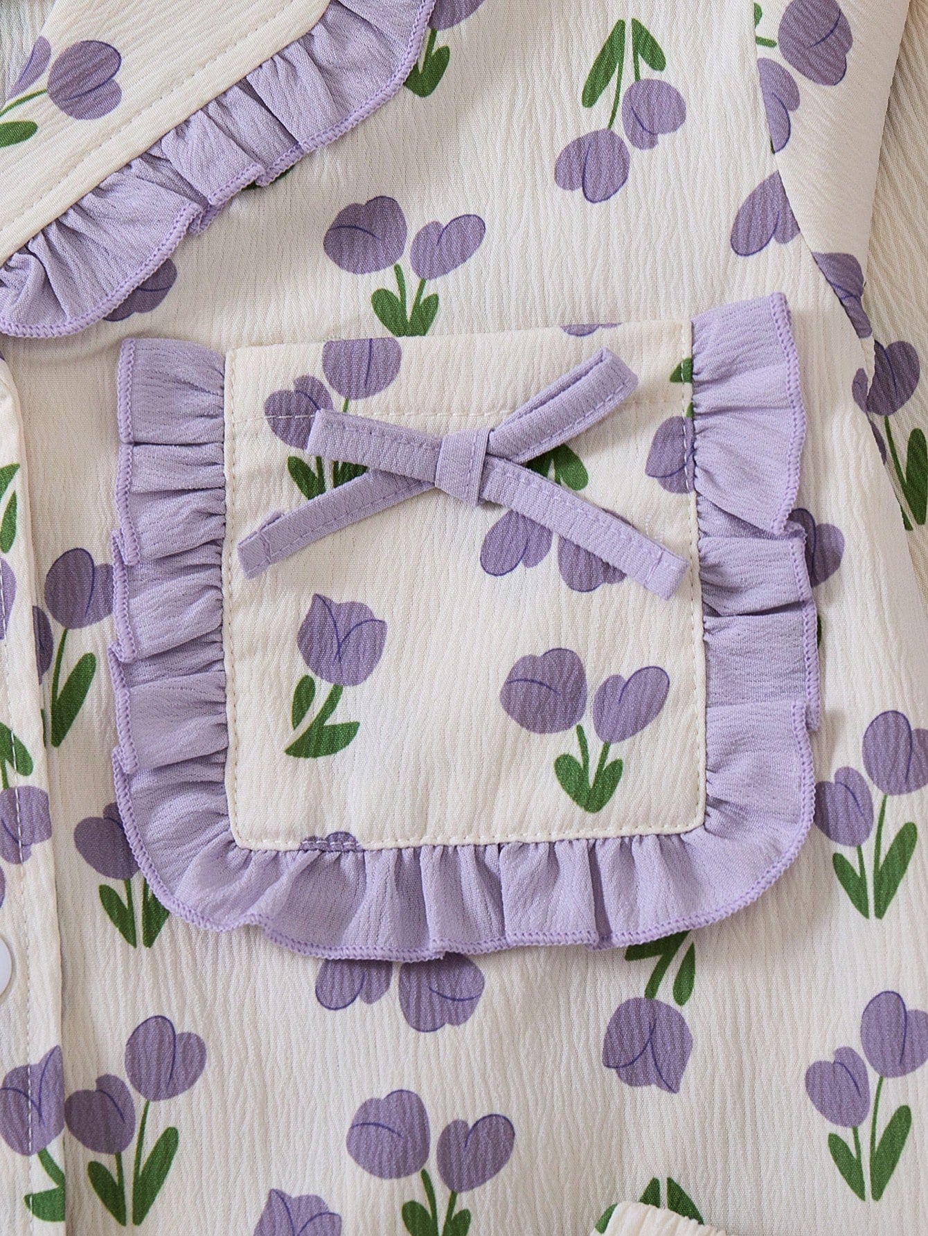 طقم بيجاما بأكمام طويلة وسروال للأطفال الفتيات