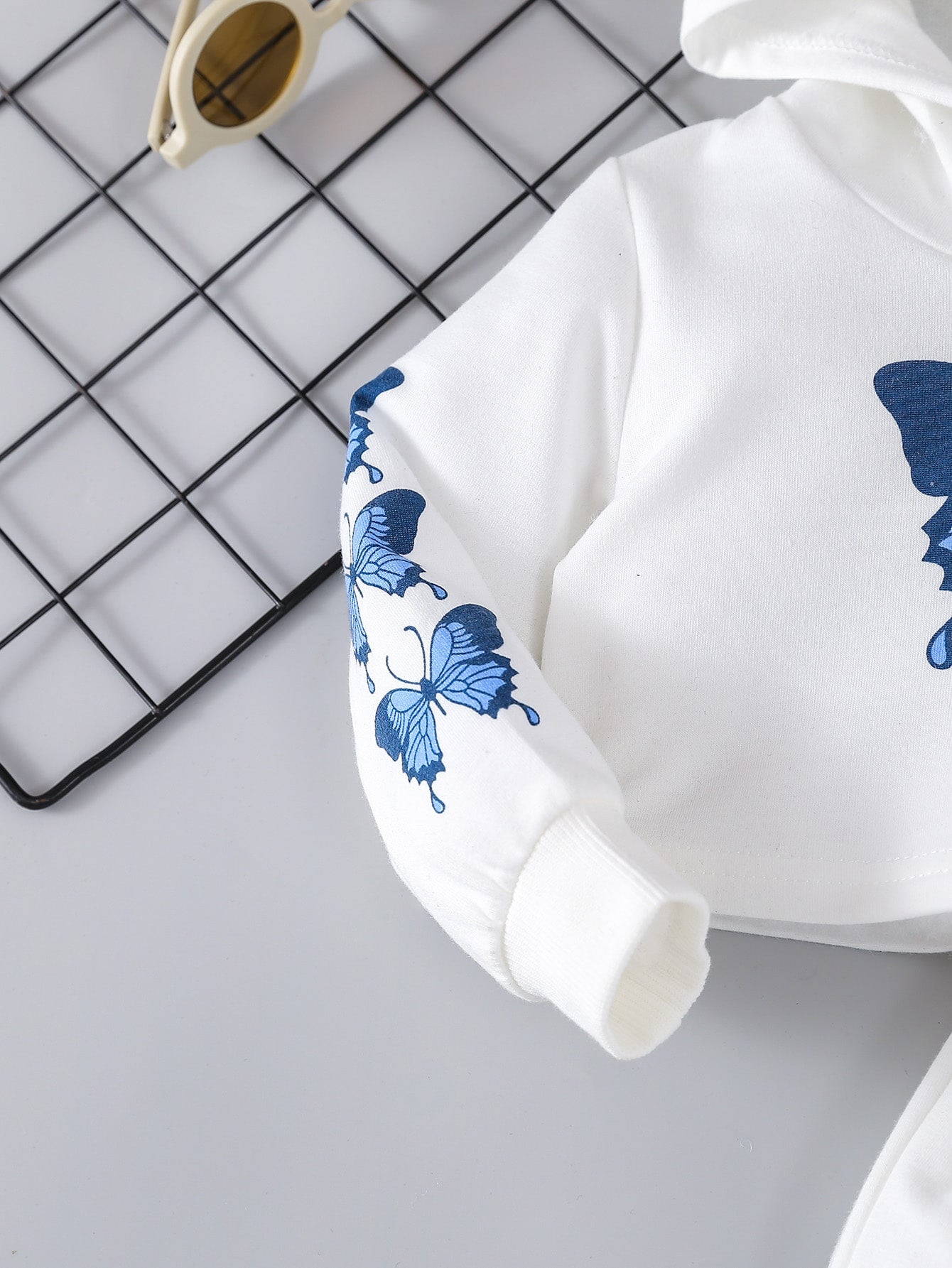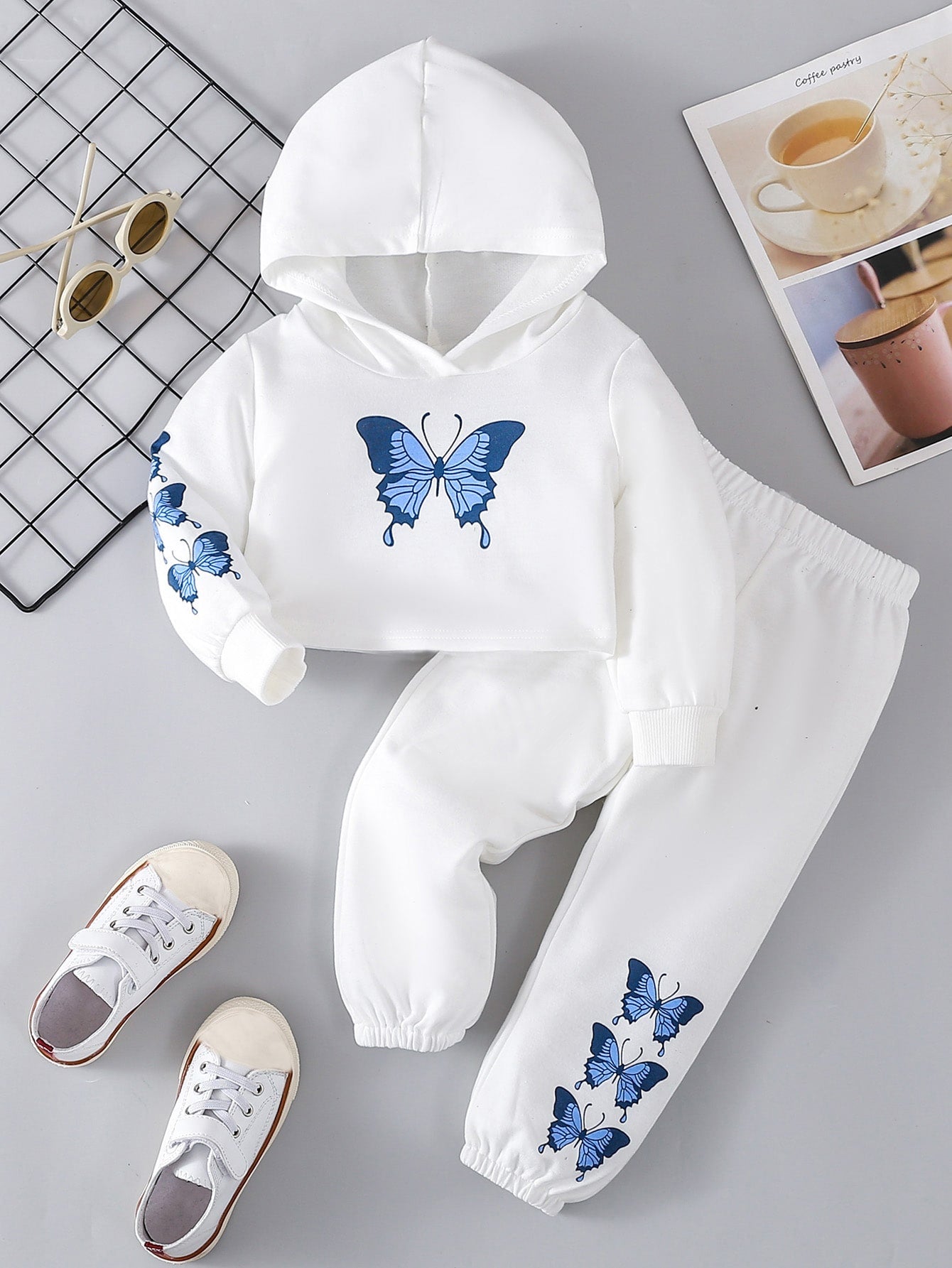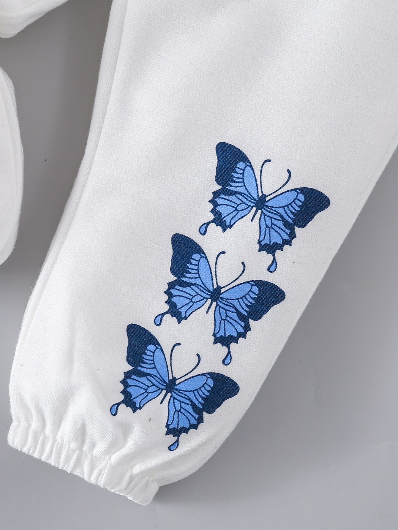 طقم بيجاما رياضية قطعتين لفتاة الأطفال يحتوي على جاكيت بطبعة فراشة وسروال رياضي