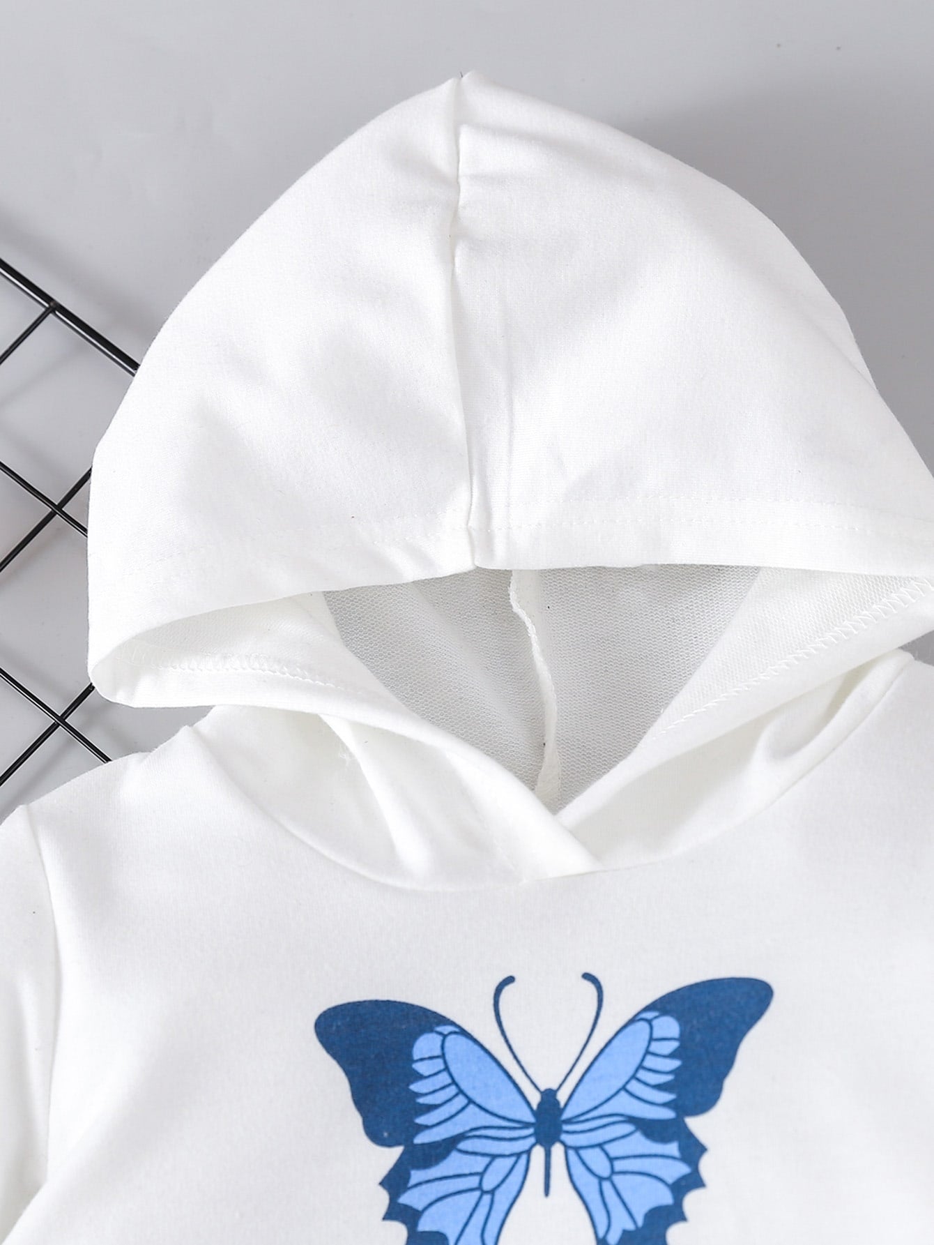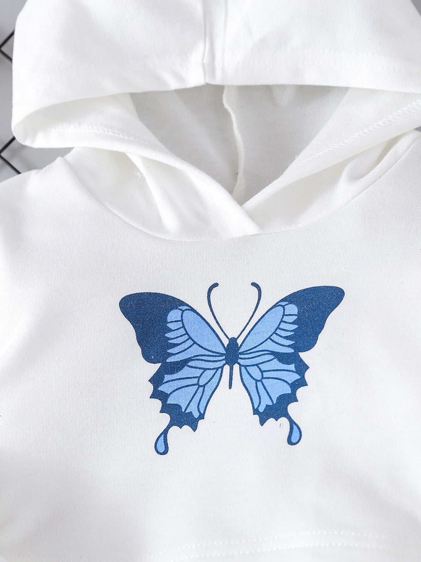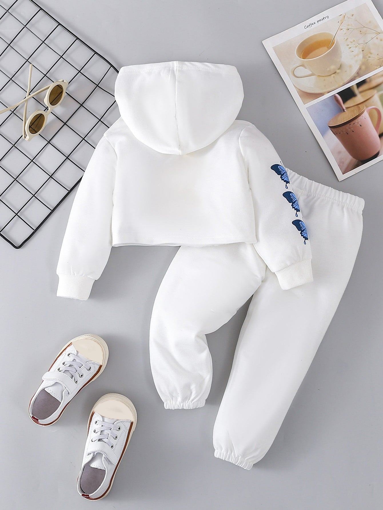 طقم بيجاما رياضية قطعتين لفتاة الأطفال يحتوي على جاكيت بطبعة فراشة وسروال رياضي