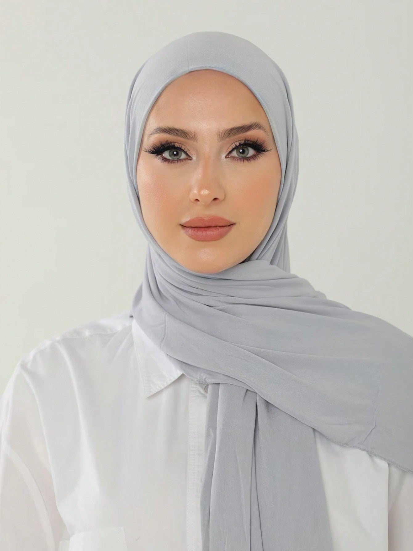 طقم حجابات جيرسي باللون الأزرق المغسول بالماء، الأزرق الداكن الناشفي، الرمادي الفاتح