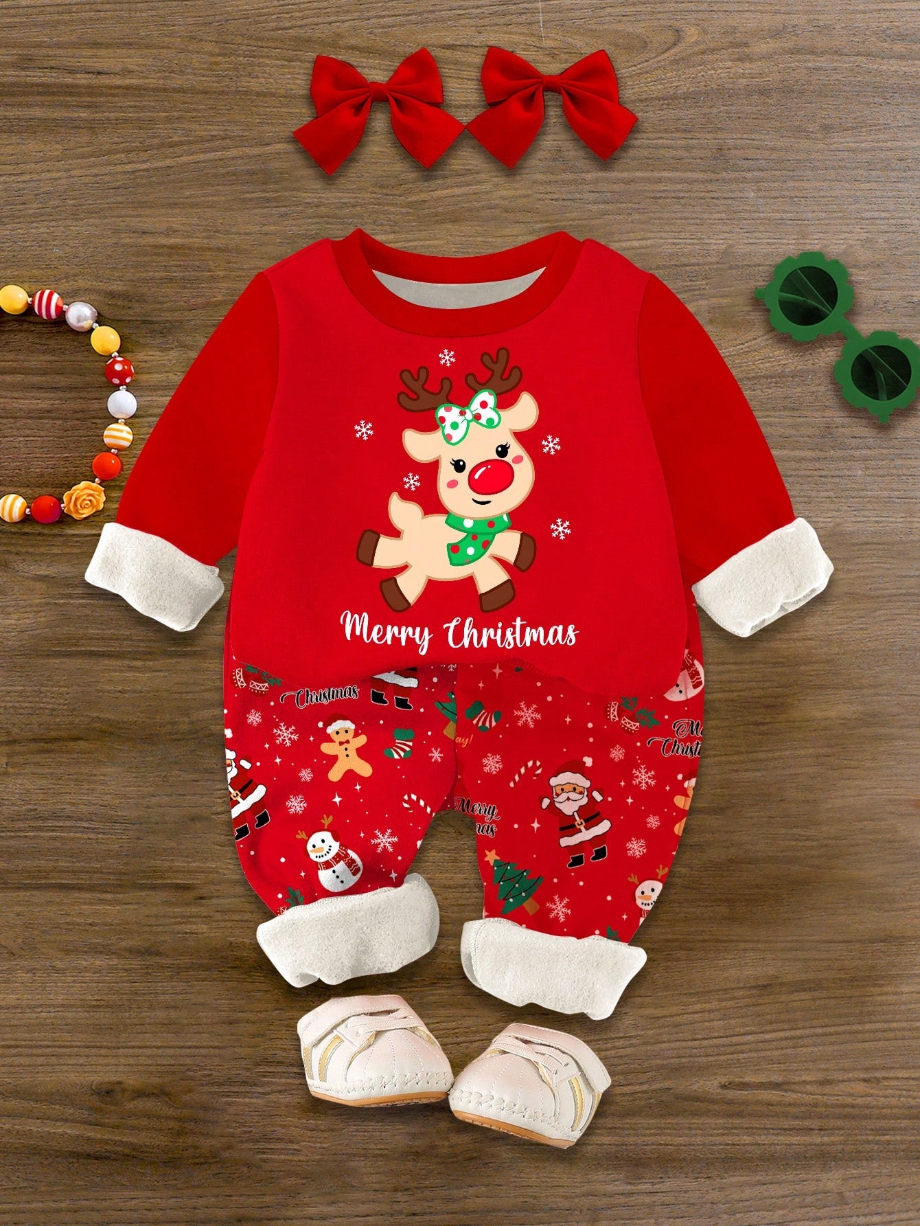طقم سترة متصلة عادية للفتيات في عيد الميلاد