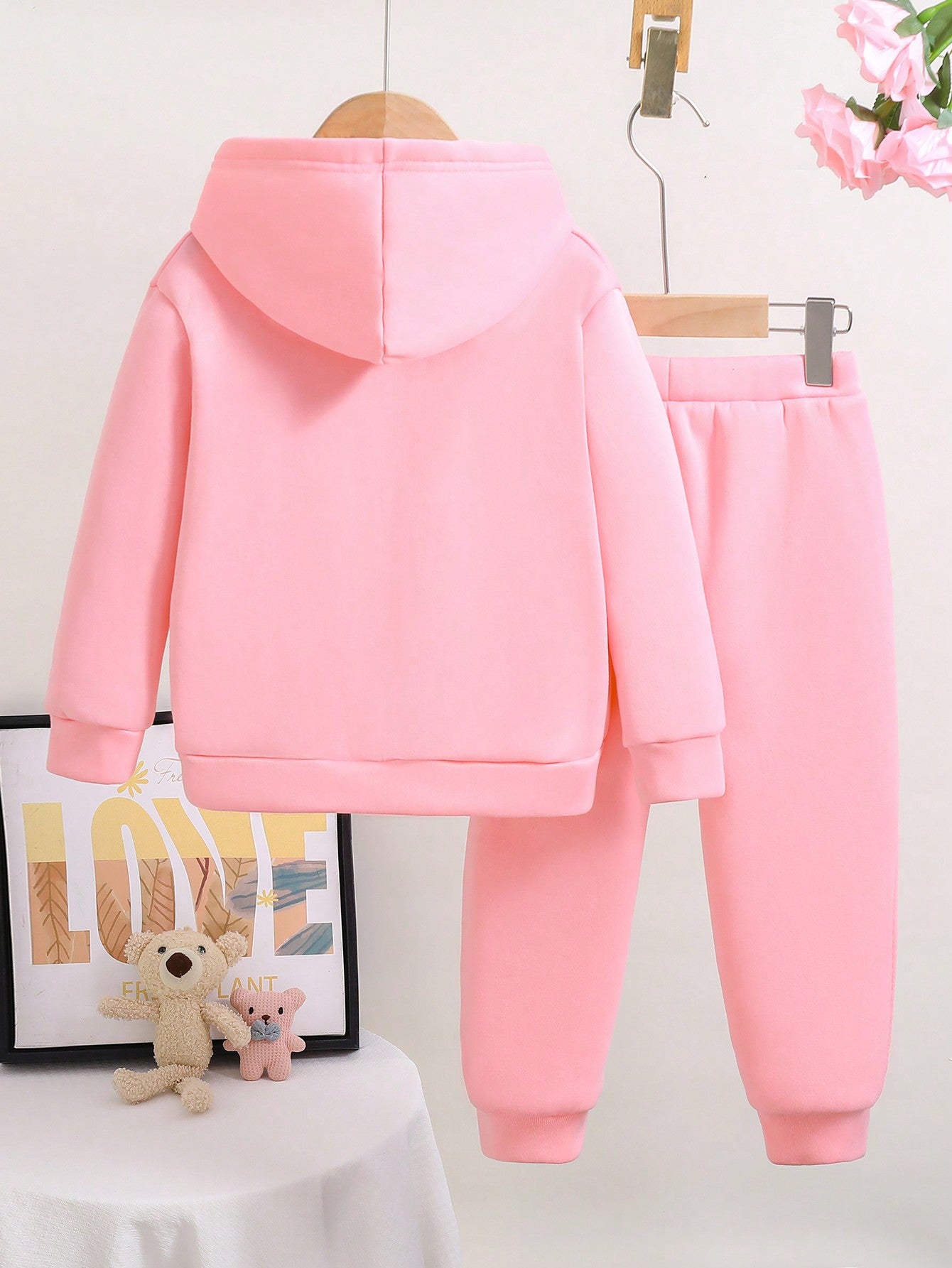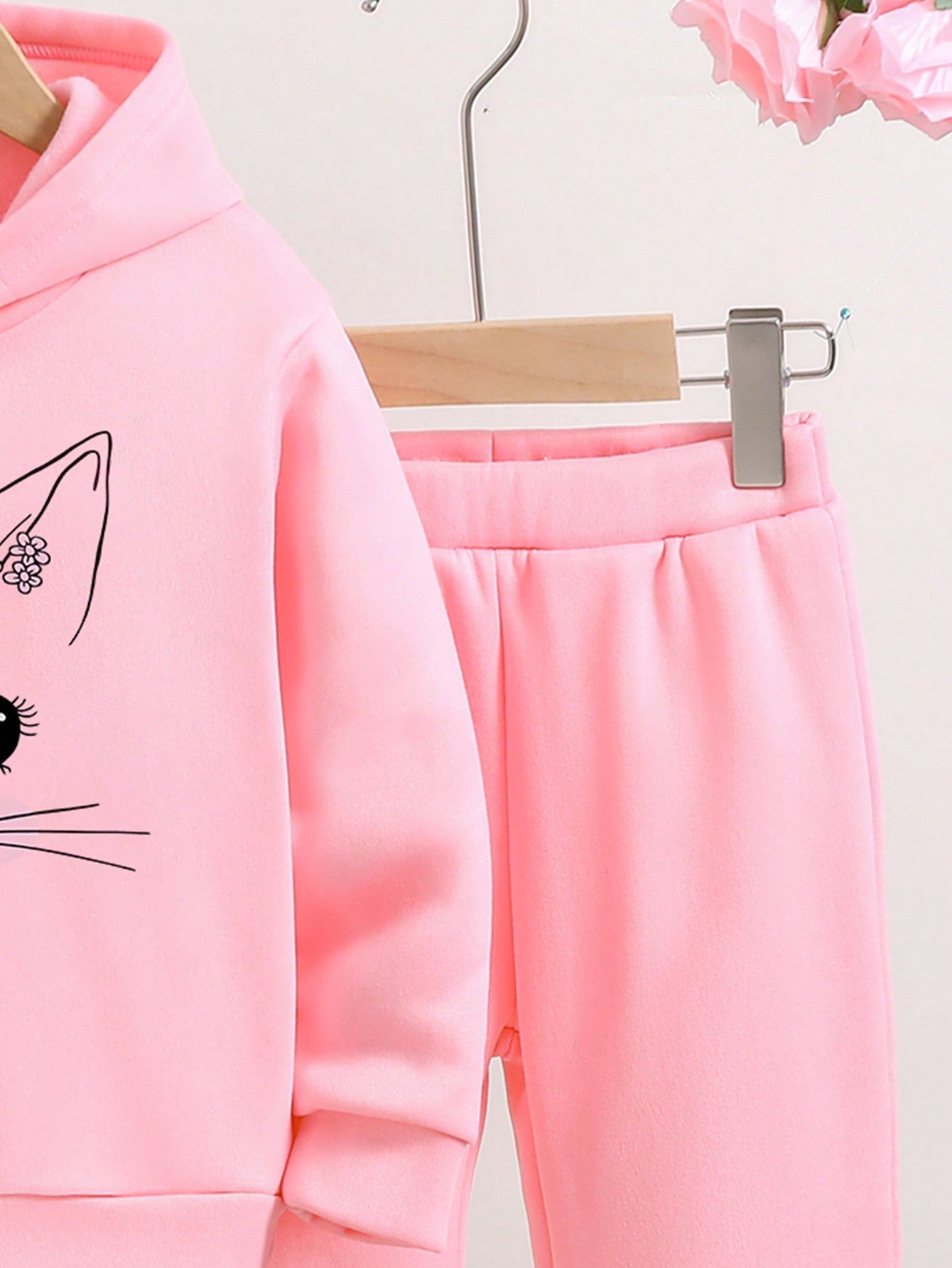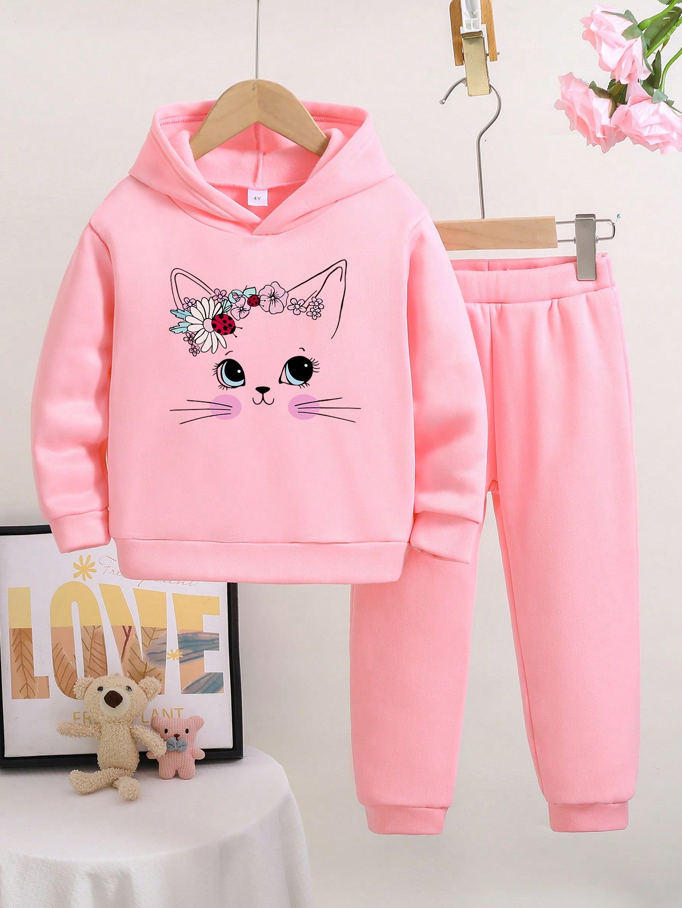 طقم شبابيات البنات المكون من هودي أنيق مع بنطلون رياضي بطبعة كرتونية دافئة