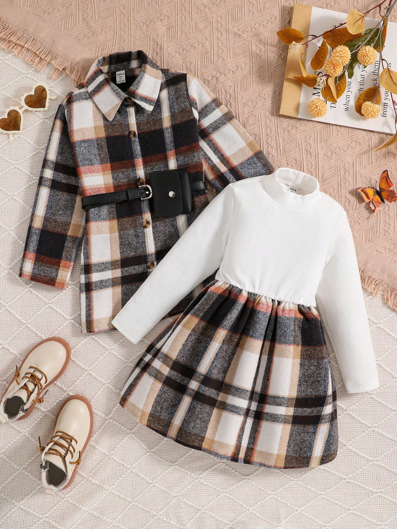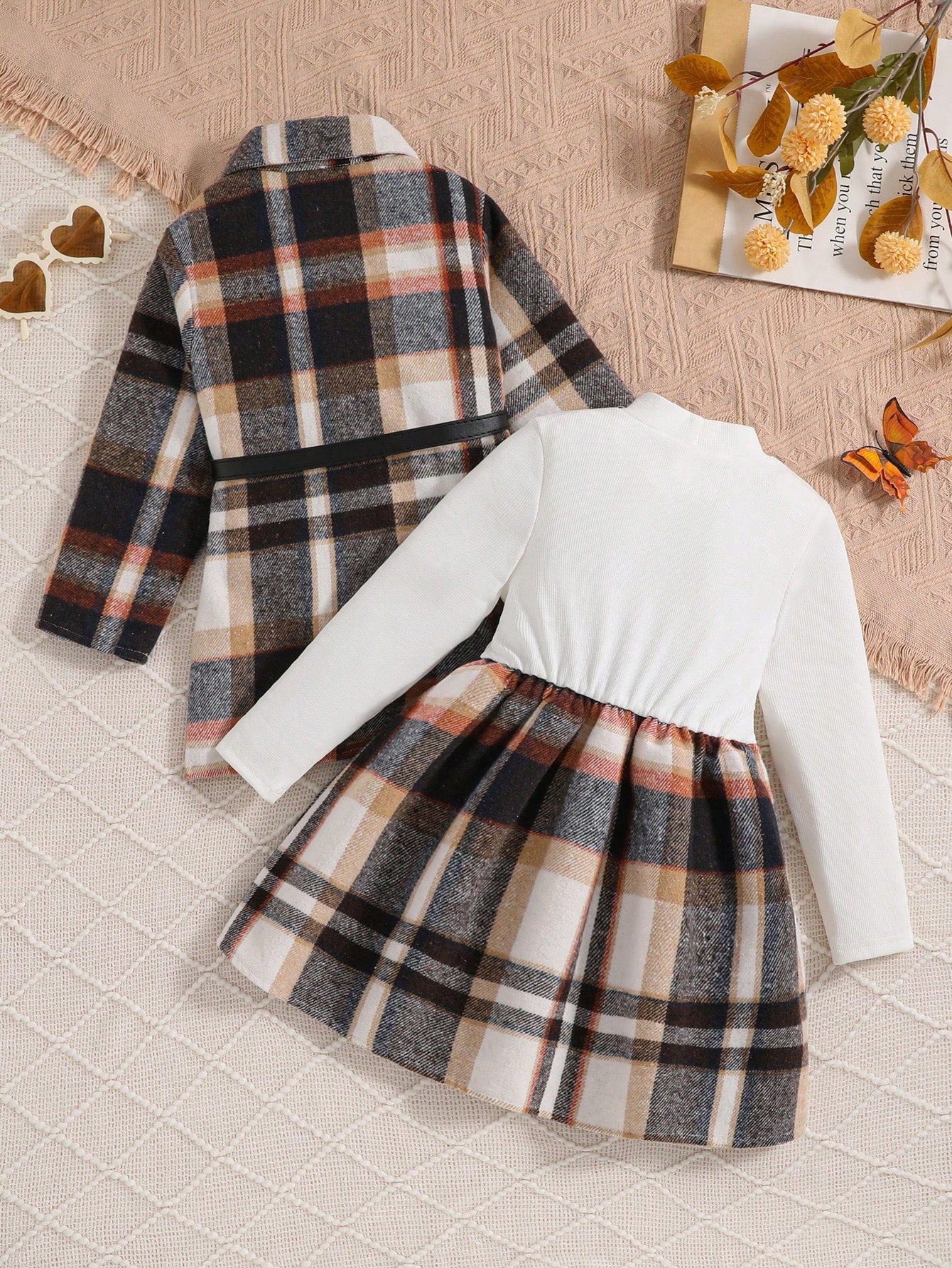 طقم فستان جاكيت منقوش جميل وعصري للفتيات مكون من قطعتين