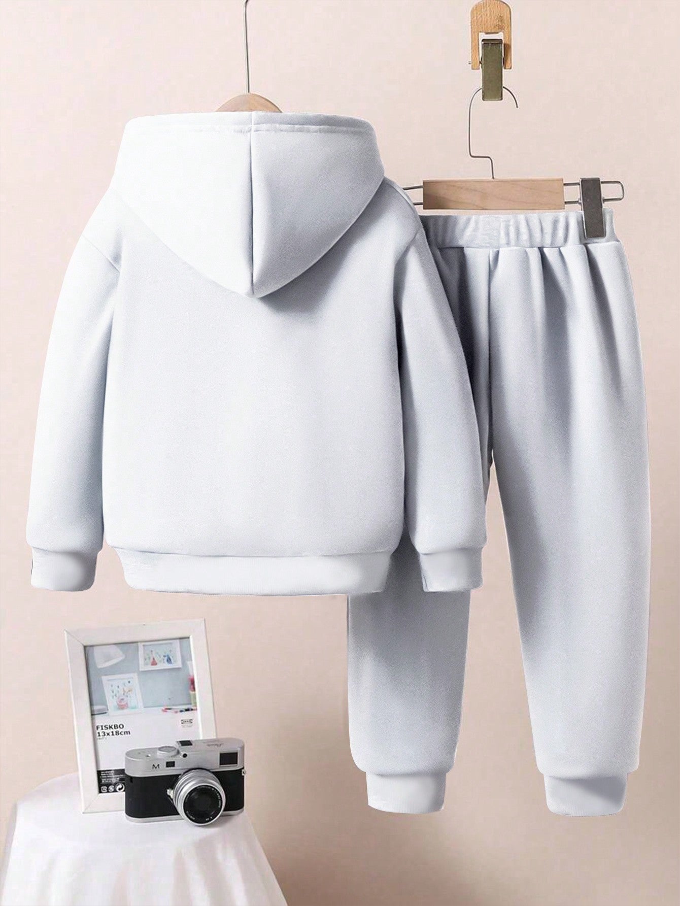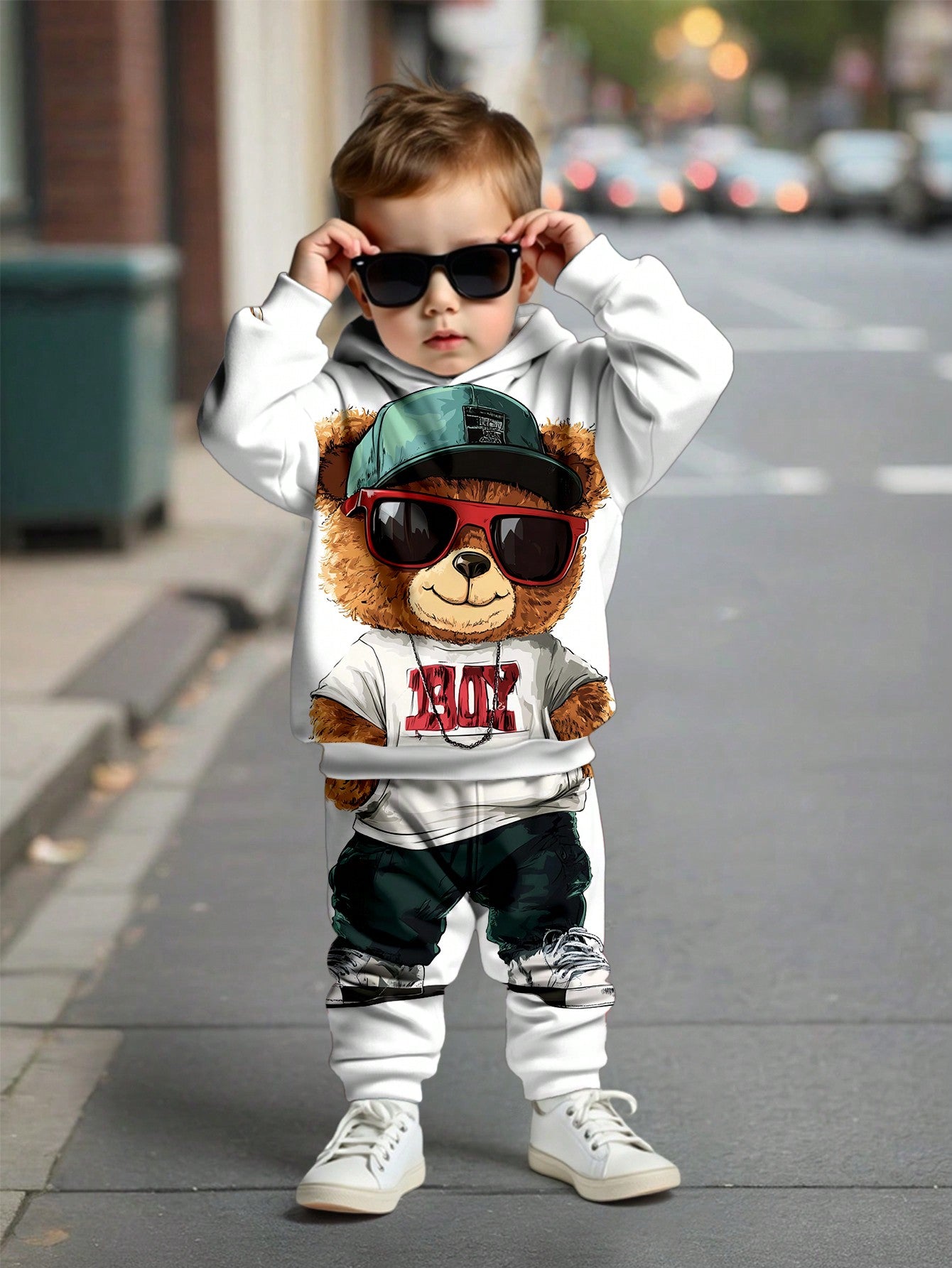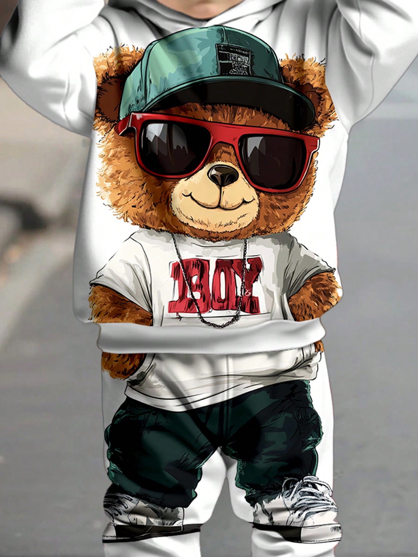 طقم فضفاض من البلوفر والقبعة المطبوع عليه شكل الدب الكرتوني للأطفال الصغار ، قطعتين ، قطن ناعم مريح مناسب للخريف والشتاء