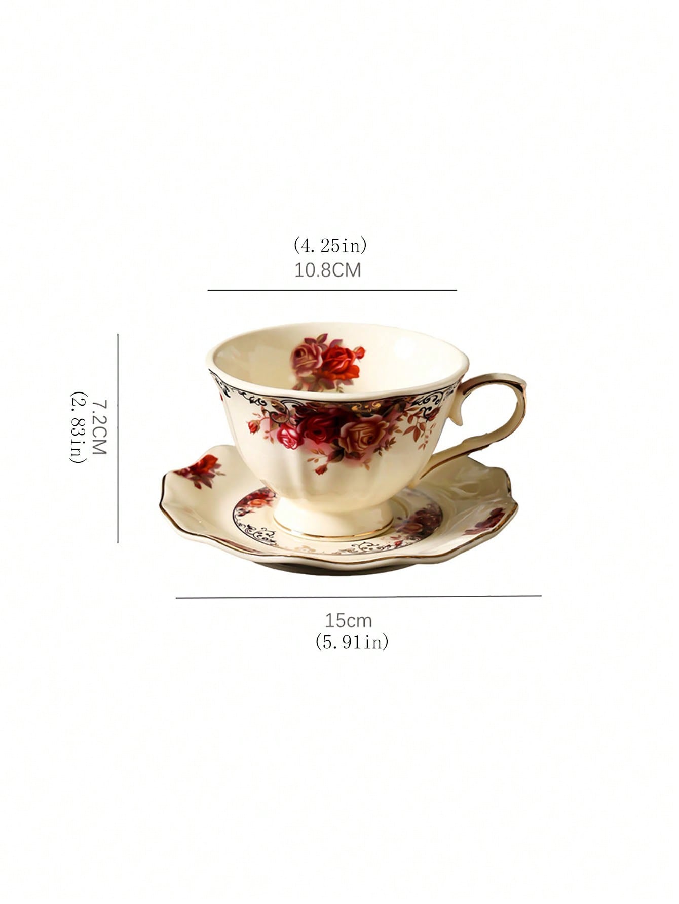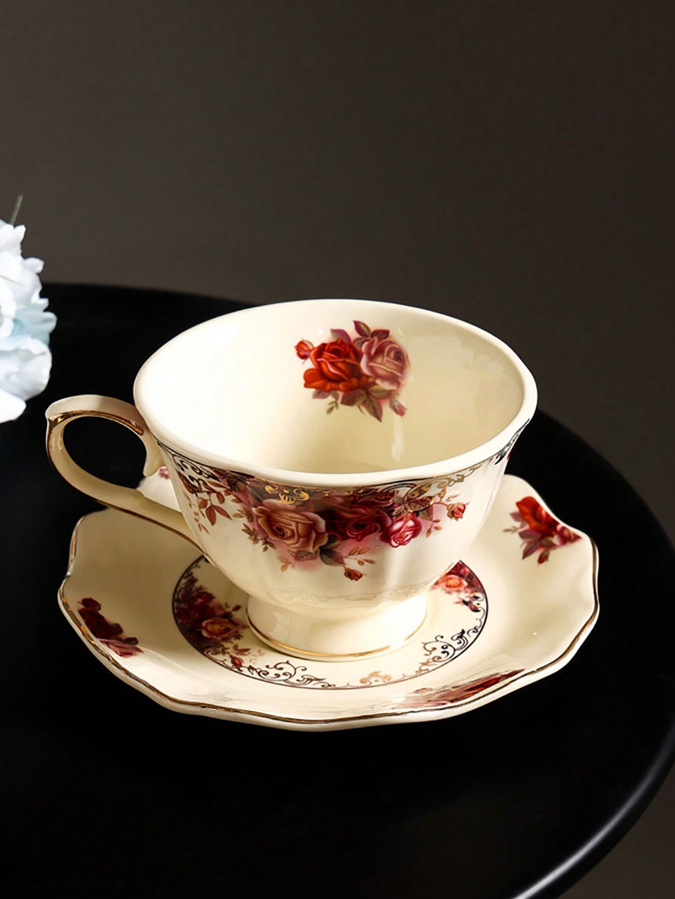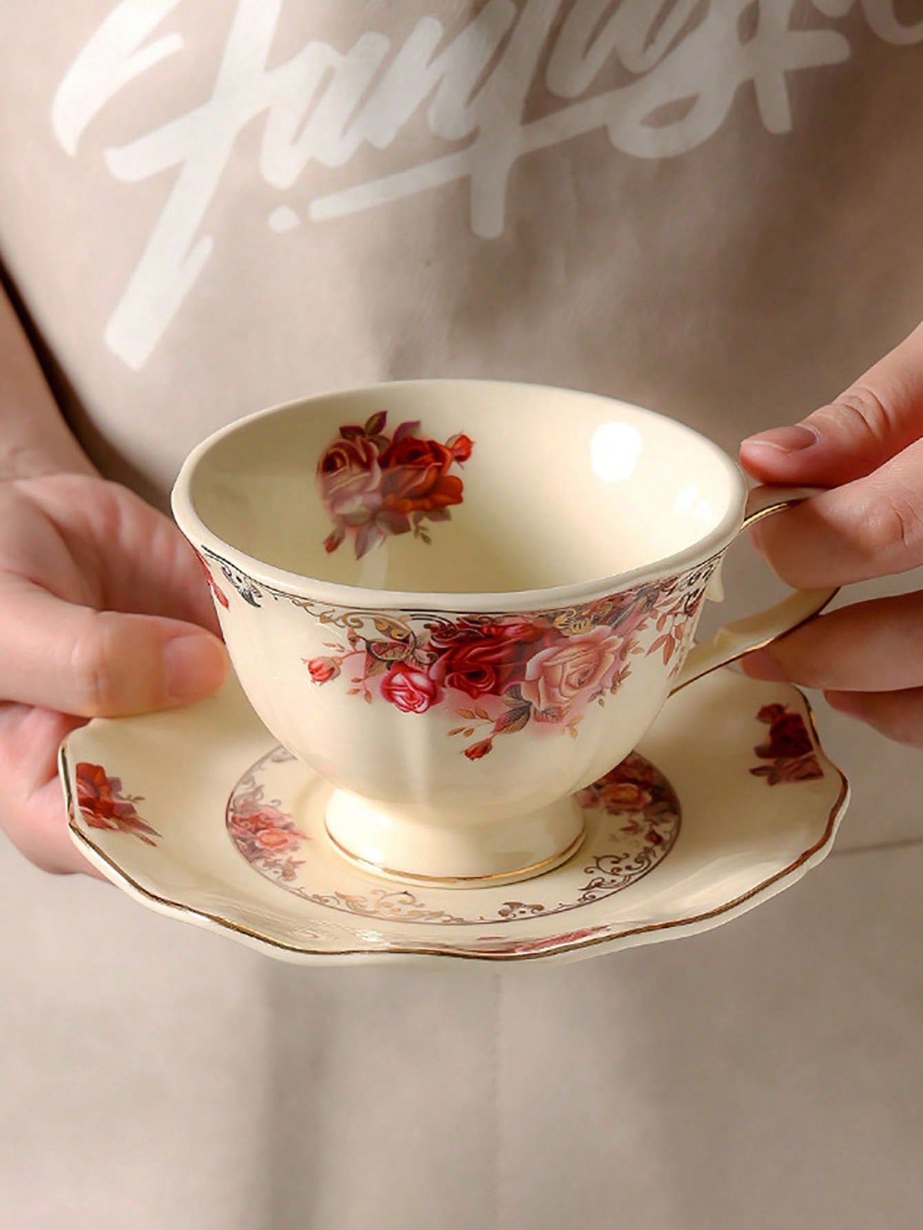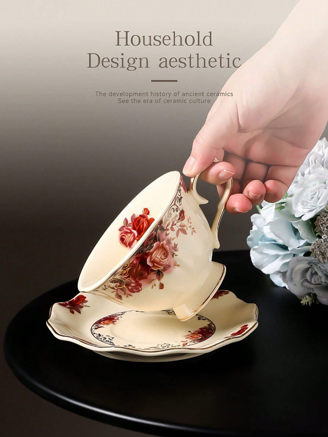 طقم فنجان قهوة وصحن خزفي ذهبي الحافة بطراز الزهور العتيقة، فنجان شاي بأسلوب قصر أوروبي للشاي بعد الظهر، فنجان حليب إفطار
