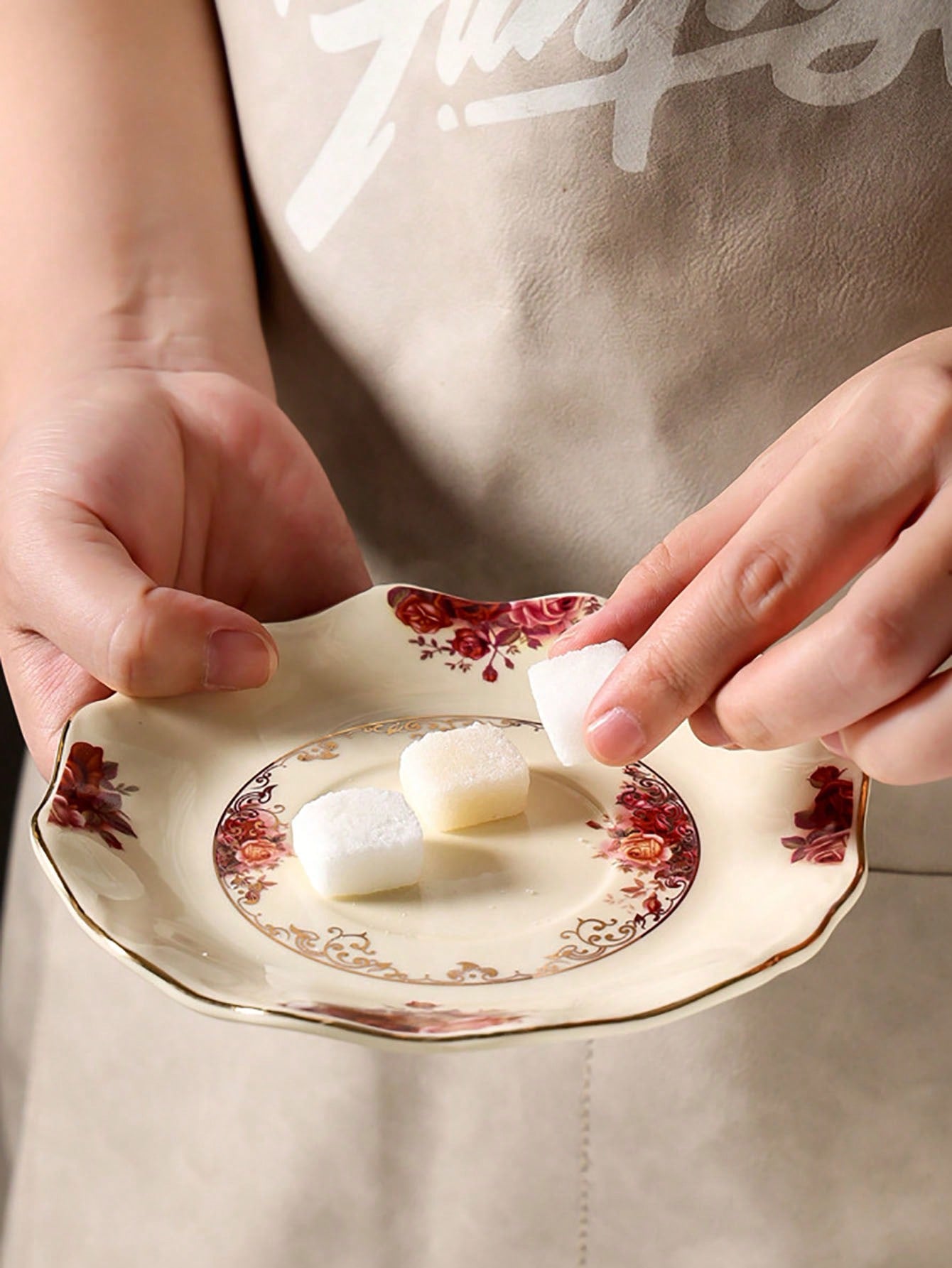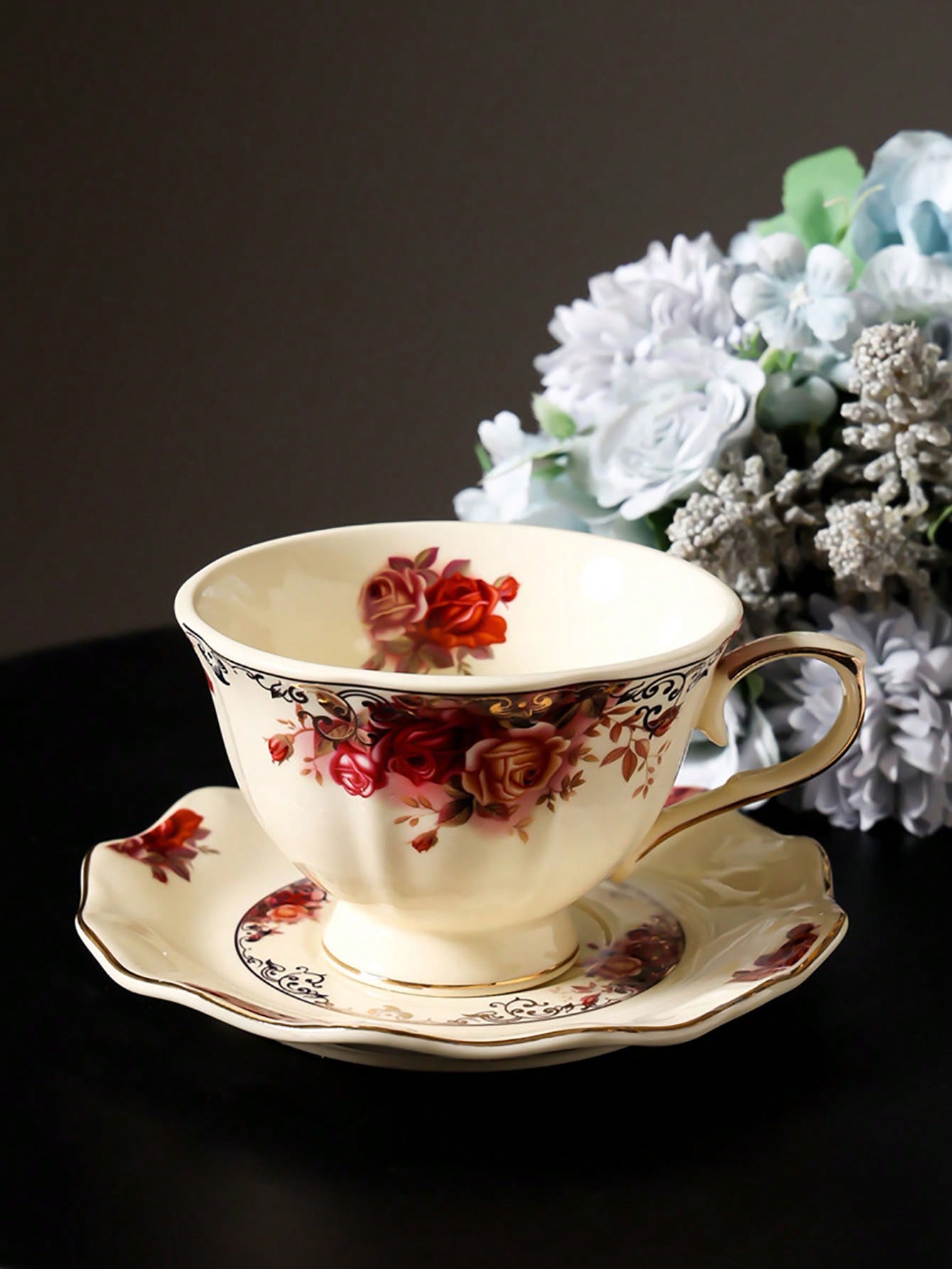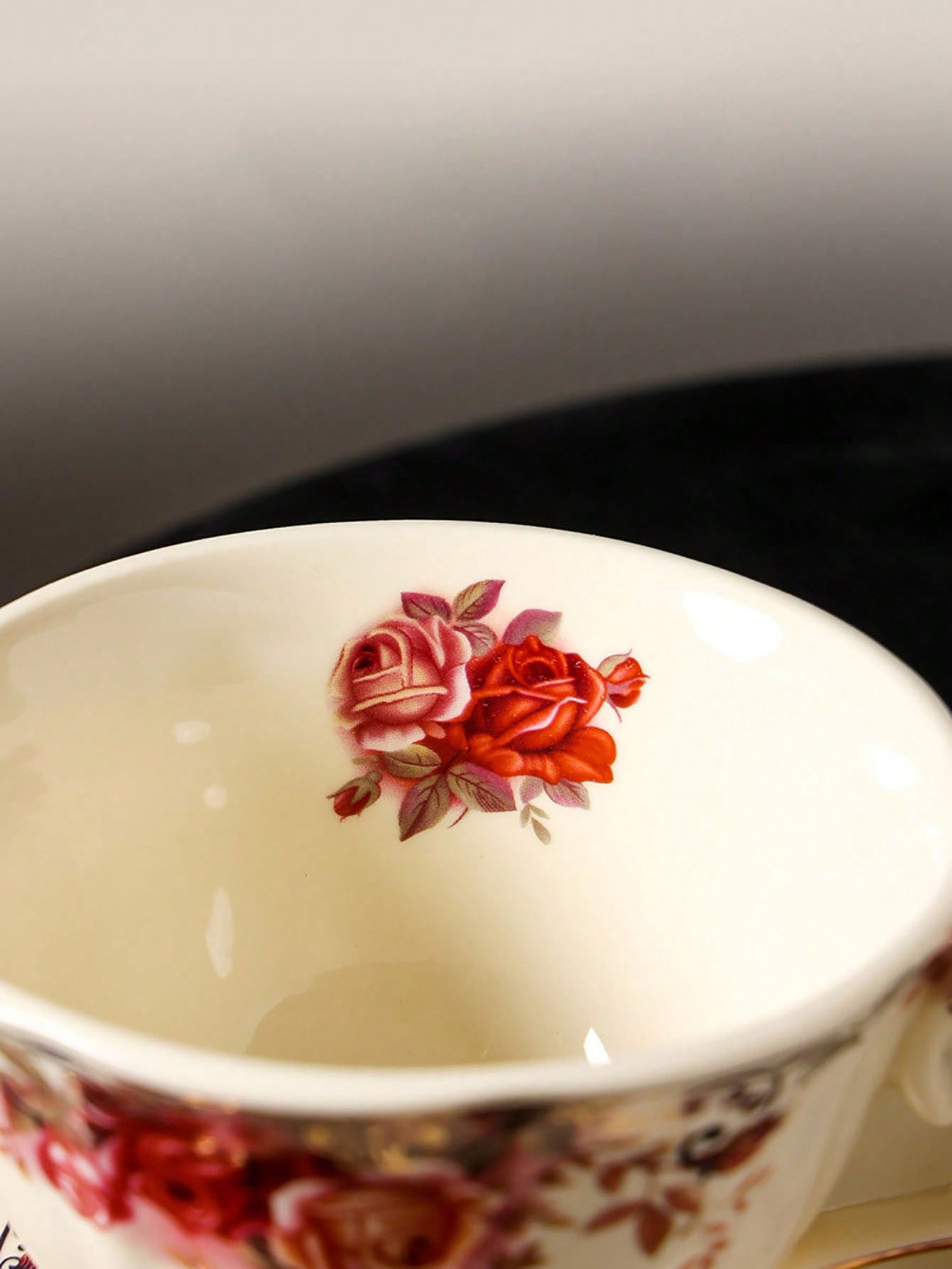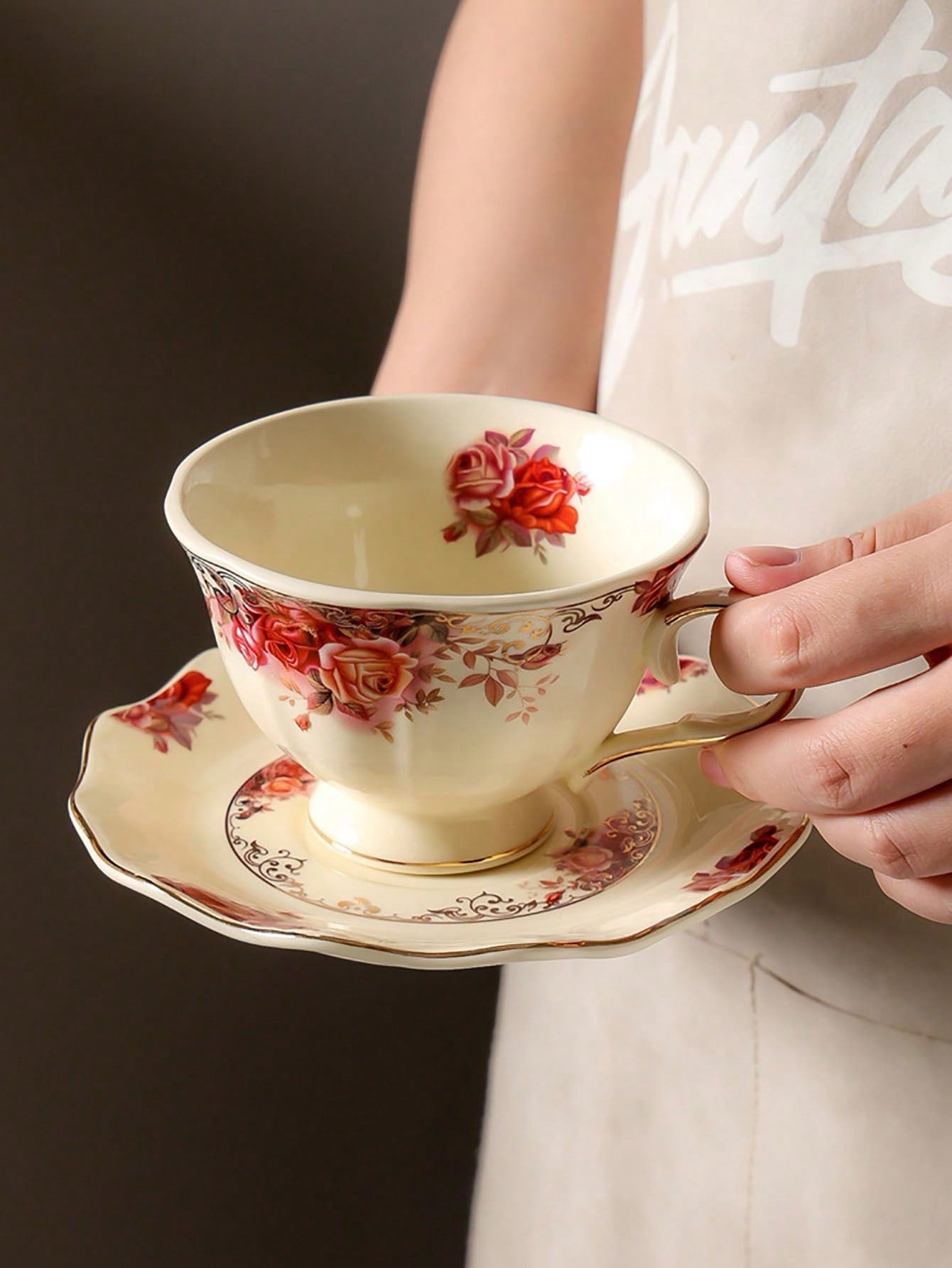 طقم فنجان قهوة وصحن خزفي ذهبي الحافة بطراز الزهور العتيقة، فنجان شاي بأسلوب قصر أوروبي للشاي بعد الظهر، فنجان حليب إفطار