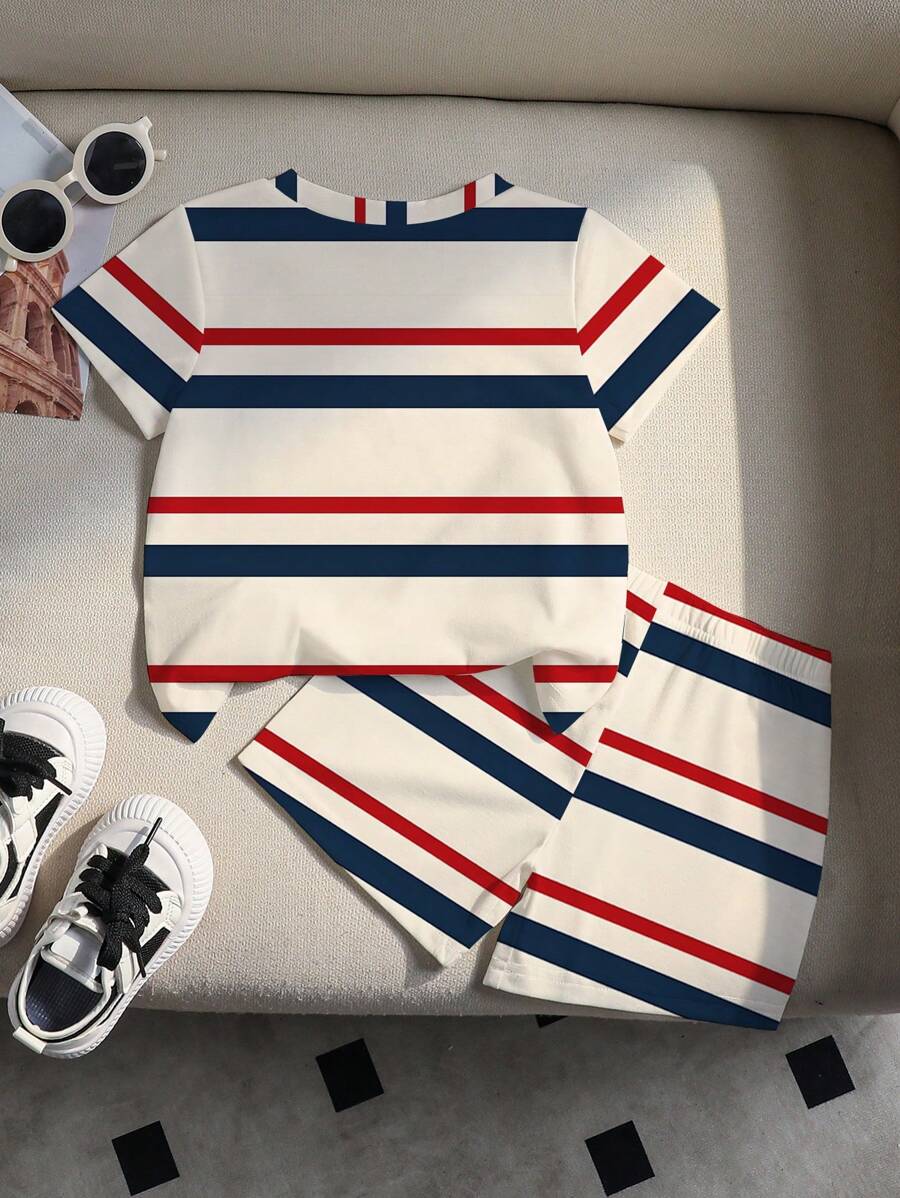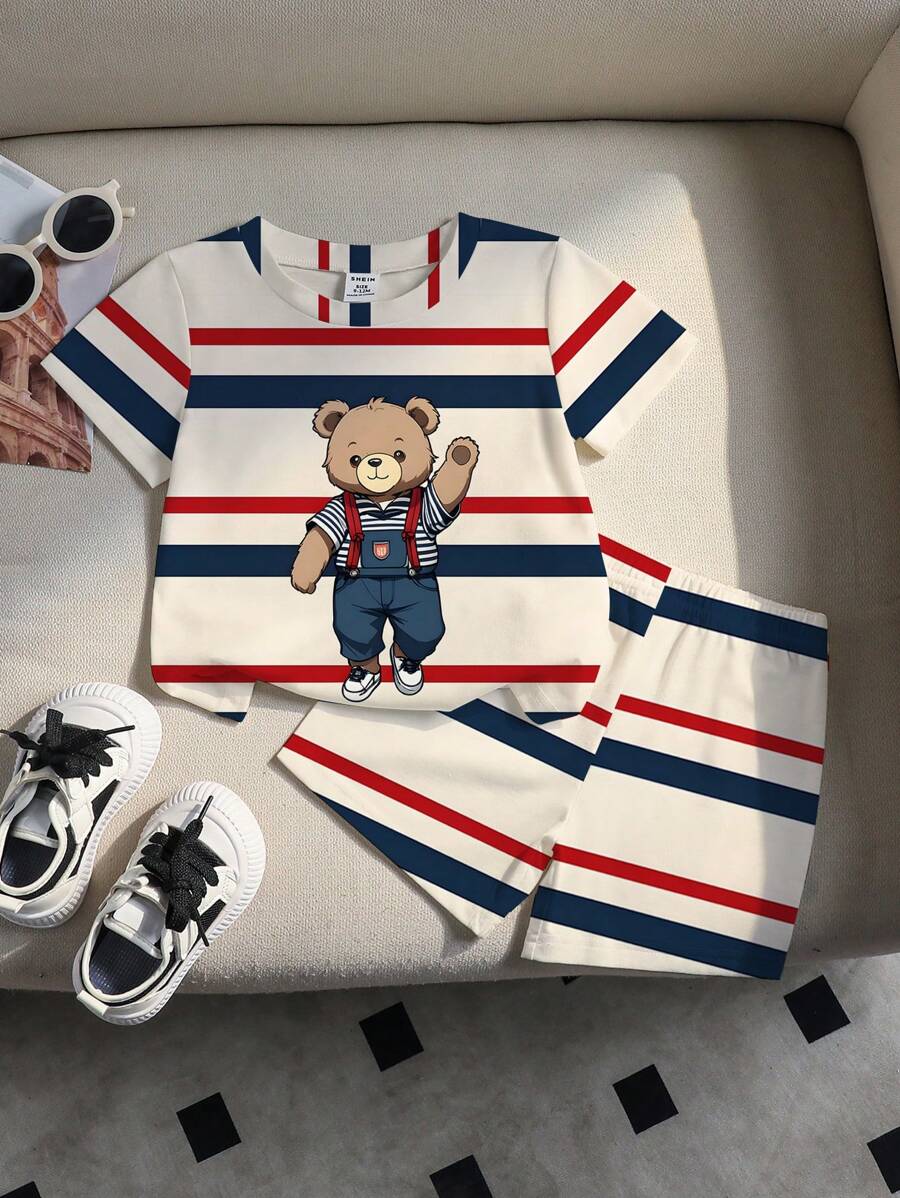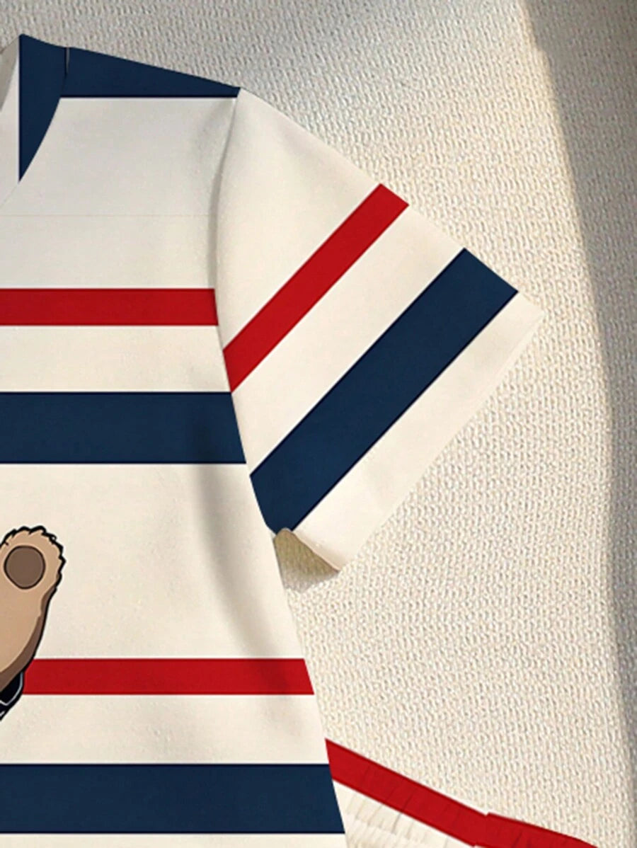 طقم قصير الأكمام مكون من تيشرت وشورت كاجوال