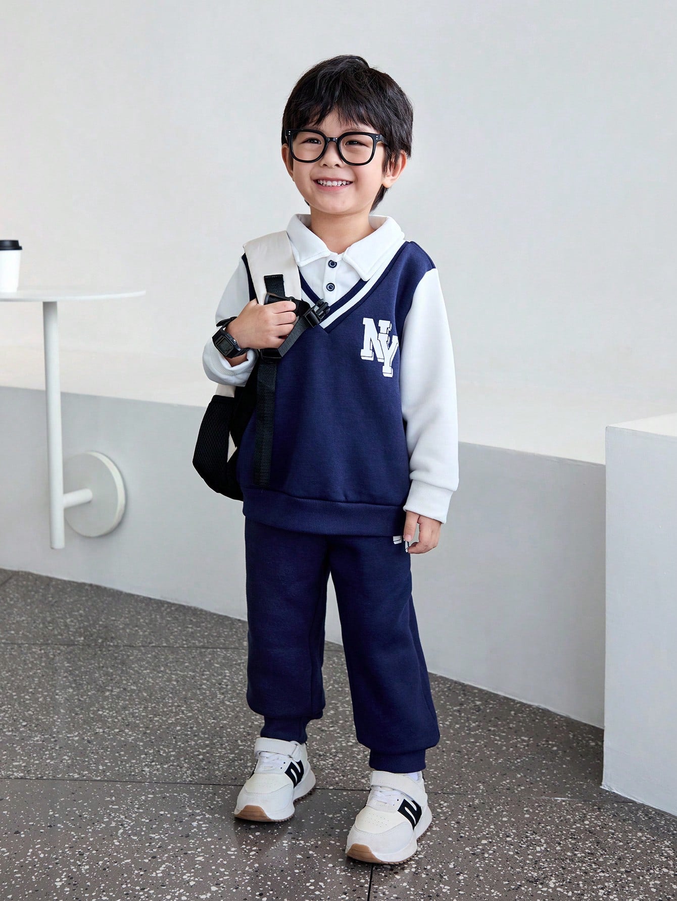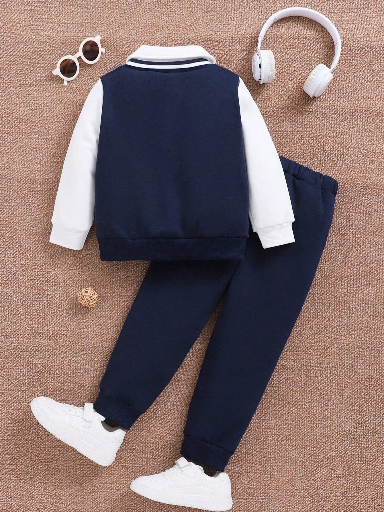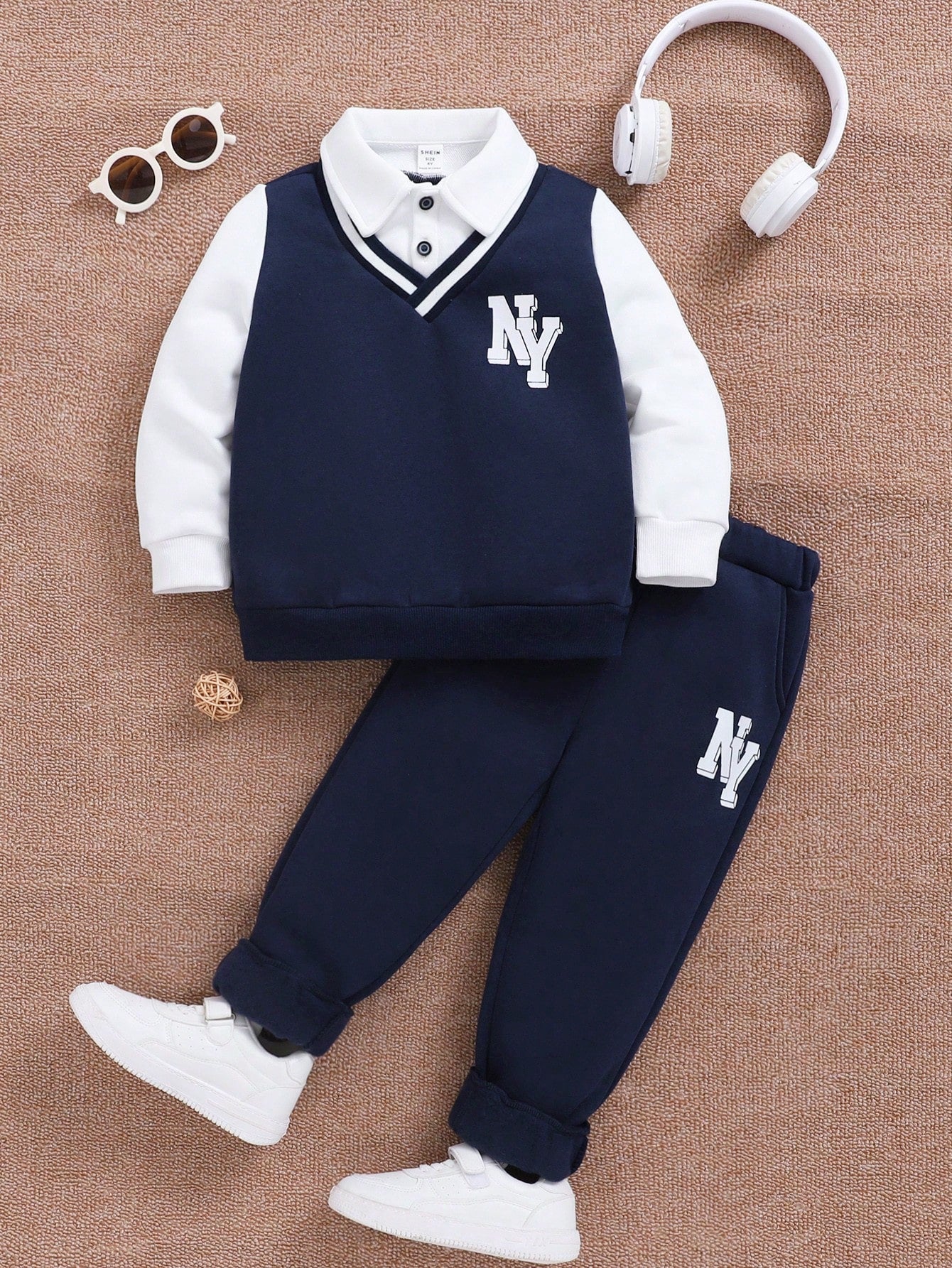 طقم قميص ثقيل بياقة وبنطلون من الفليس للشباب 2 قطعة, مُسمَّك