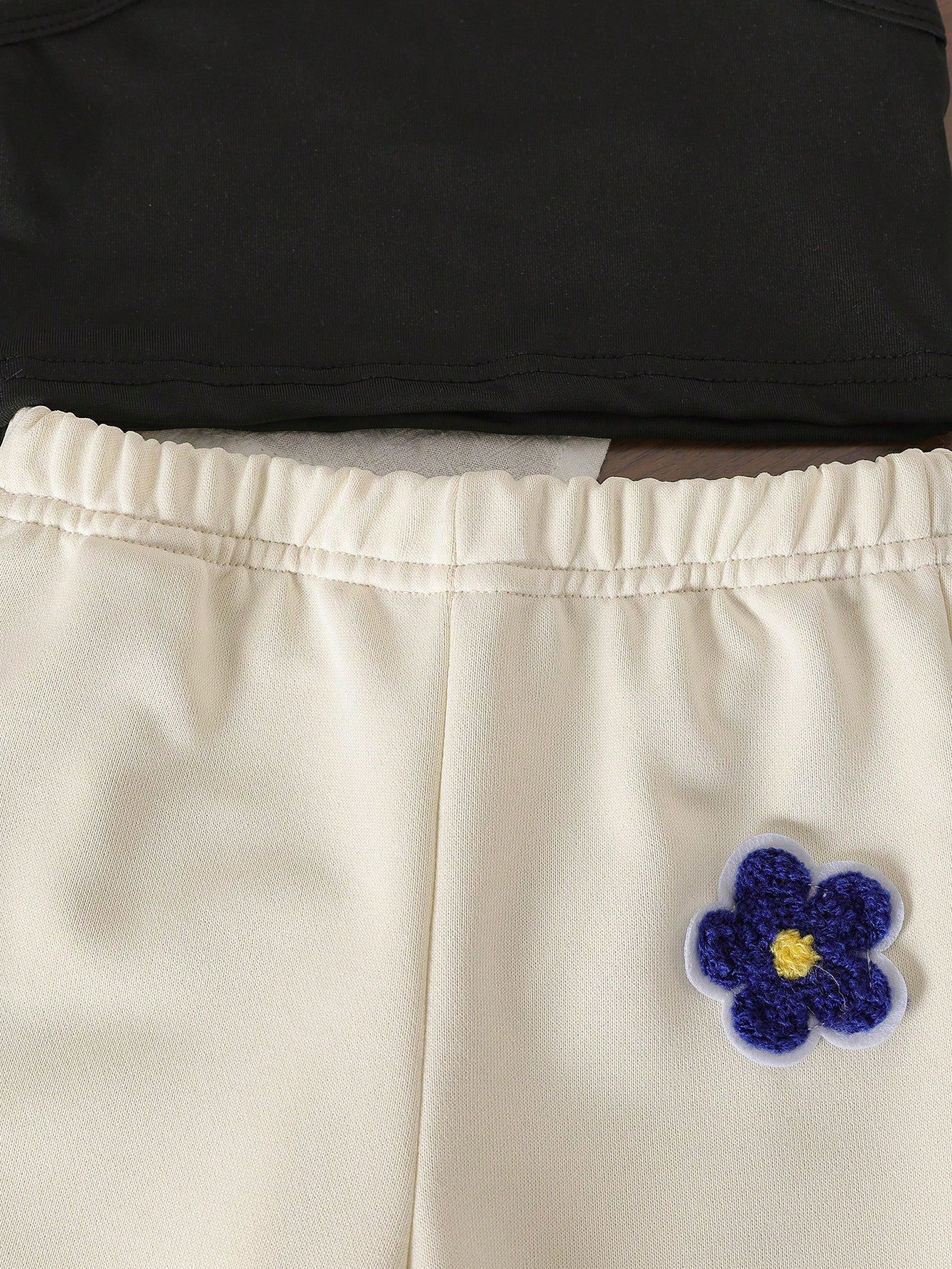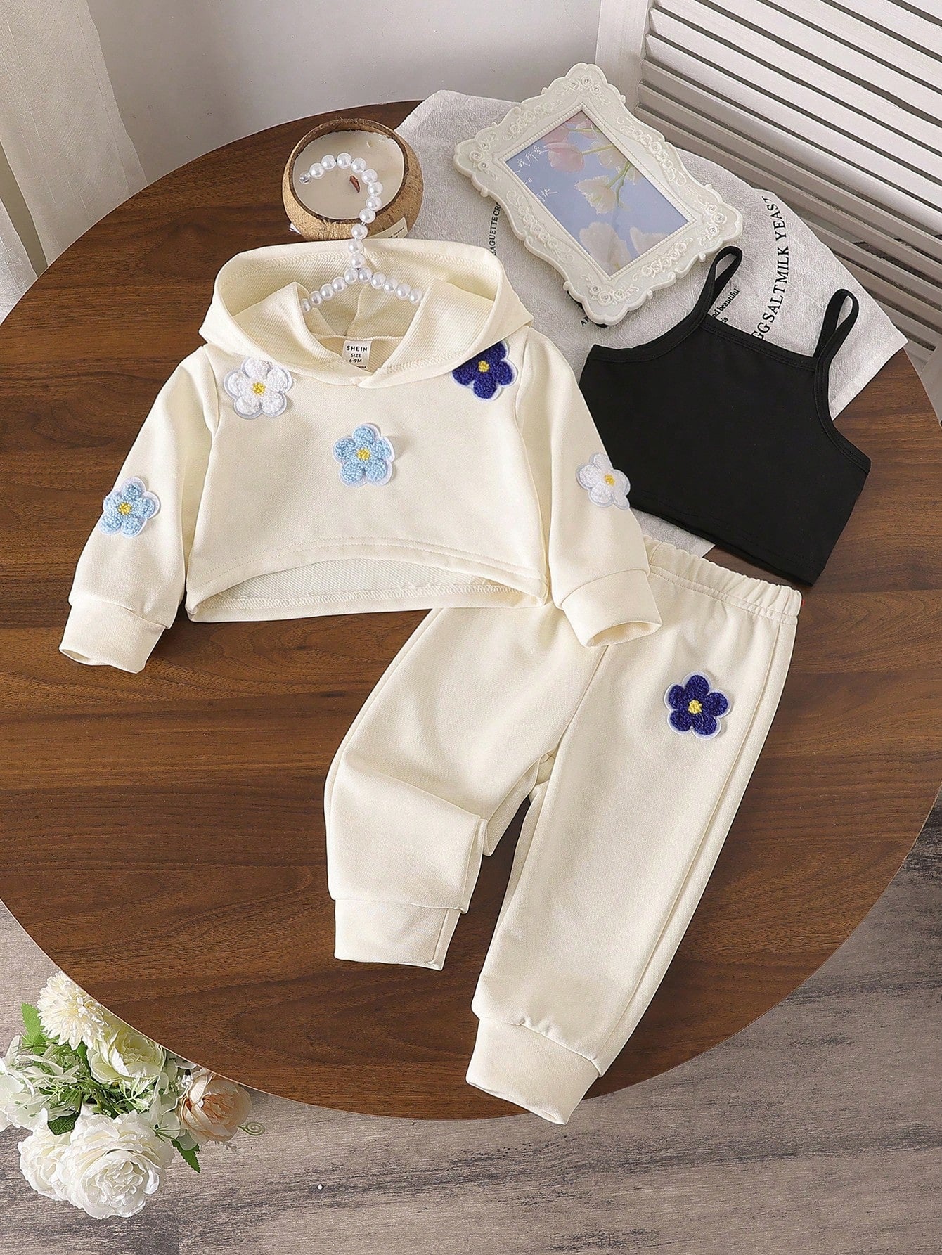 طقم ملابس خريفية للبنات الصغار 3قطع/مجموعة: هوودي مقصّر بطبعة زهرية بدون أكتاف بنطال
