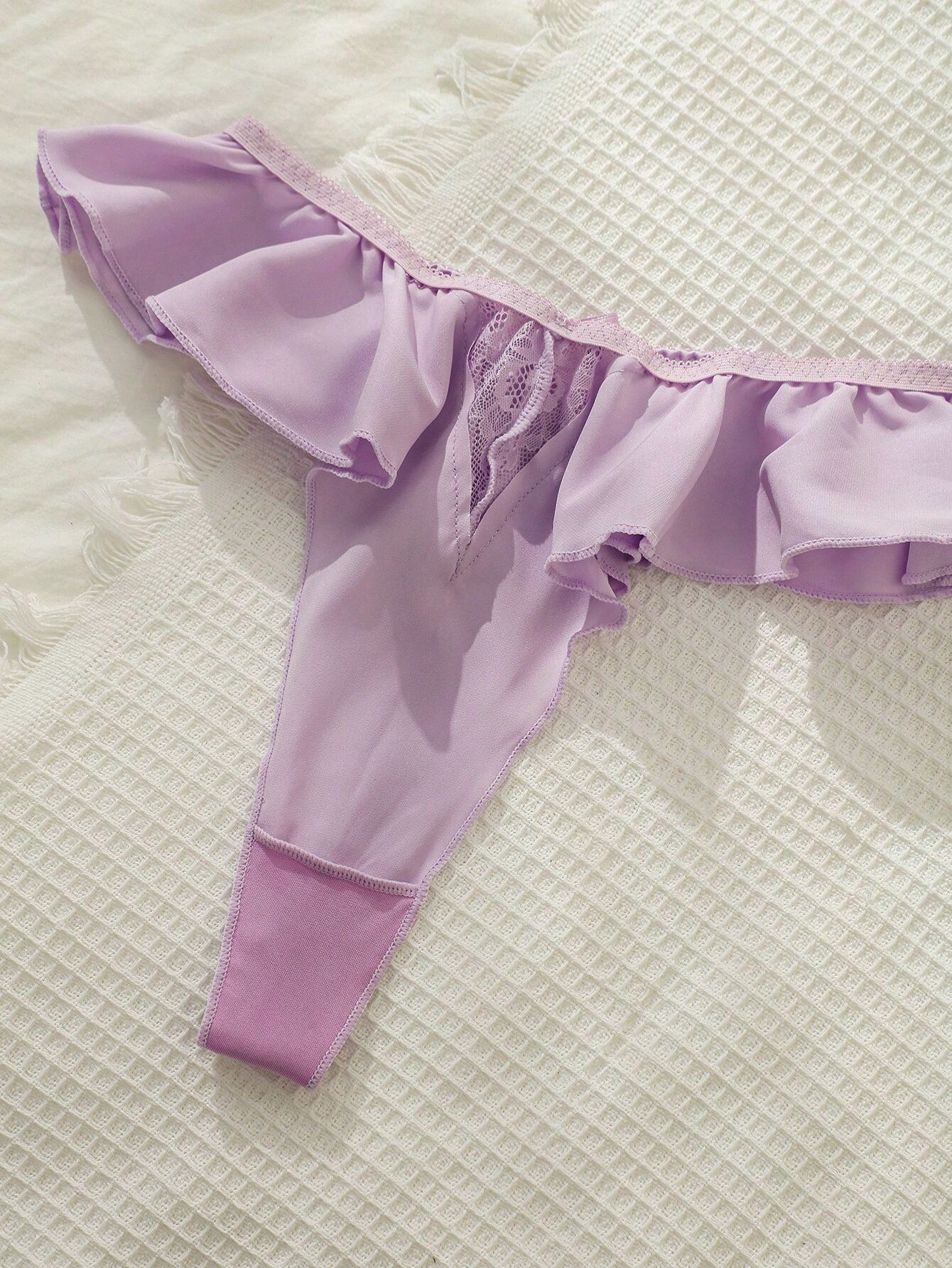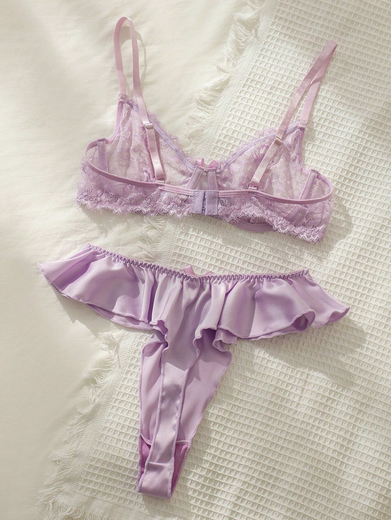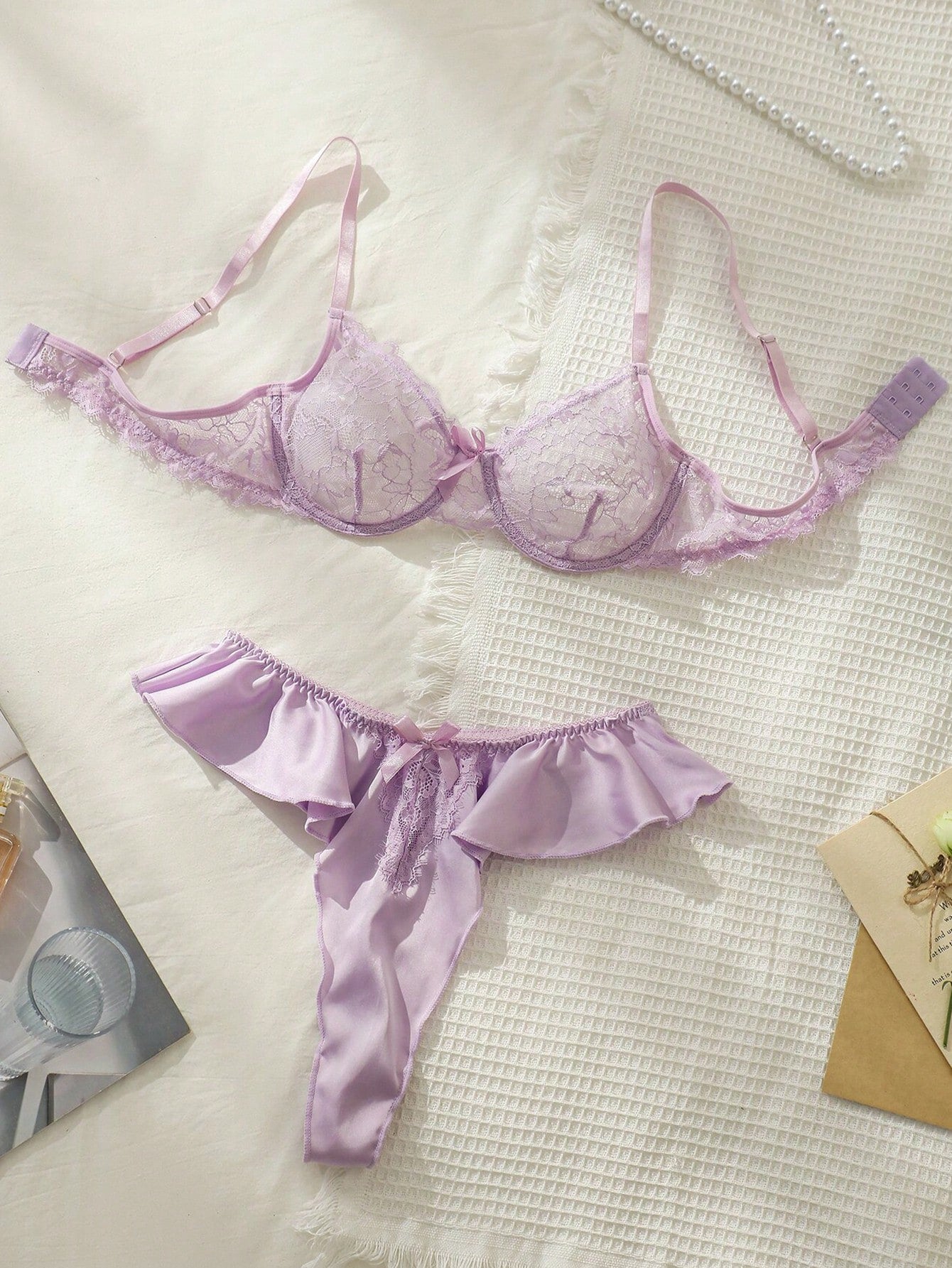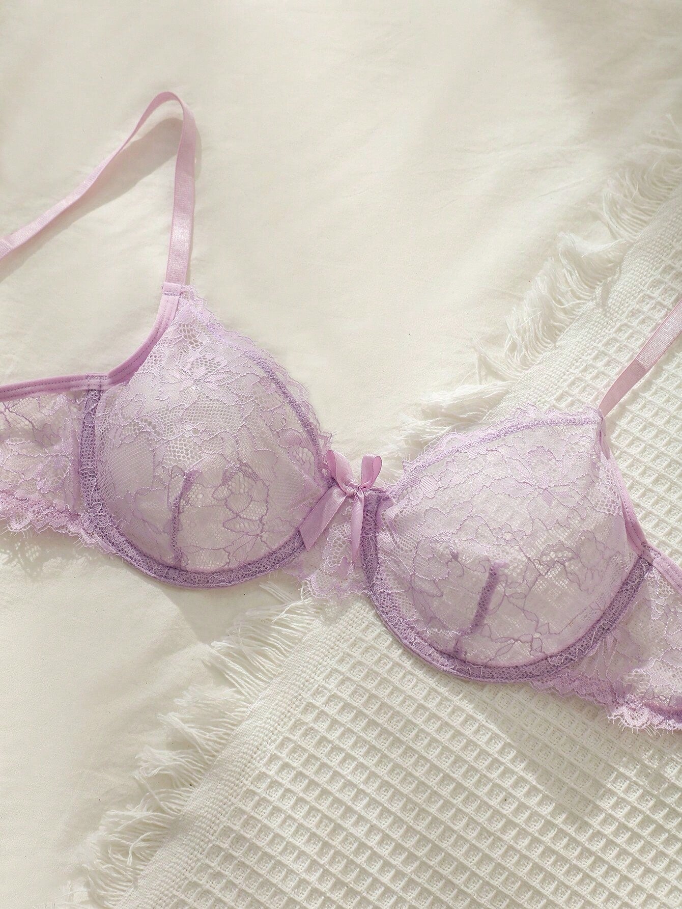 طقم ملابس داخلية دانتيل زهري حلقة معدني