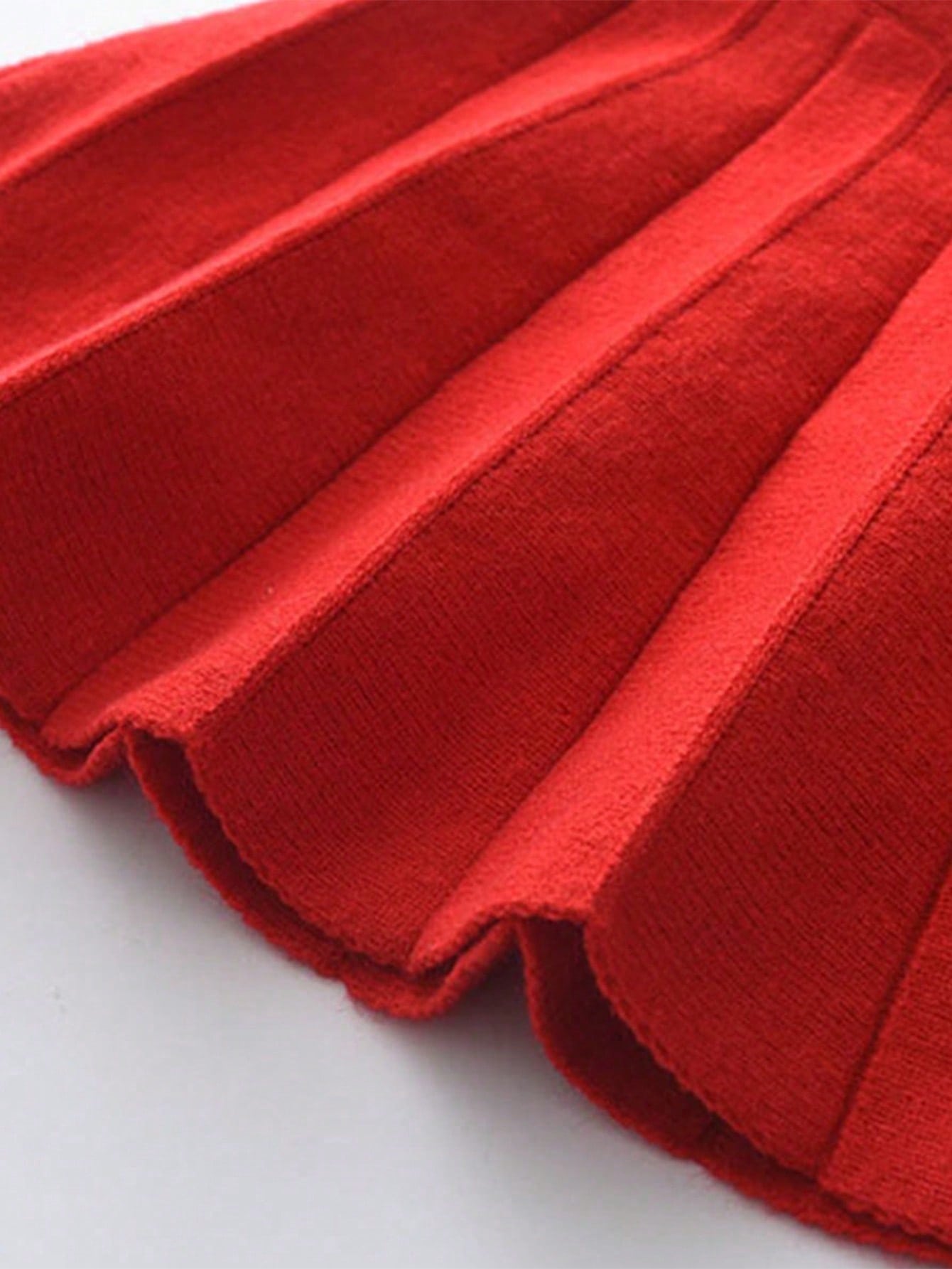 طقم ملابس علوية بكم طويل مطبوع بالفاكهة وتنورة مكرمشة للفتاة الصغيرة 2 قطعة/طقم ، خريف/شتاء