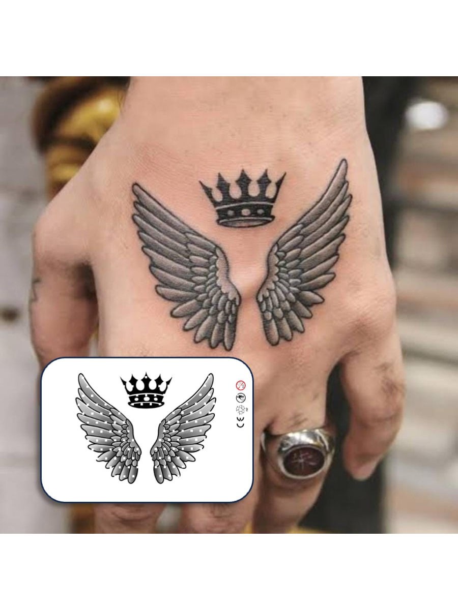طقم من الوشم بتقنية ثورية قطعة واحدة, وشم شبه دائم, ملاك, وشم مؤقت, وشم صناعي, مقاوم للماء, مظهر وشم حقيقي, نباتي, وشم, أجنحة, تاج, X068