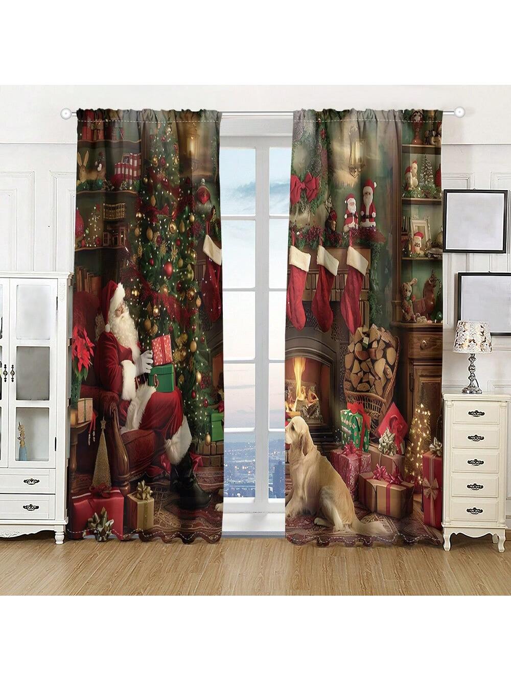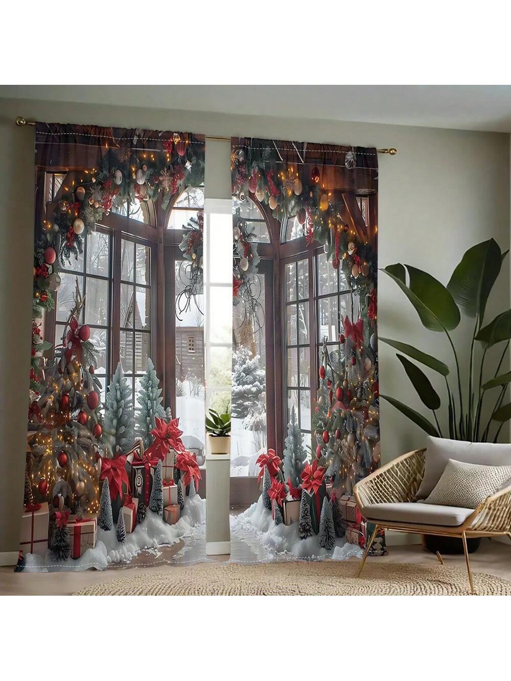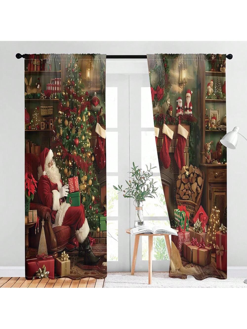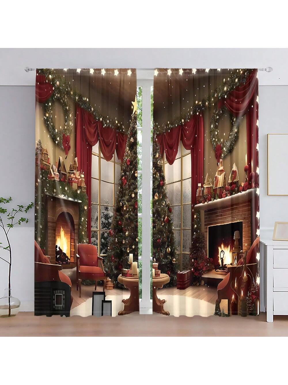 طقم واحد، ستارة 2 قطعة بطباعة رقمية لشجرة عيد الميلاد