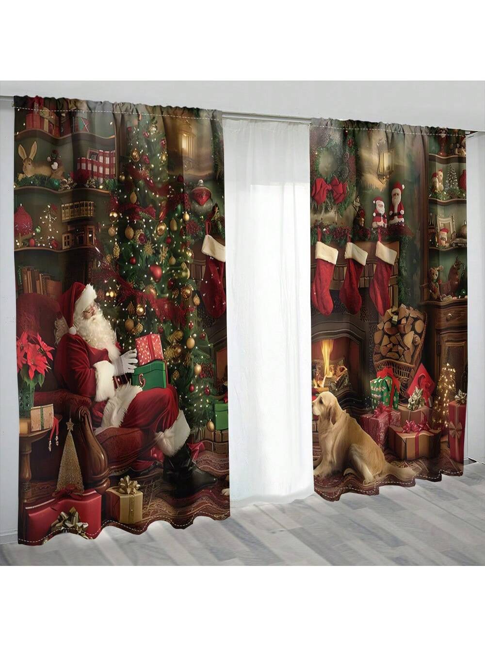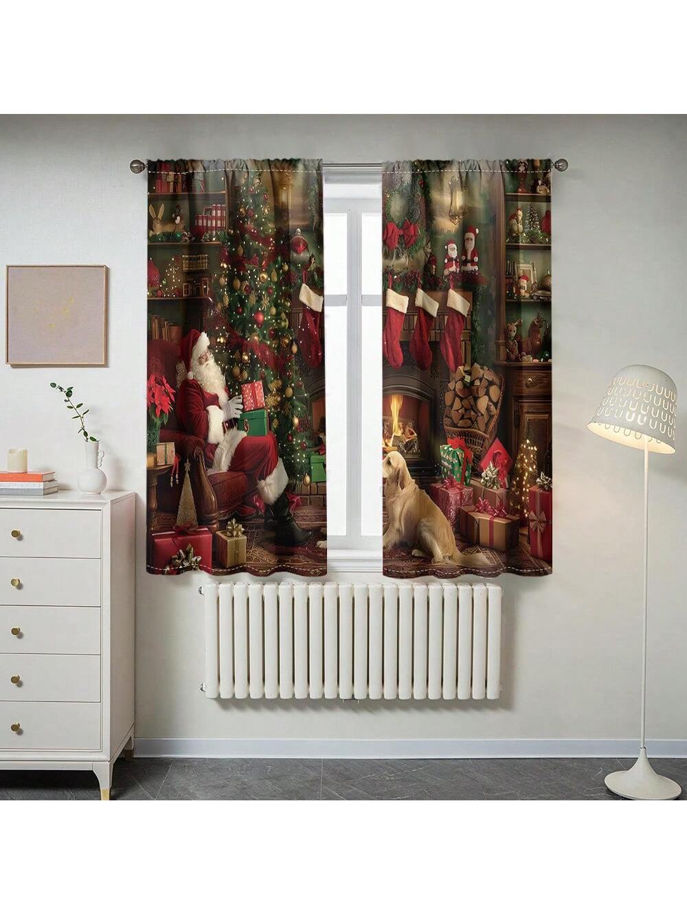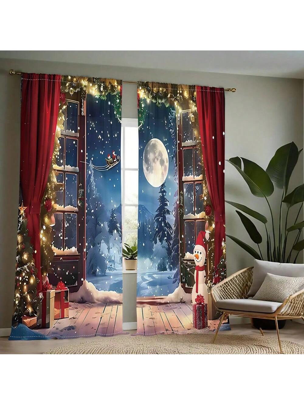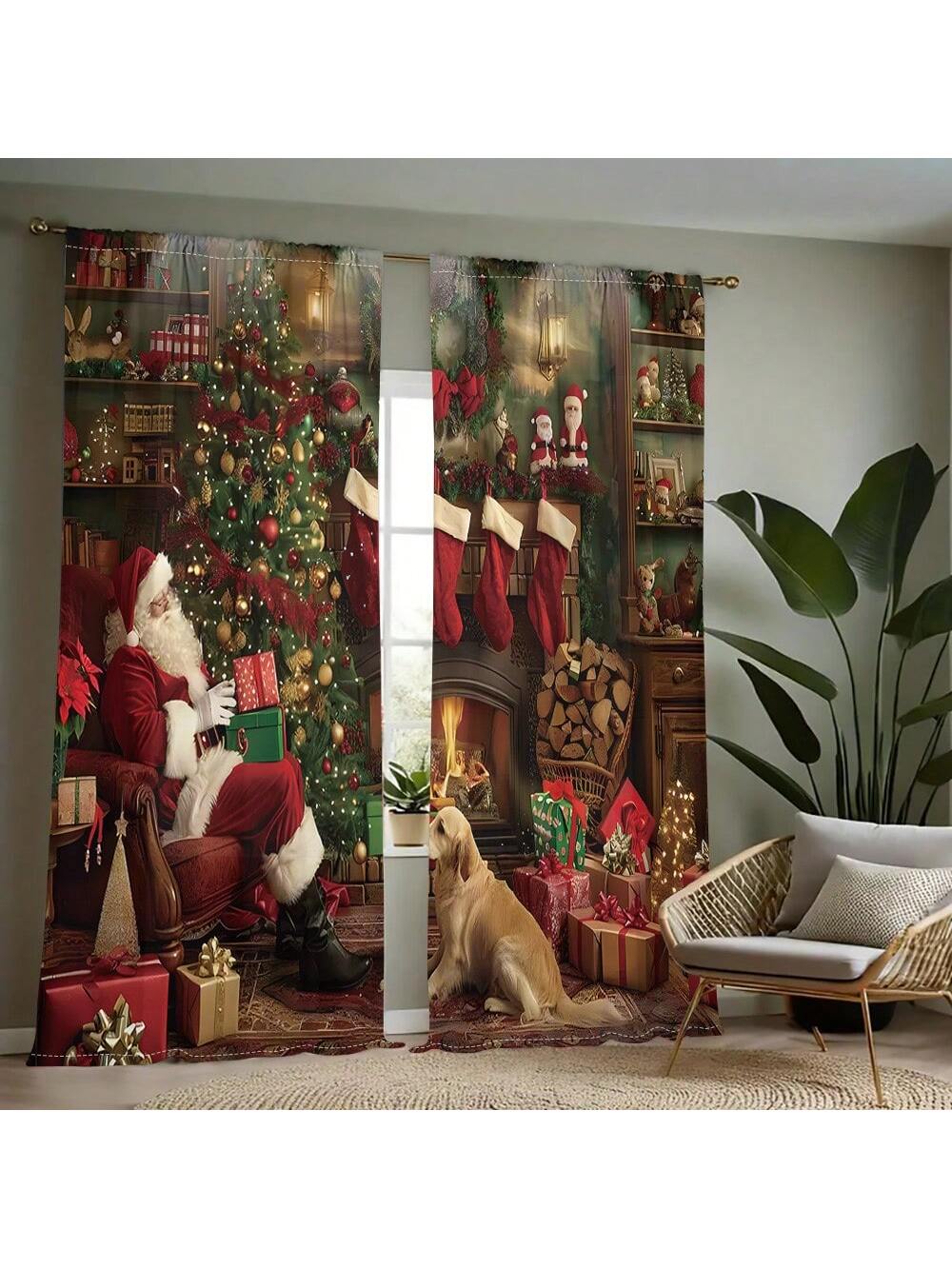 طقم واحد، ستارة 2 قطعة بطباعة رقمية لشجرة عيد الميلاد