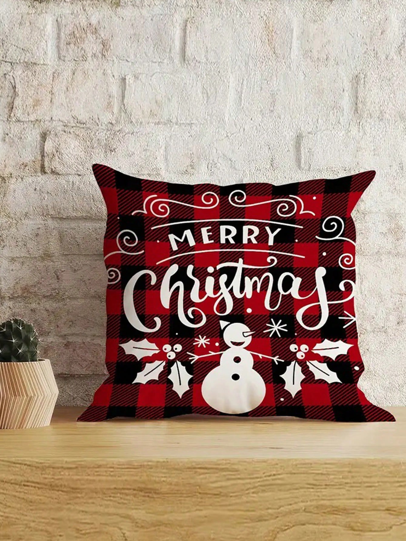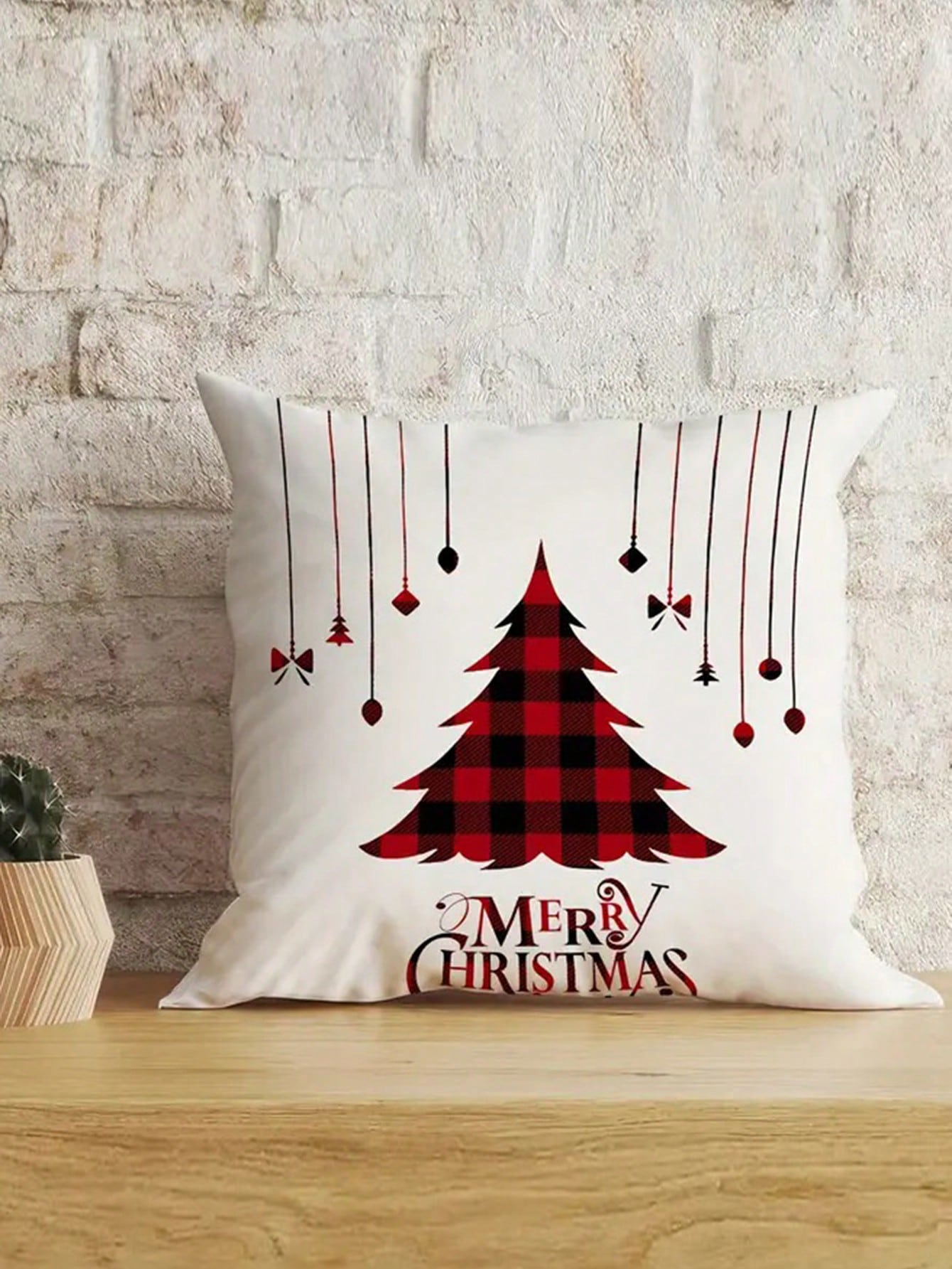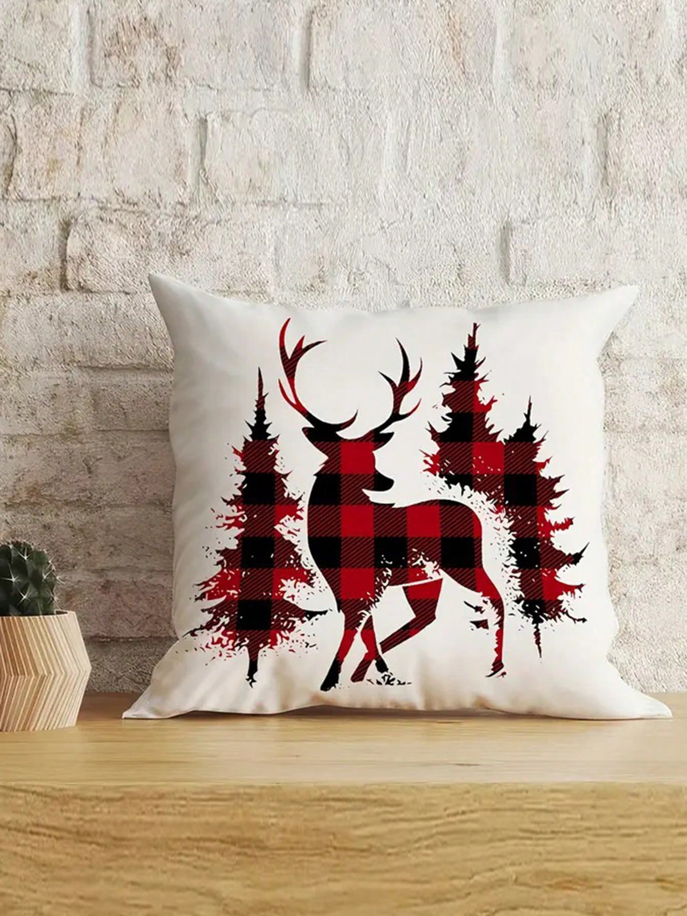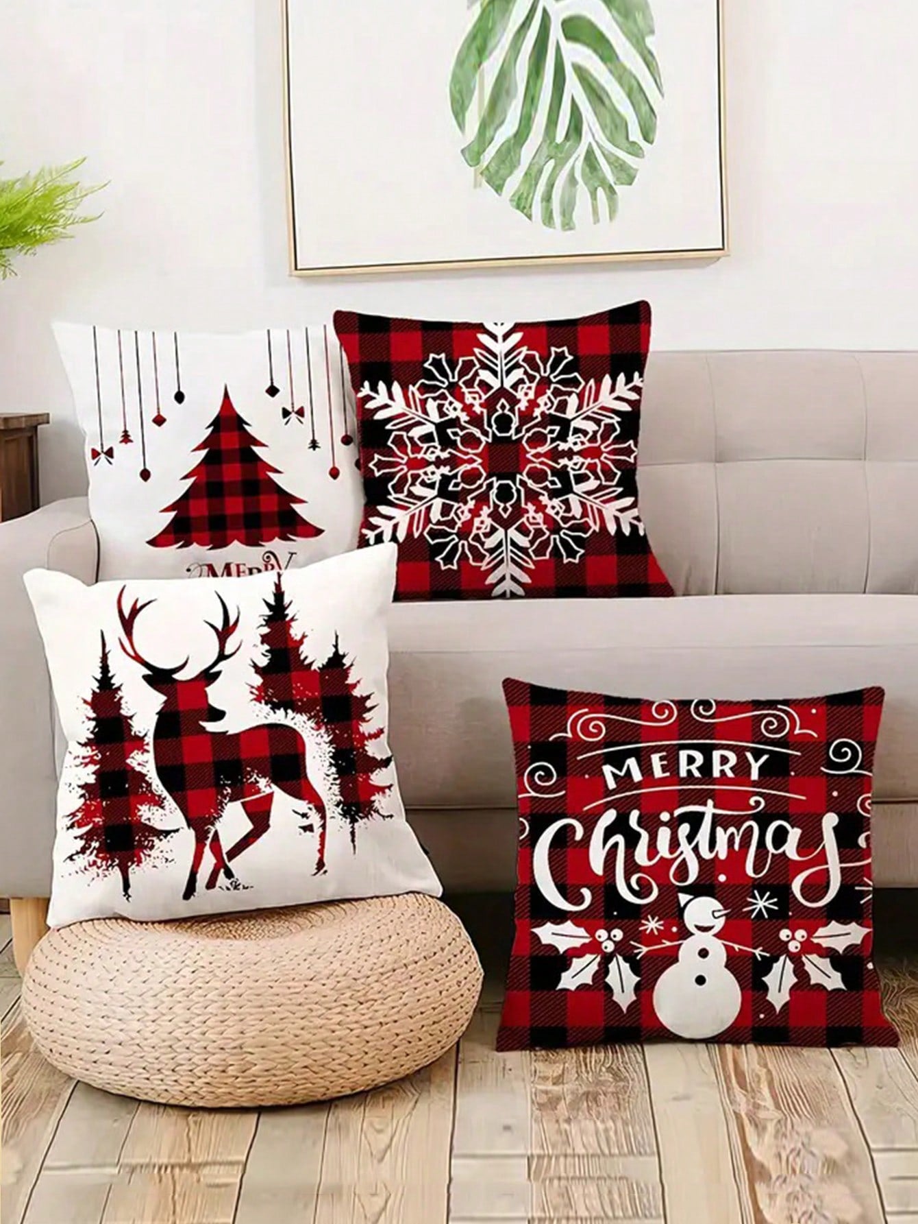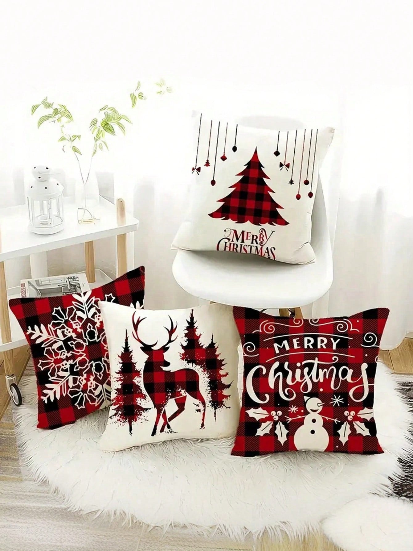 طقم 4قطع من أغطية الوسائد فائقة اللين للكريسماس - تصميم الرنة والشجرة ، طباعة أحادية الجانب