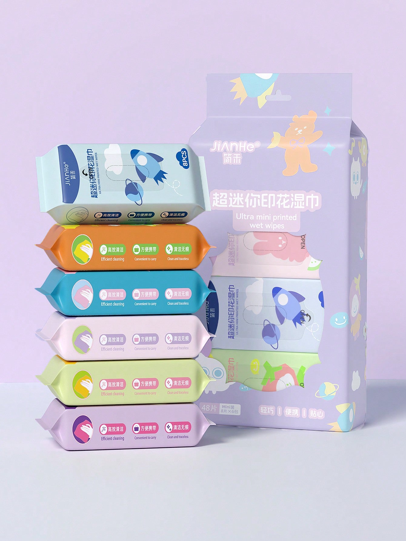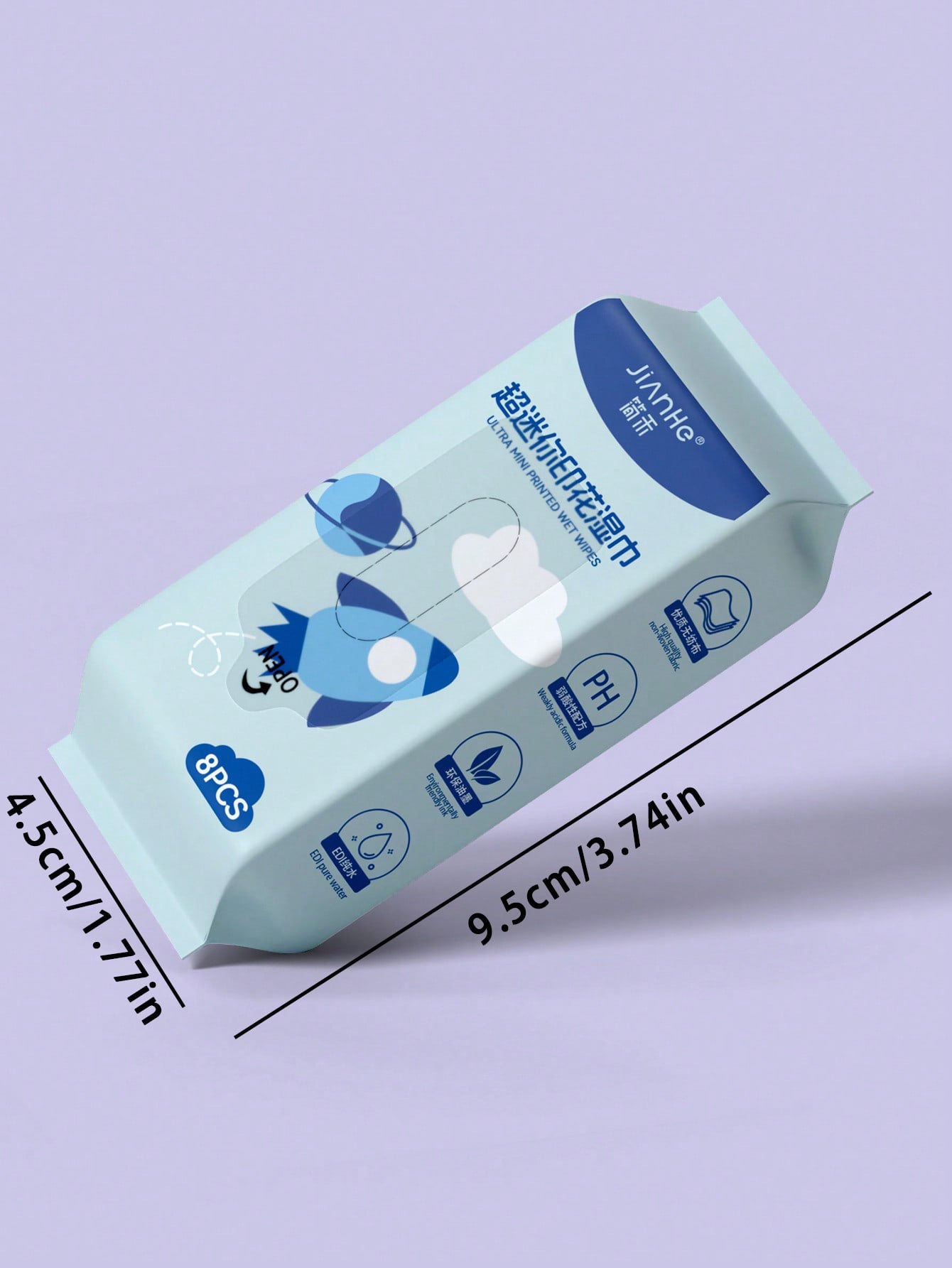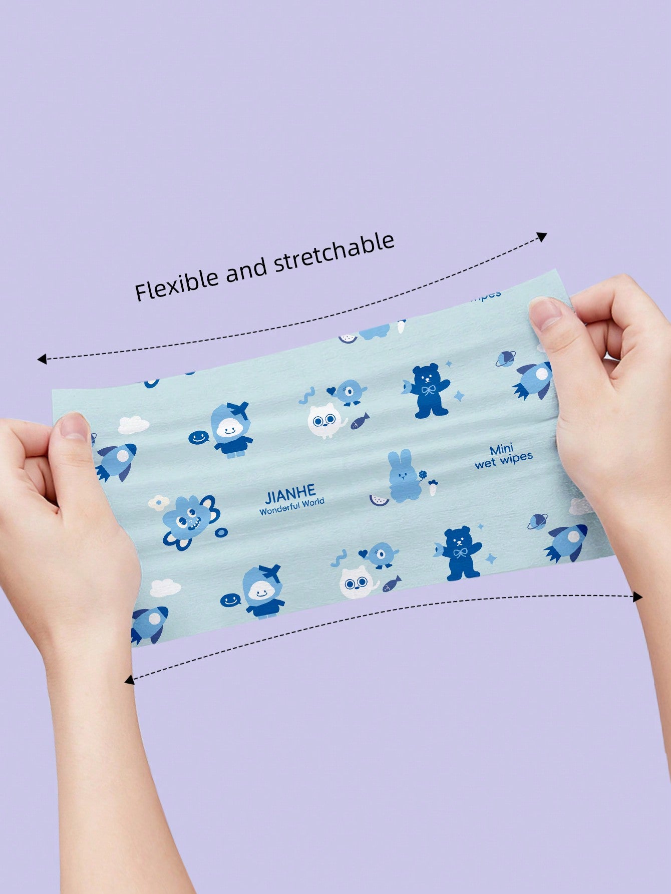 عبوة واحدة من المناديل المبللة المطبوعة الميني، مناديل مبللة ناعمة ذات طباعة زرقاء، مناسبة للسفر، ضرورية للمنزل (كل عبوة فردية صغيرة!)