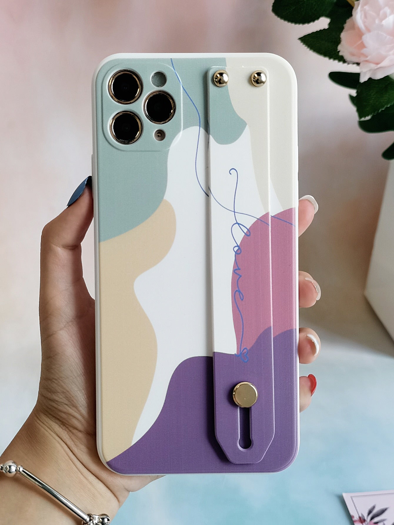 غطاء الهاتف مع حزام قلاووظ ، غطاء الهاتف بتصميم بلوك الألوان مع سوار المعصم