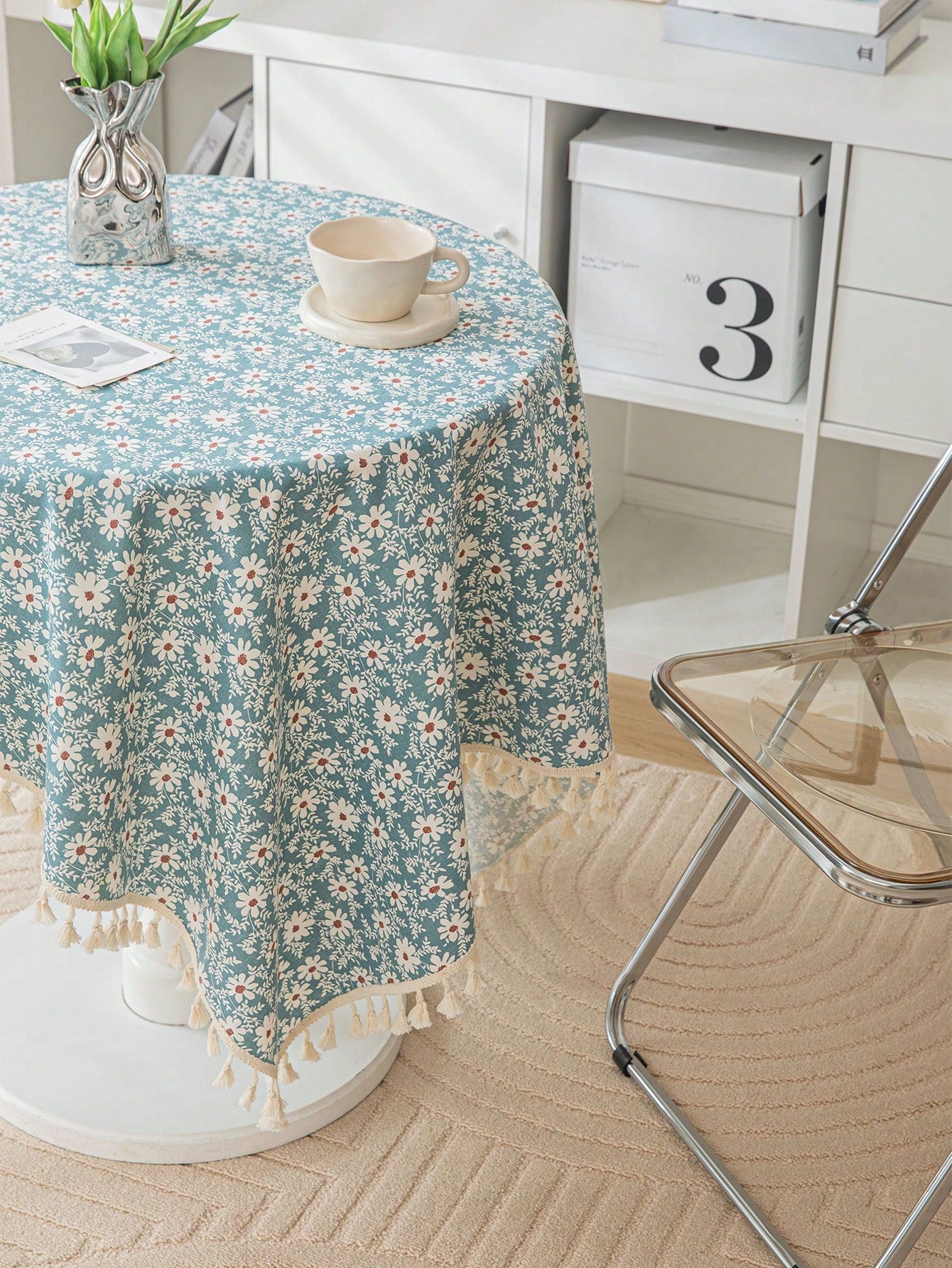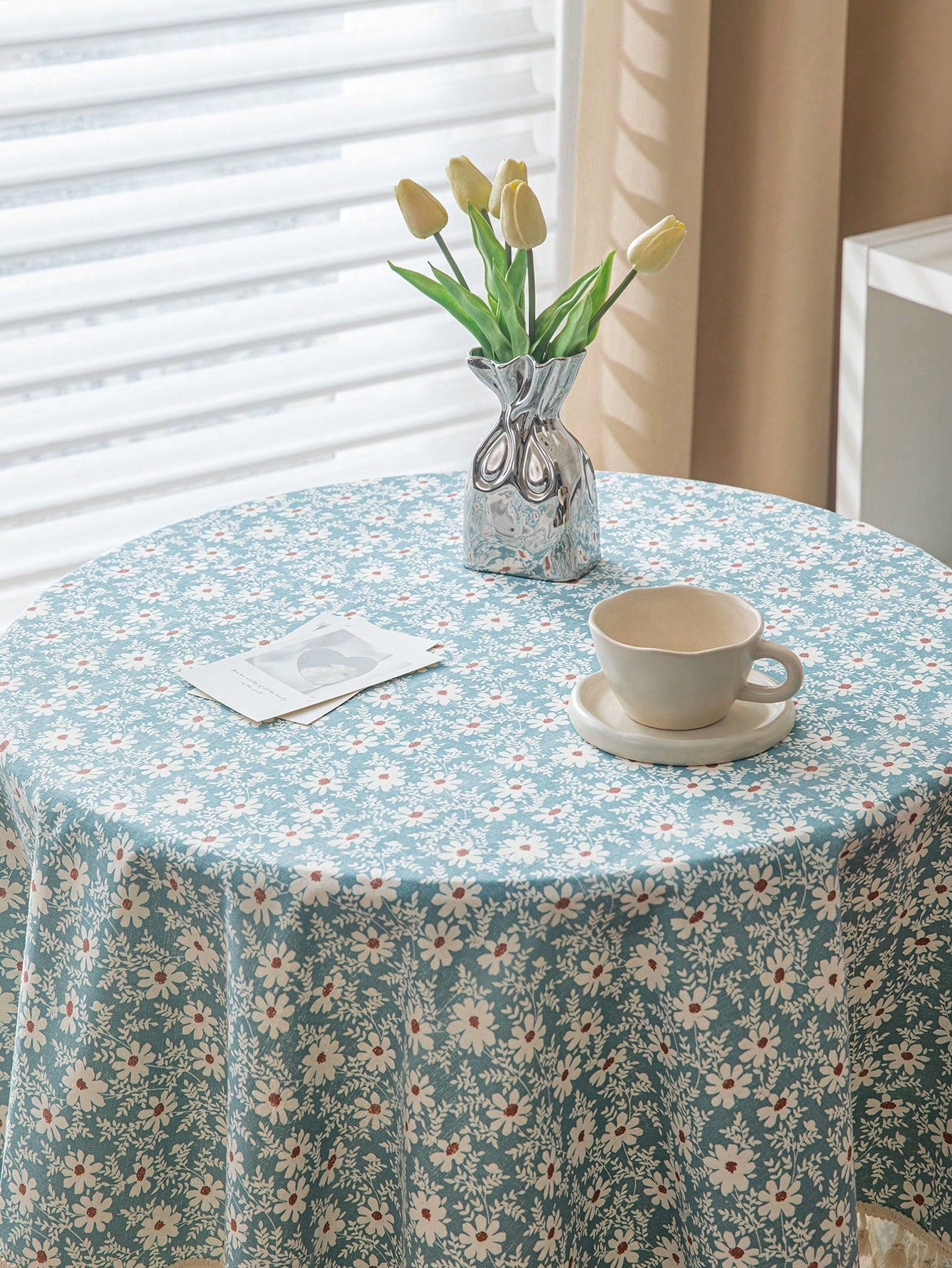 غطاء طاولة بتصميم ريفي للأزهار والعروة بقماشة واحدة، مناسب لديكور غرف المعيشة والنوم، ويمكن استخدامه في جميع المواسم