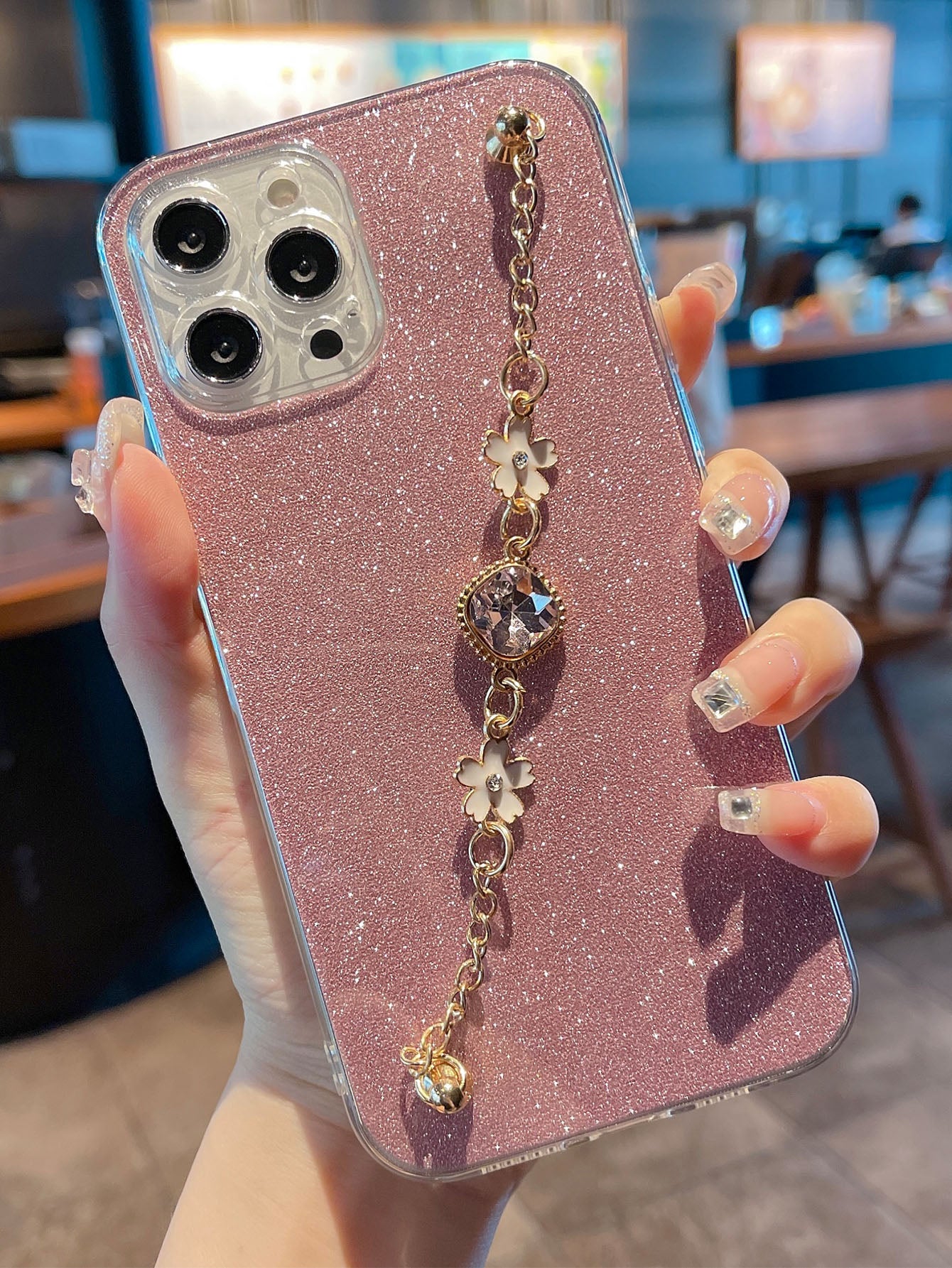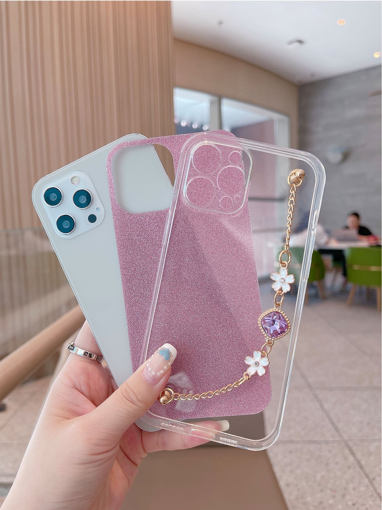 غطاء هاتفي وحزام يد مغزول من TPU باللون الوردي