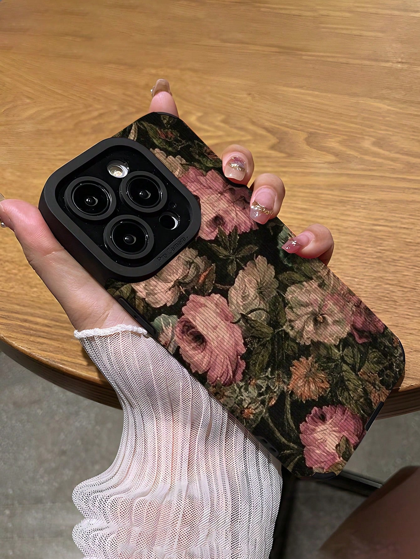غطاء هاتف ذو نمط زهري كثيف عتيق قطعة واحدة
