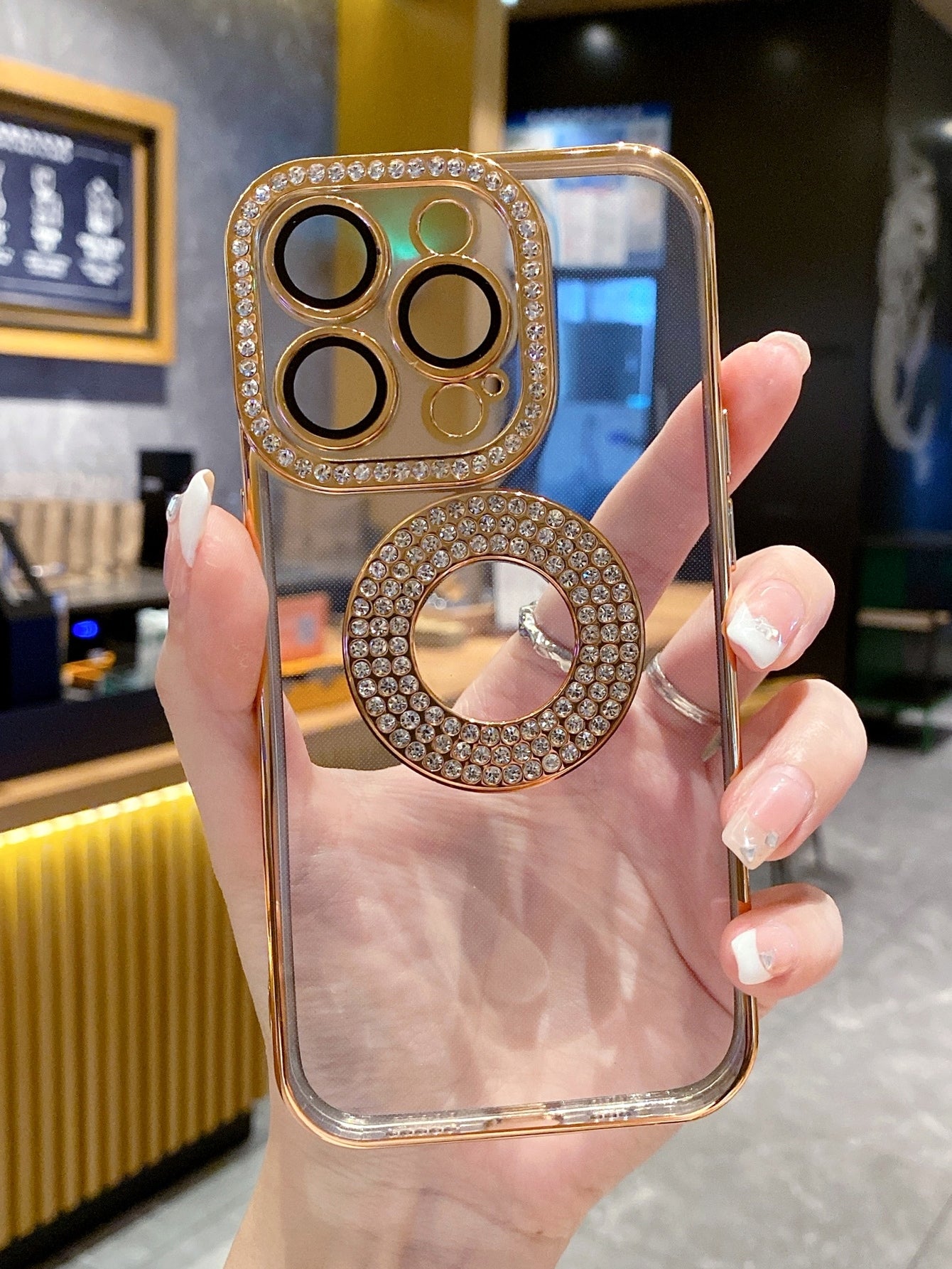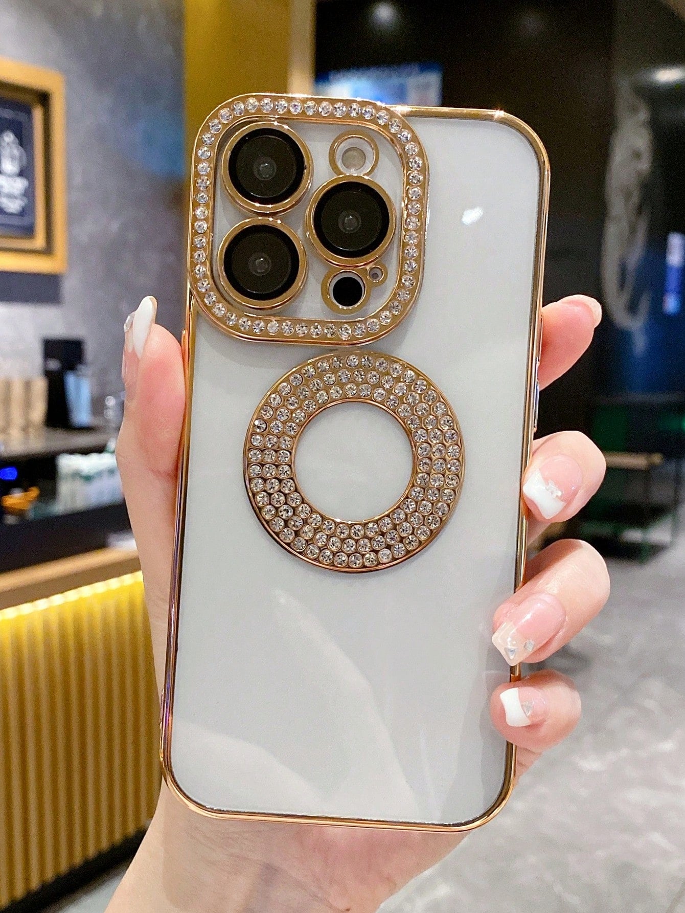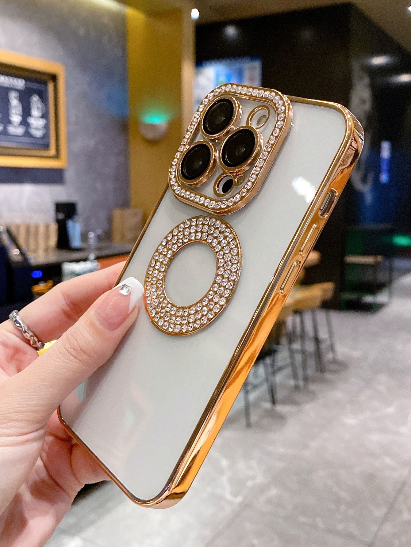 غطاء هاتف شفاف مغناطيسي مزين بالراينستون