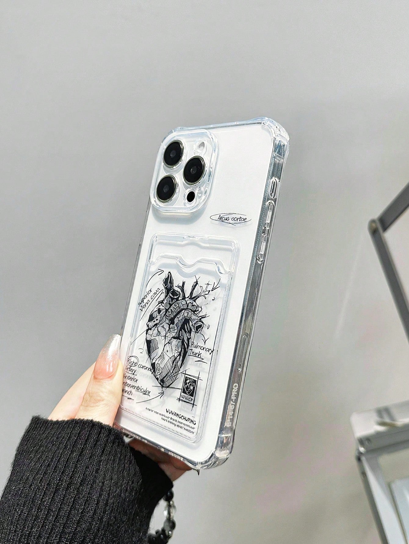 غطاء هاتف صدمات مقوى شفاف مع حامل بطاقات وقلب شكل رسم كرتوني وسلسلة دب إضافية
