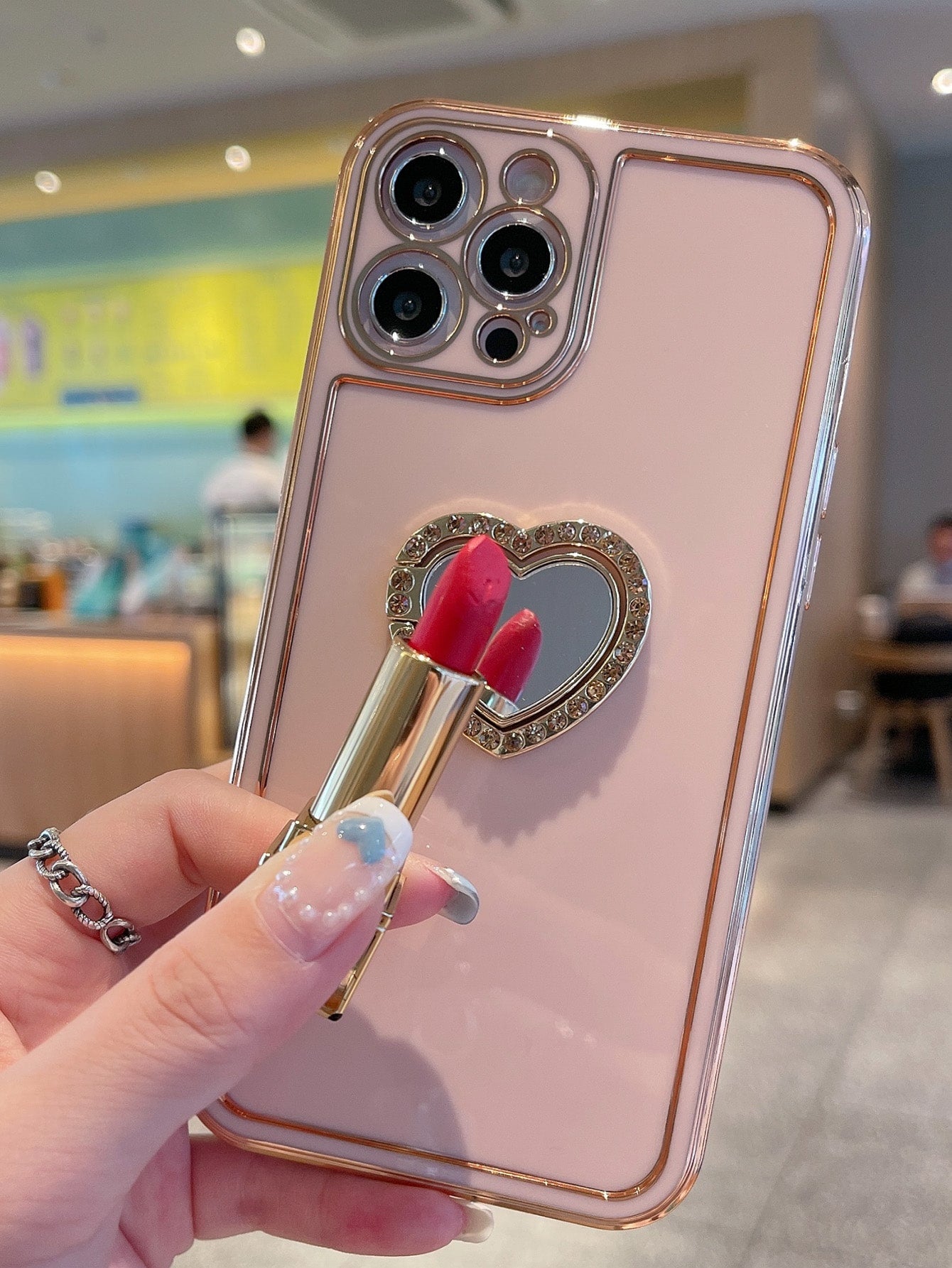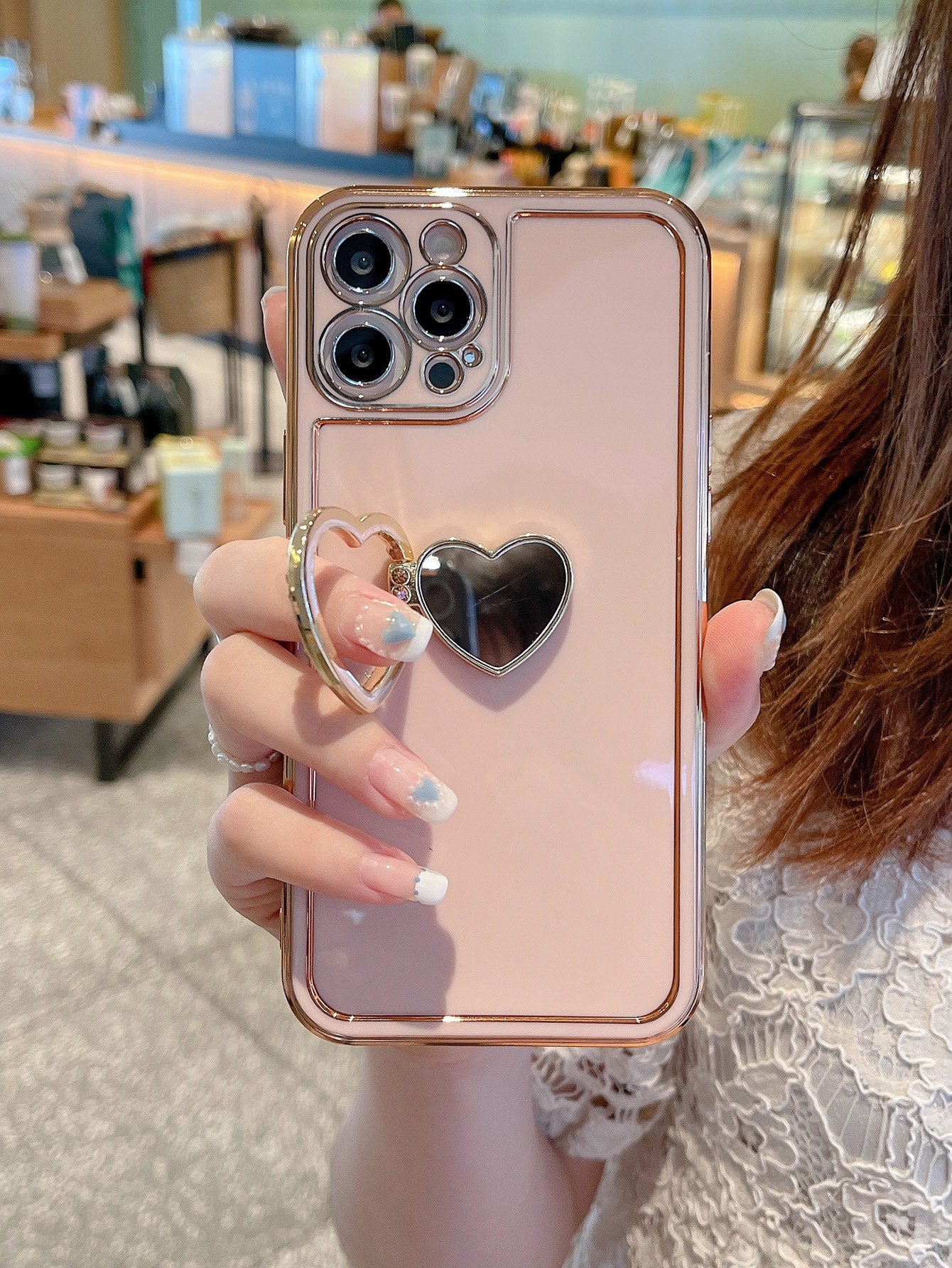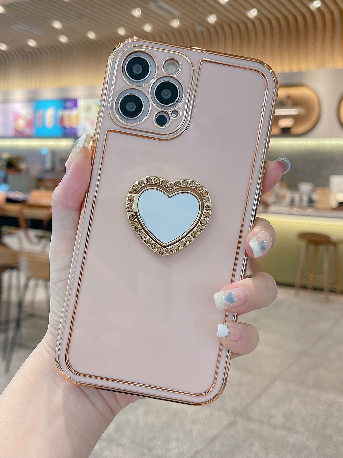 غطاء هاتف صلب بحامل حلقي على شكل قلب