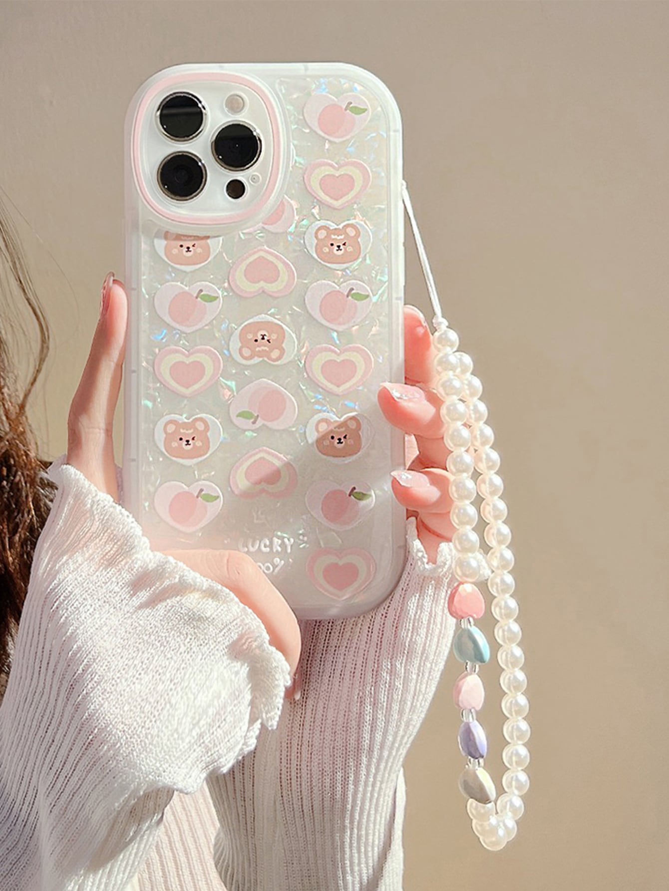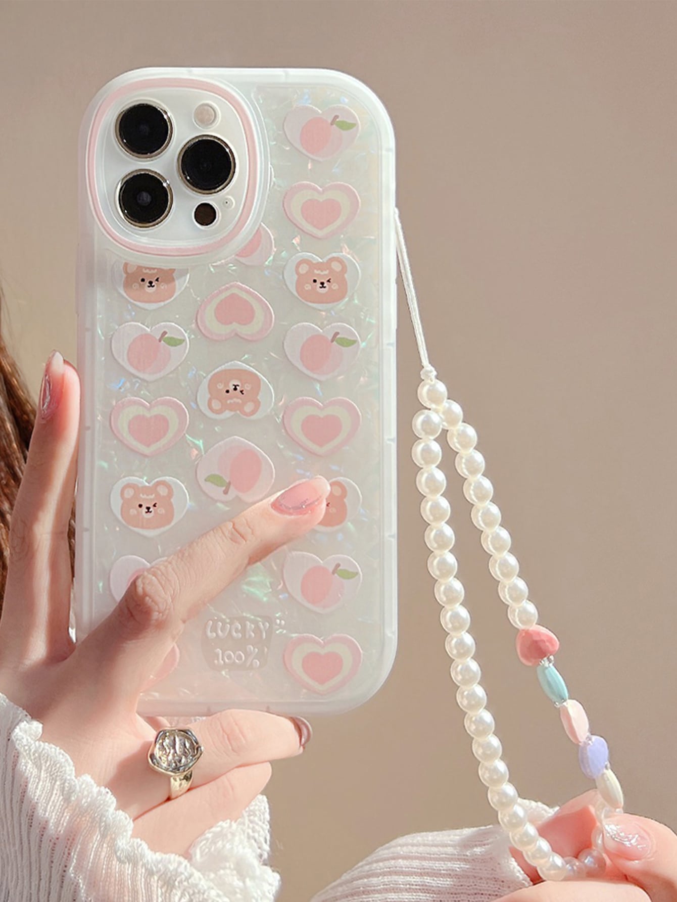 غطاء هاتف صيفي مطبوع بدببة كرتونية وخوخ مع شريط للعنق