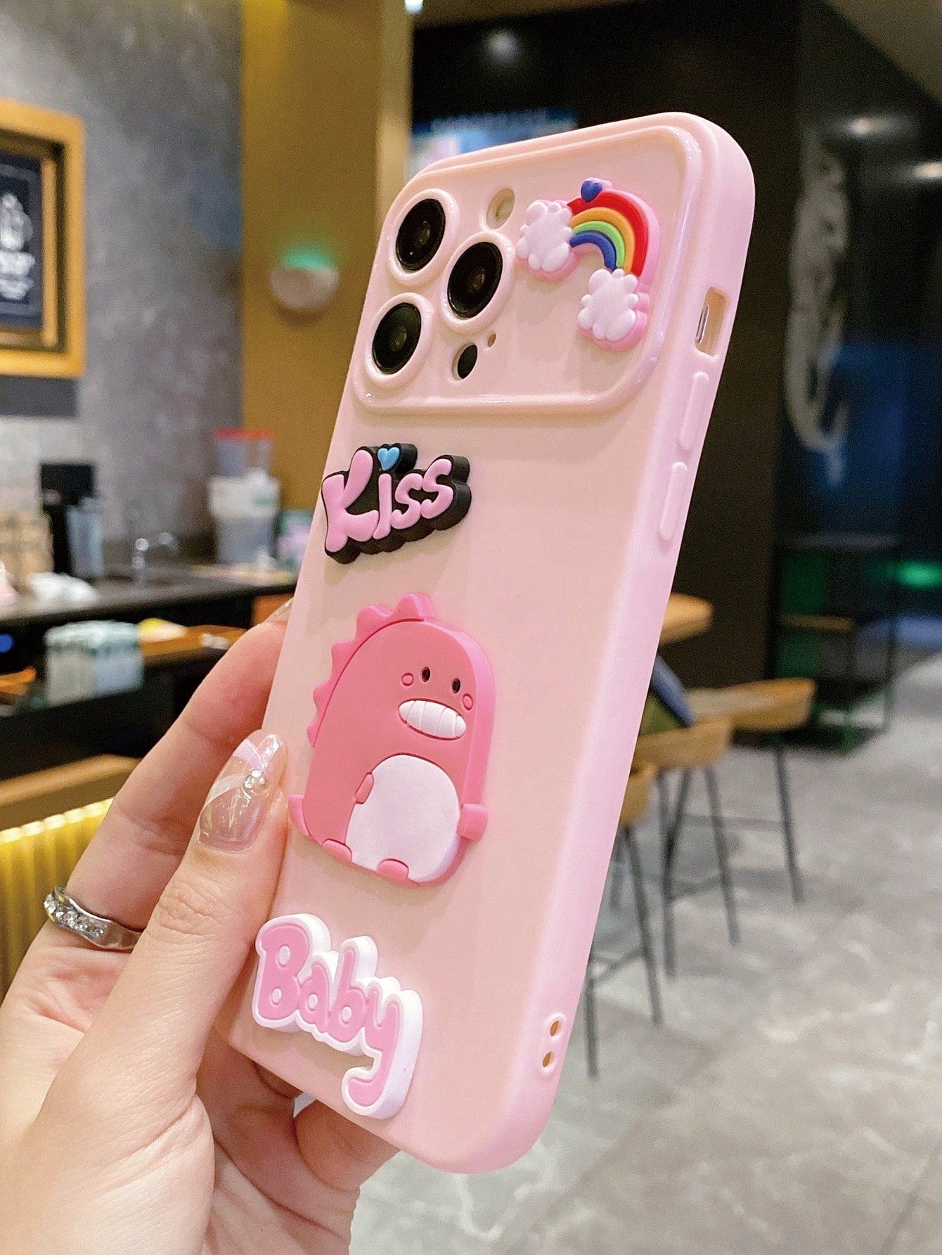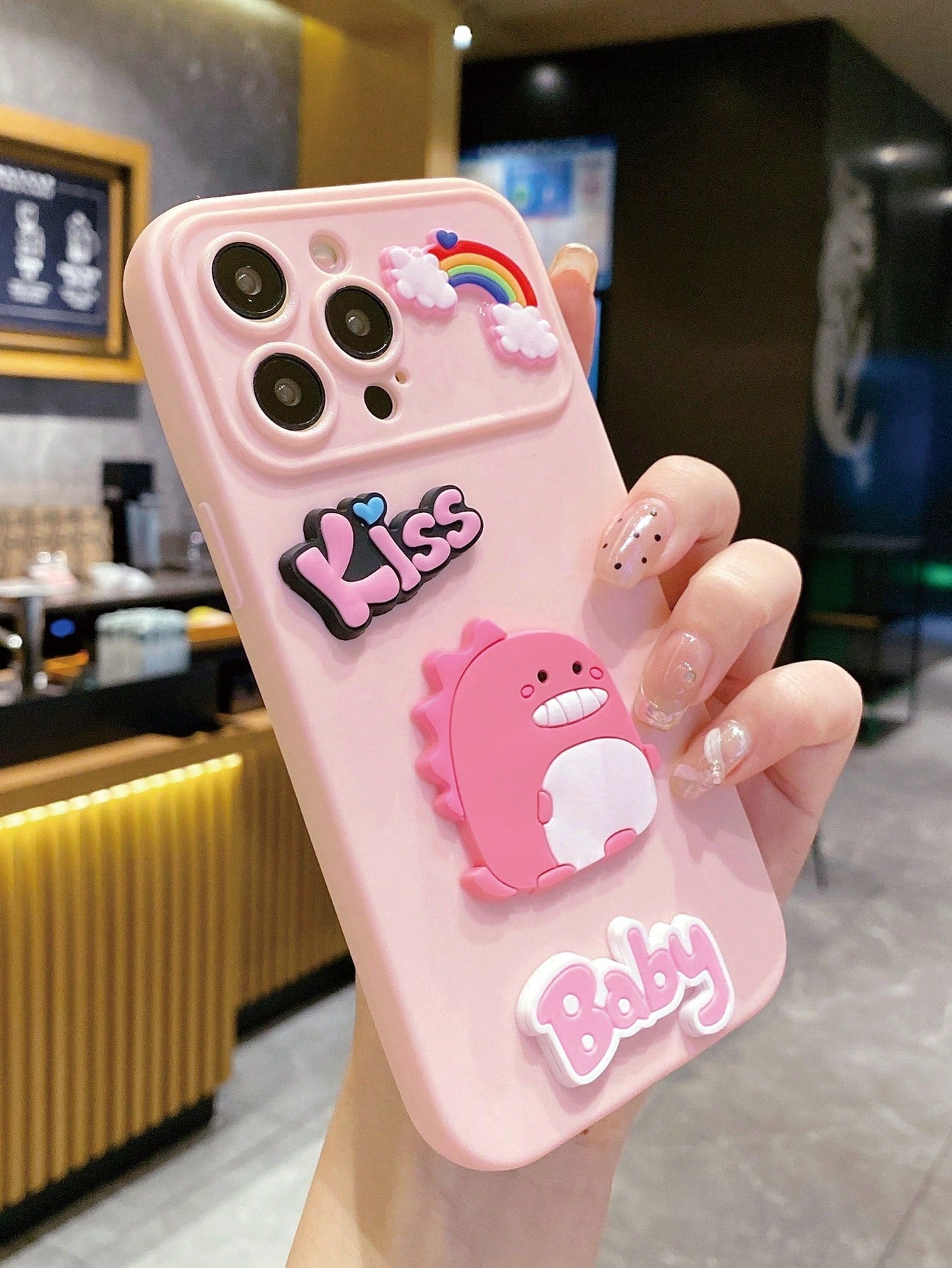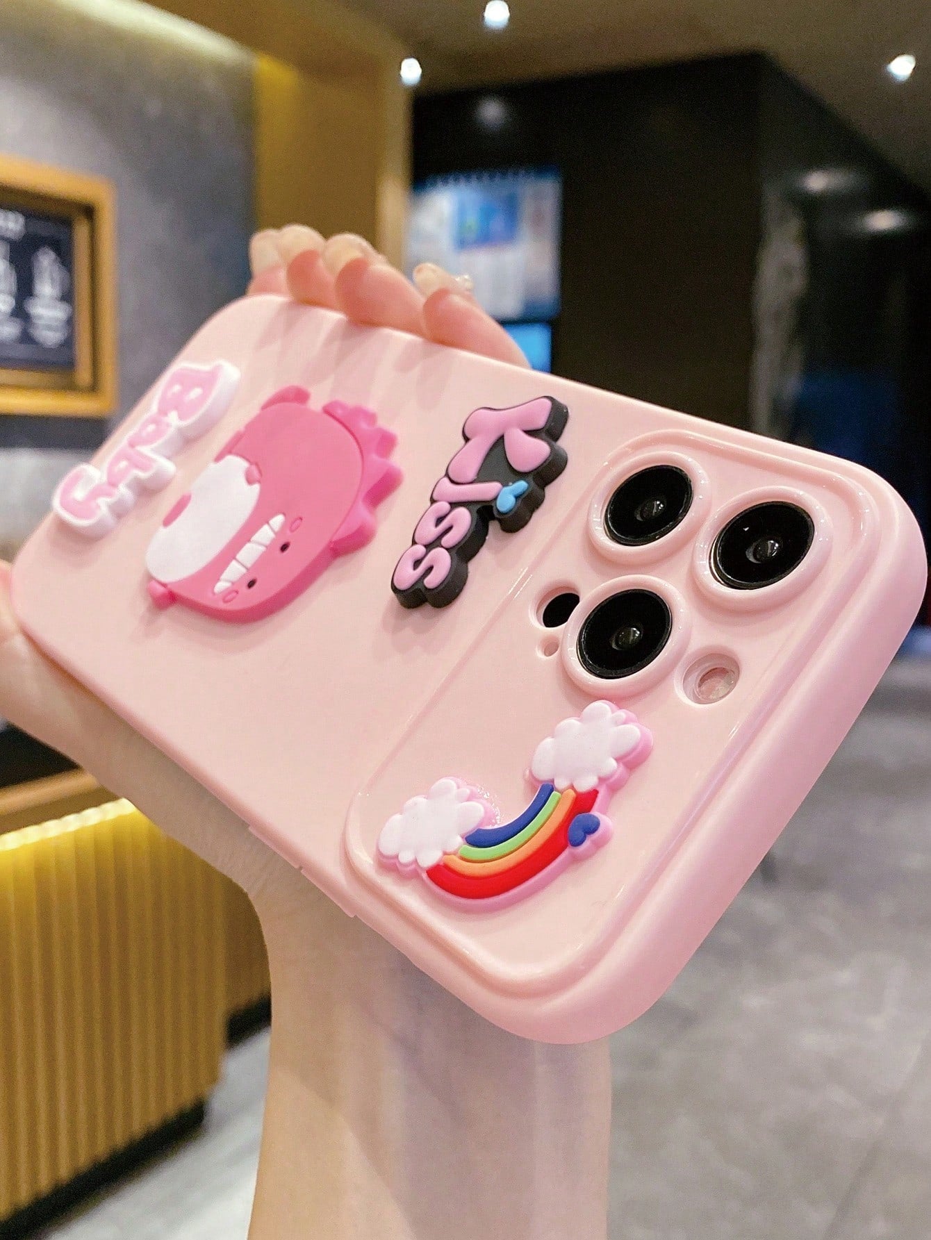 غطاء هاتف كبير بنافذة، لاصق كرتوني ثلاثي الأبعاد بملمس ناعم ولاصق