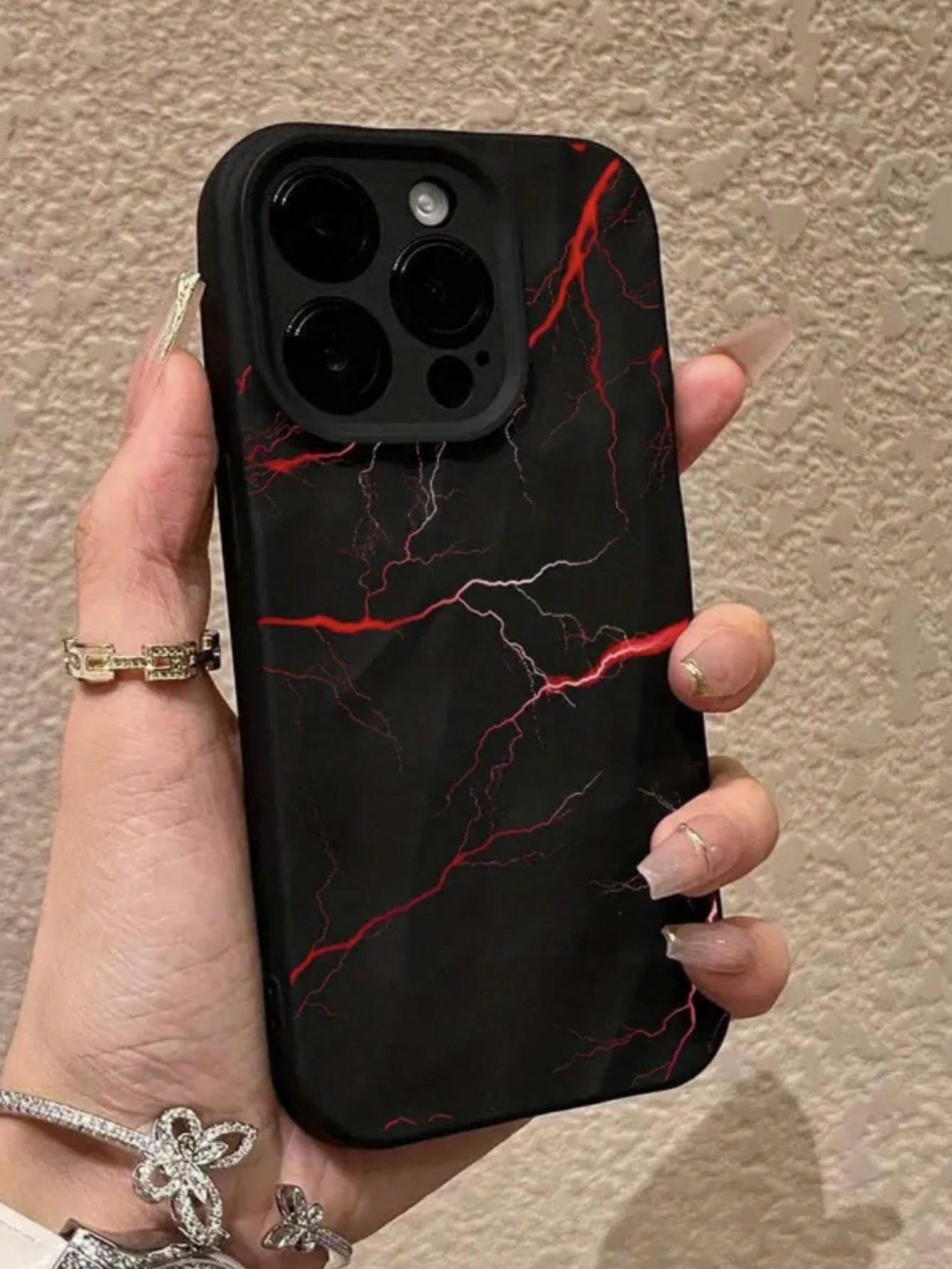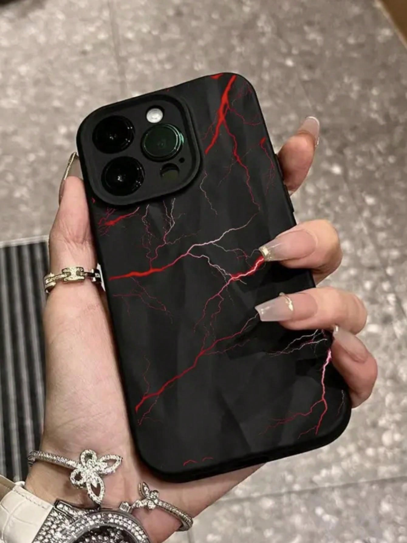غطاء هاتف محمي بمظهر برق أحمر تفاح