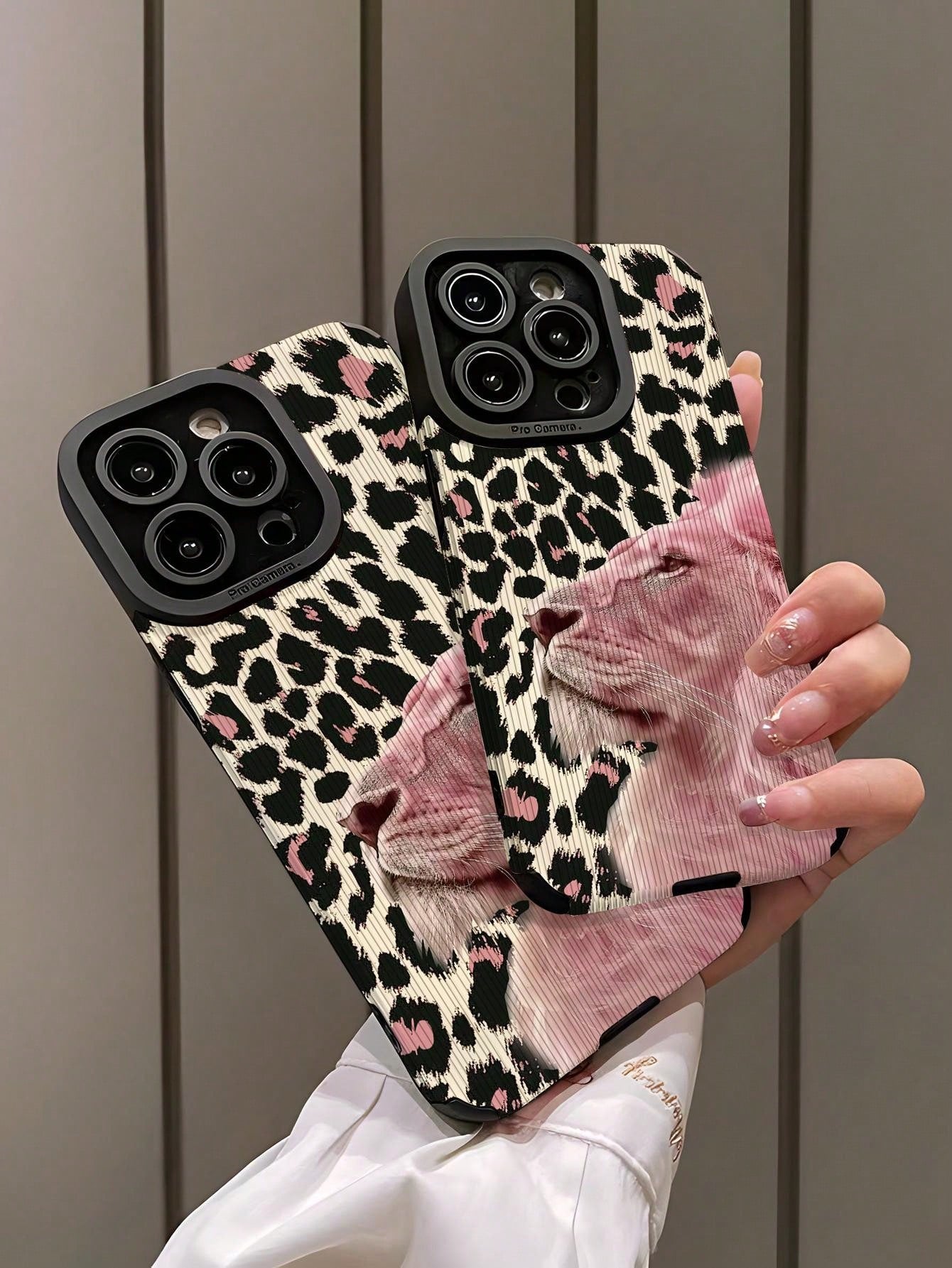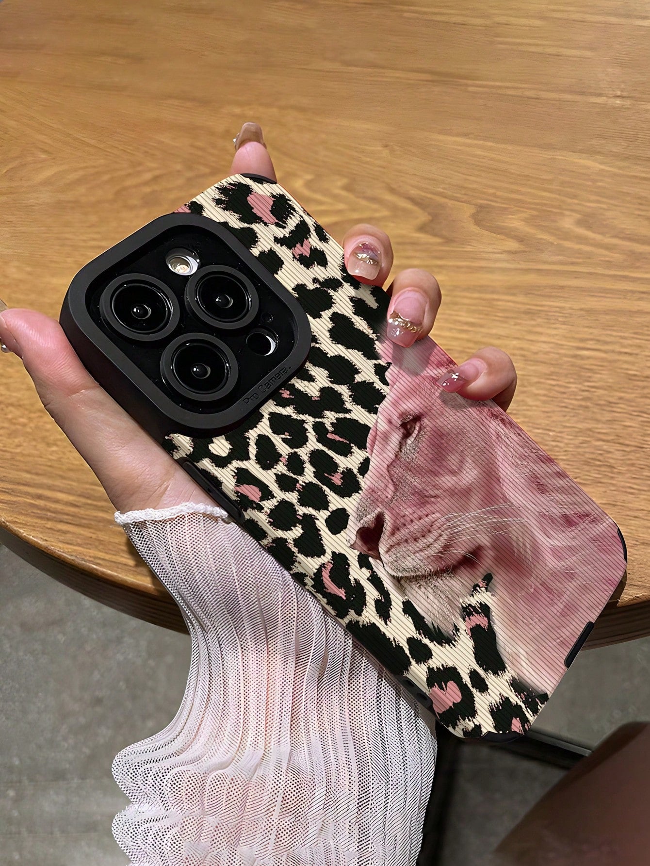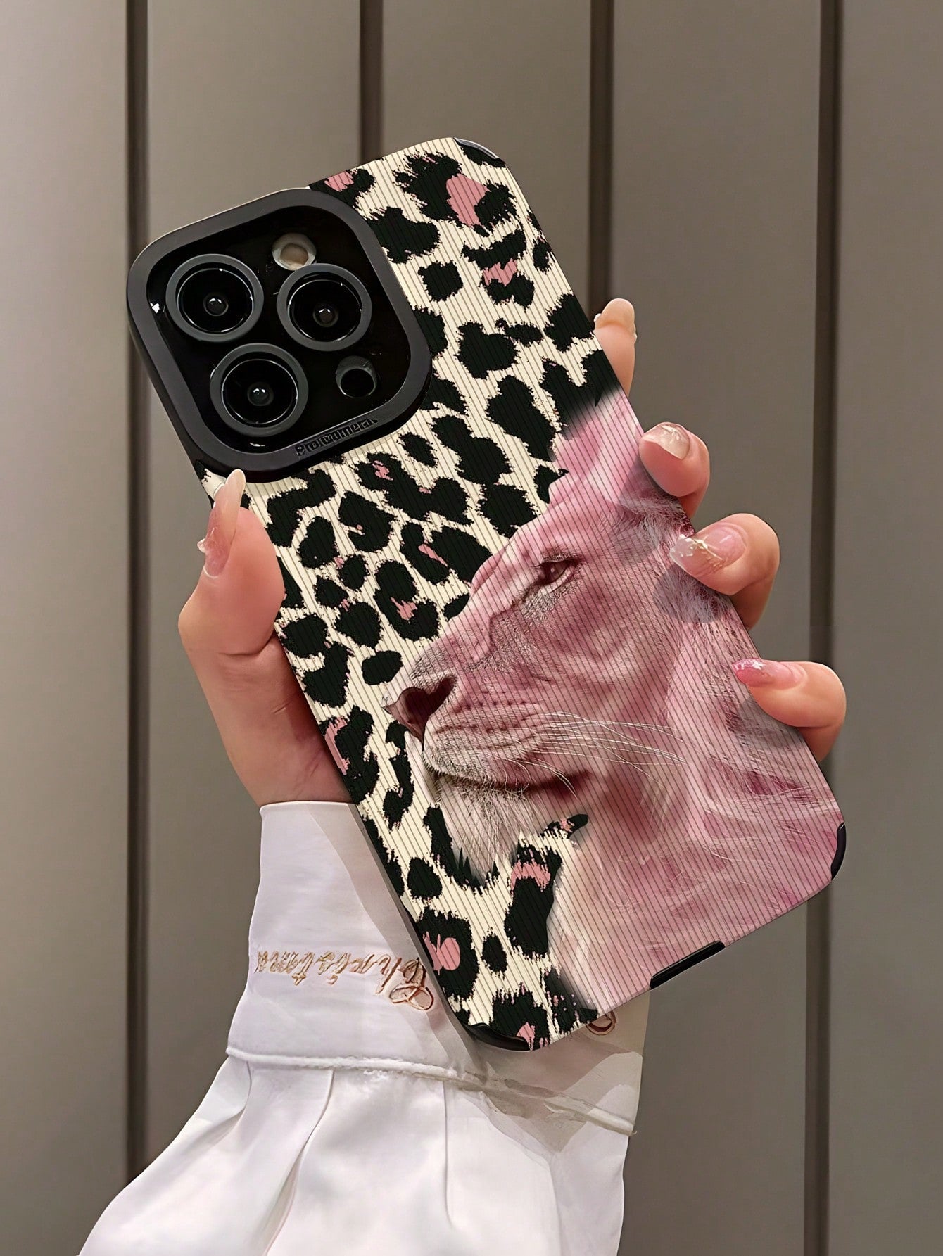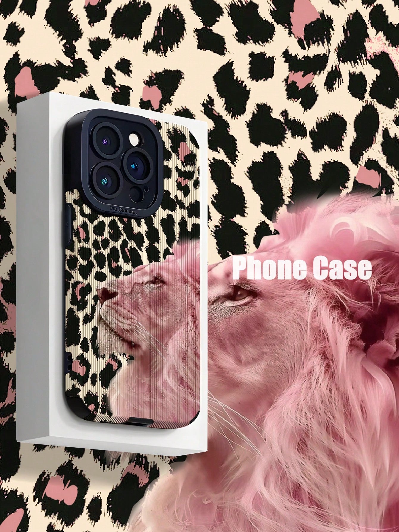 غطاء هاتف نقال وردي محمي ناعم مقاوم للصدمات بنمط رأس أسد مخملي