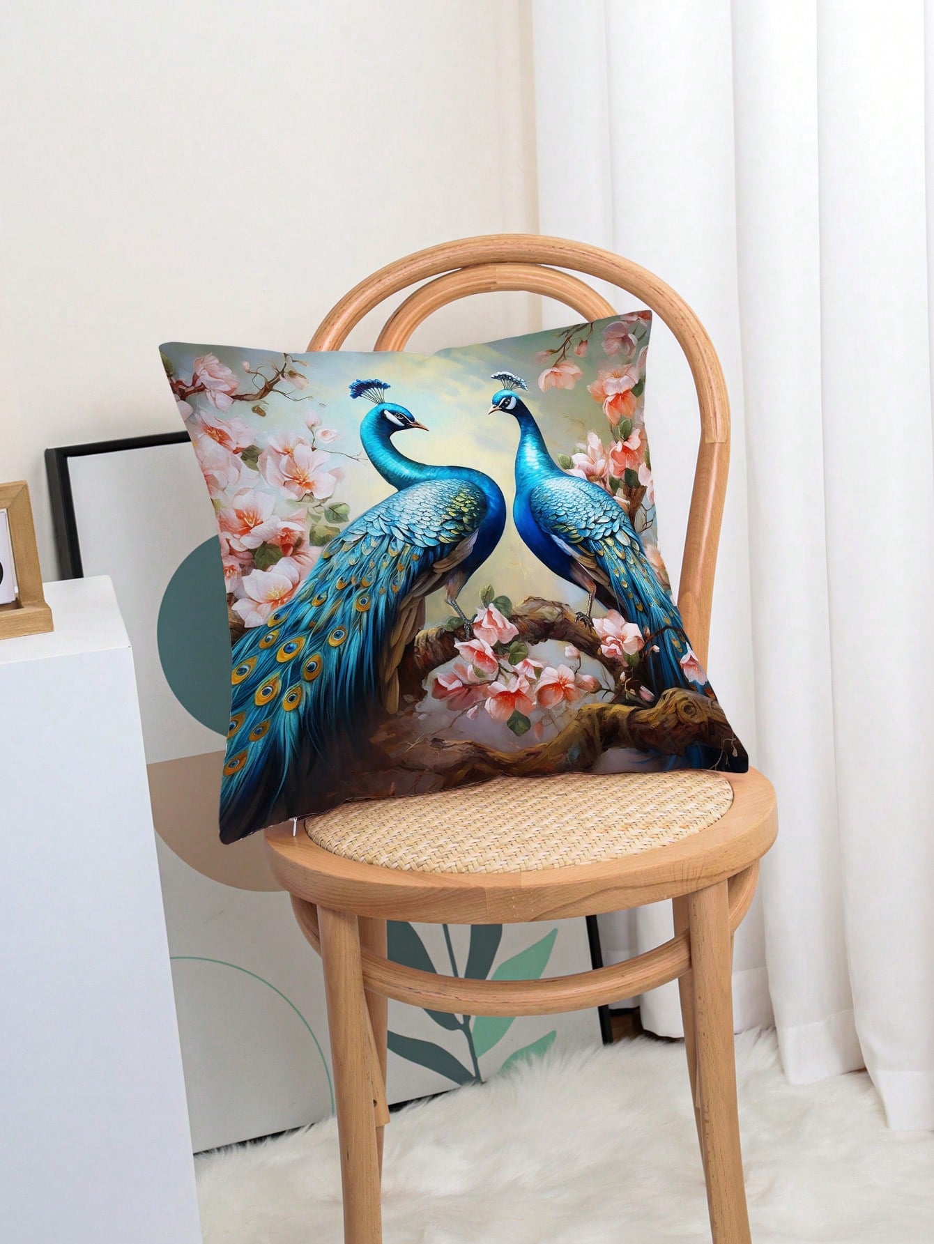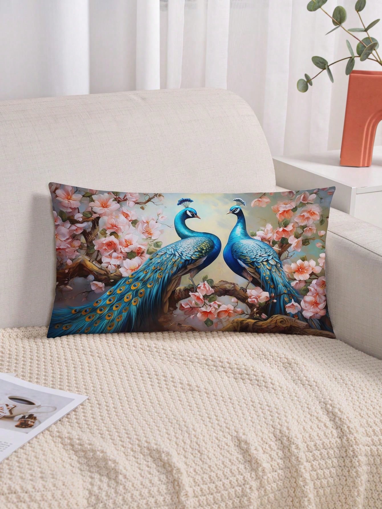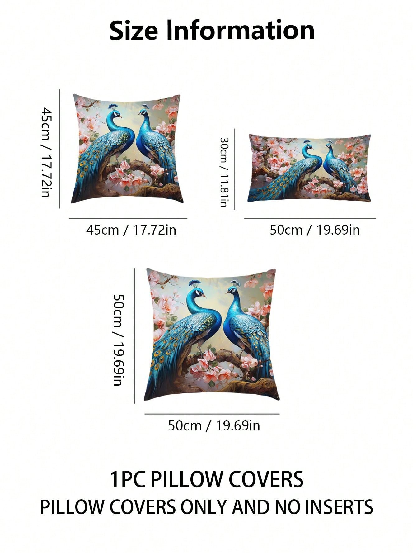 غطاء وسادة بنمط الطاووس قطعة واحدة، غطاء وسادة مزخرف بنمط الطباعة على القماش القطني المنسوج