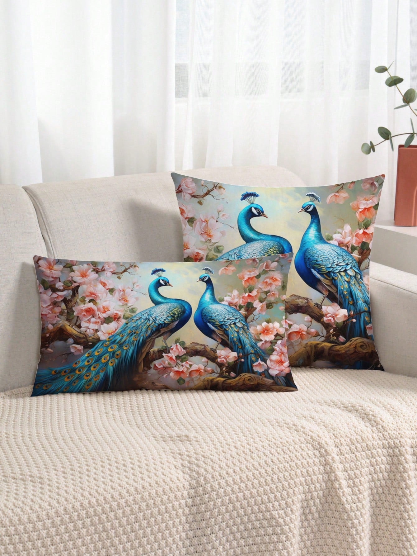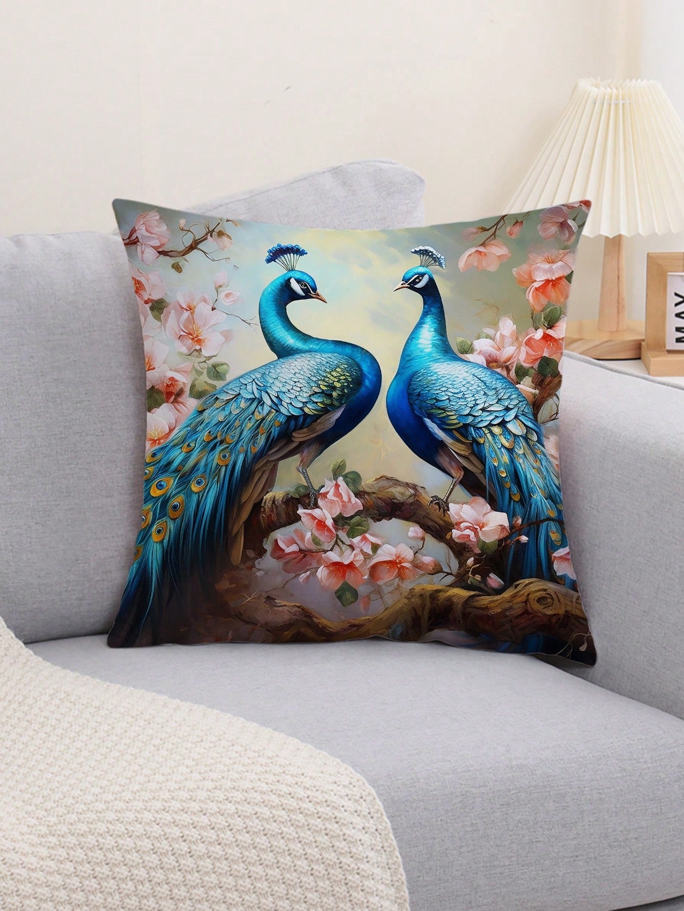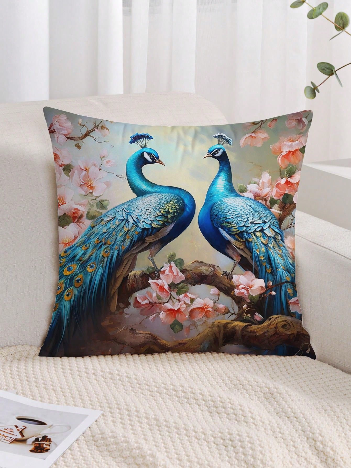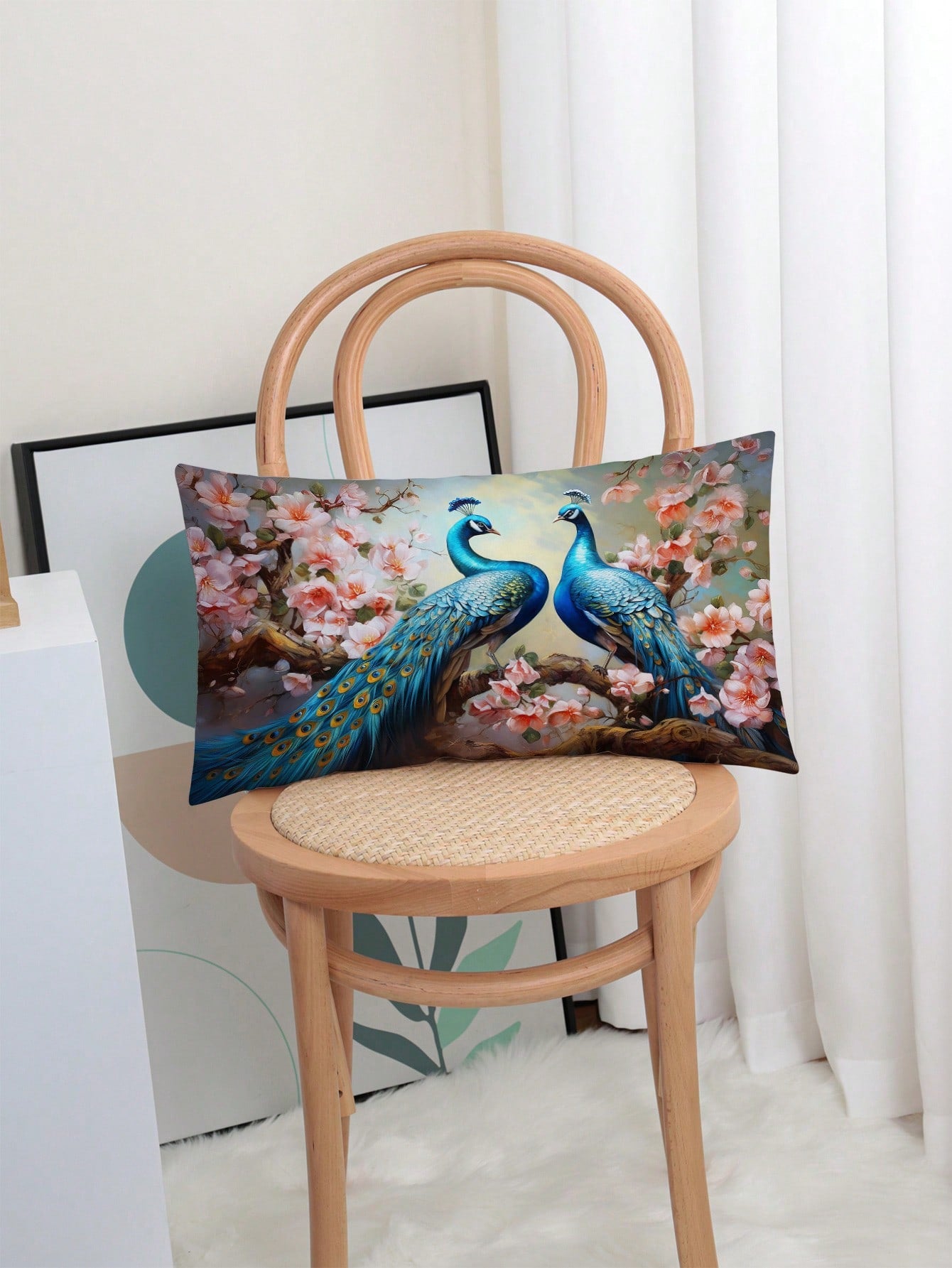 غطاء وسادة بنمط الطاووس قطعة واحدة، غطاء وسادة مزخرف بنمط الطباعة على القماش القطني المنسوج