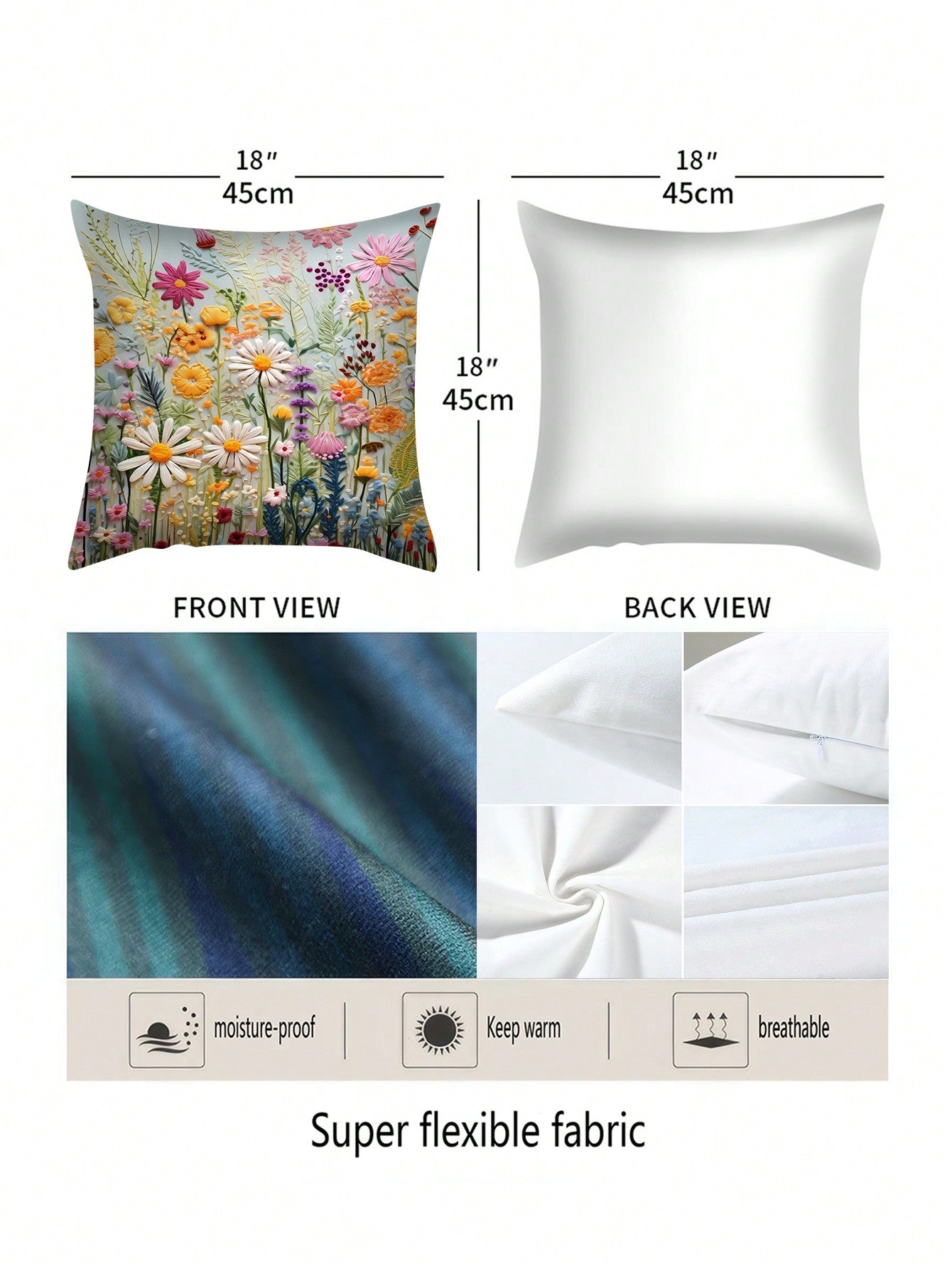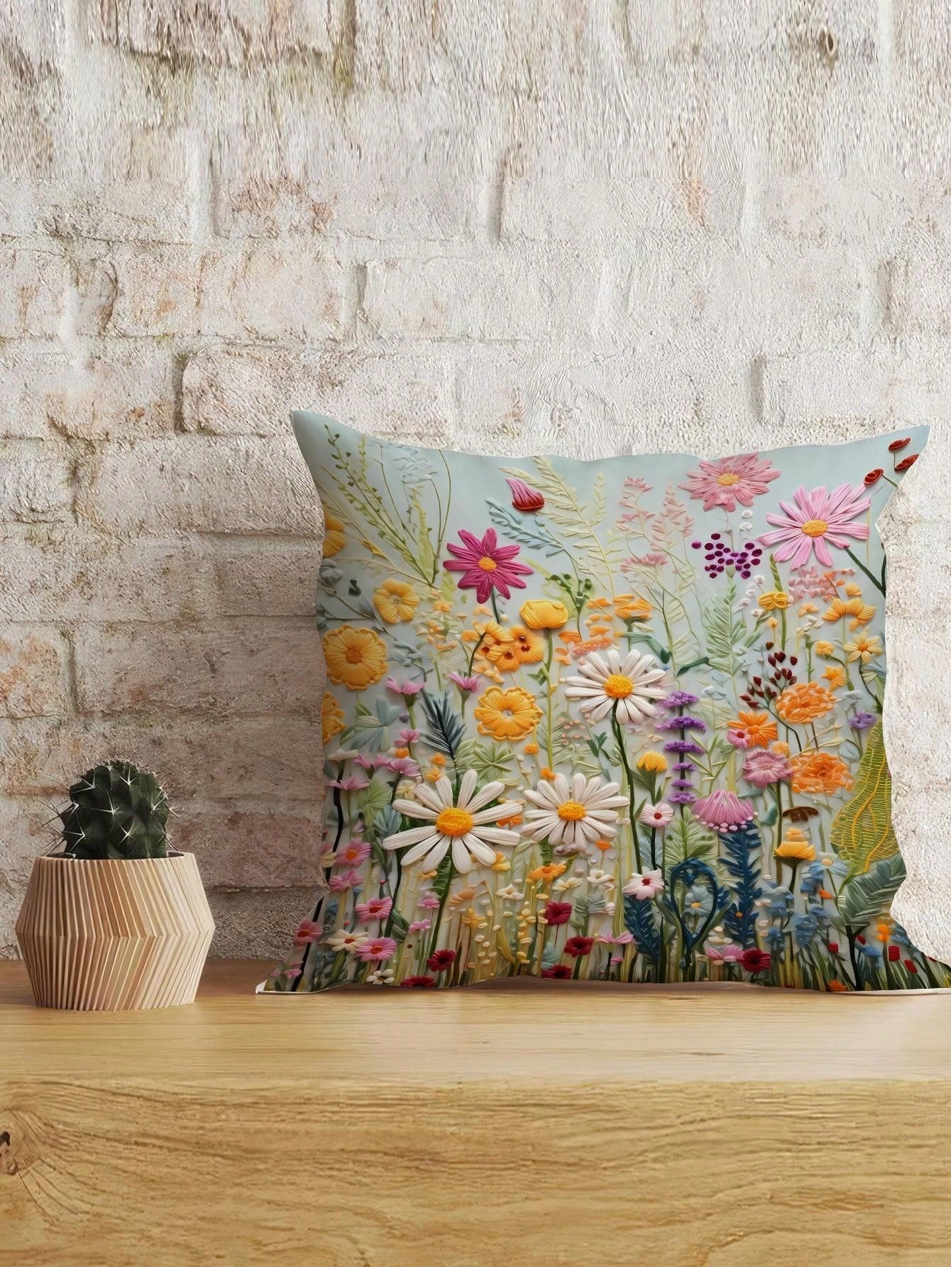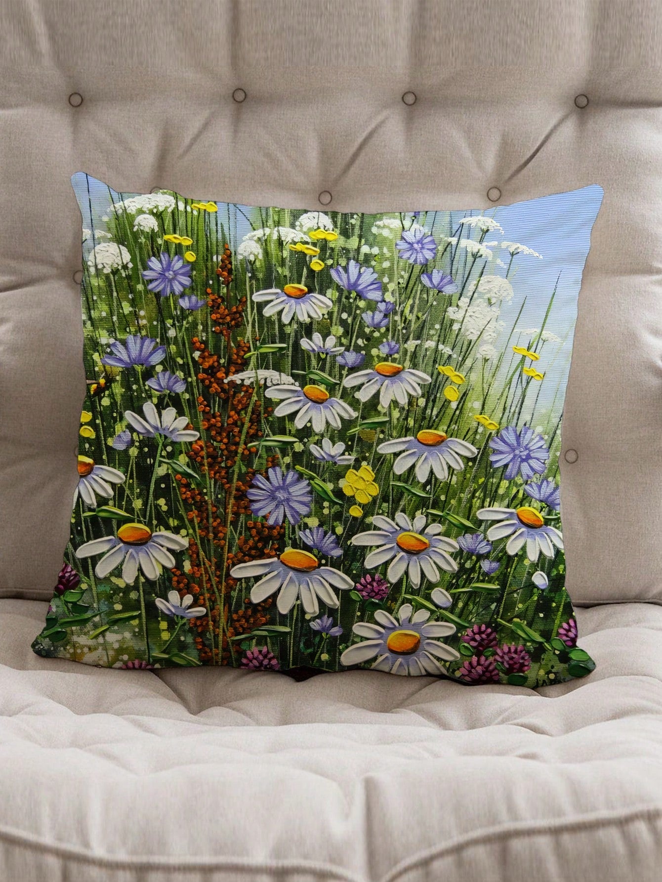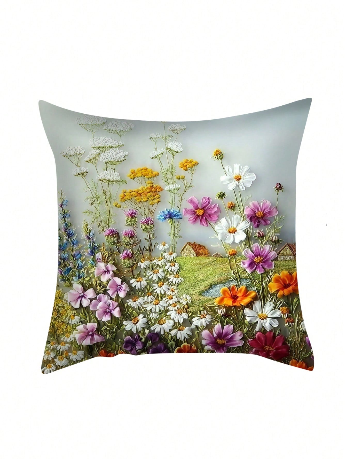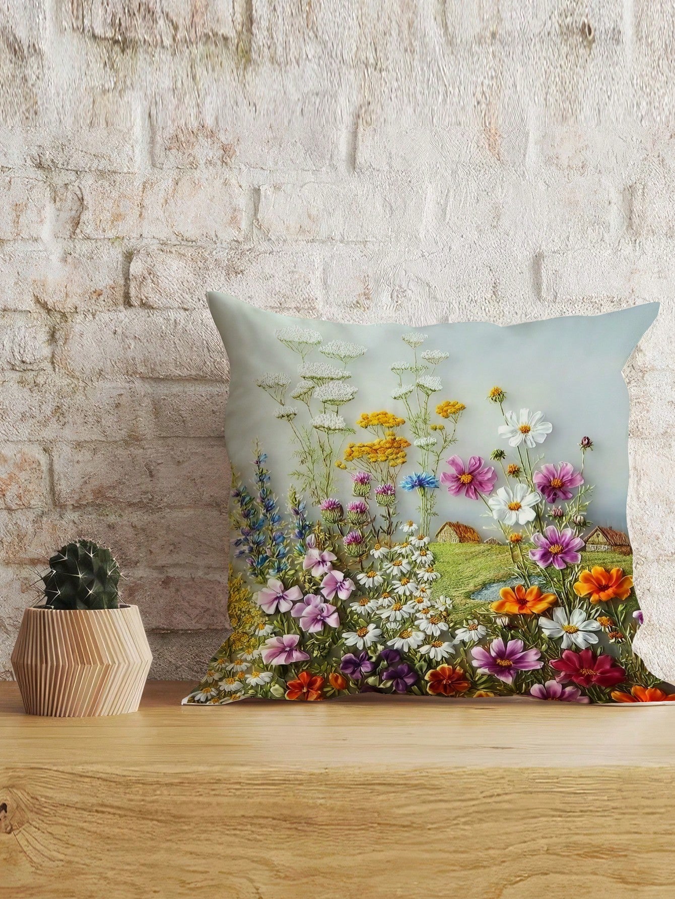 غطاء وسادة بوليستر مع نمط النباتات والزهور