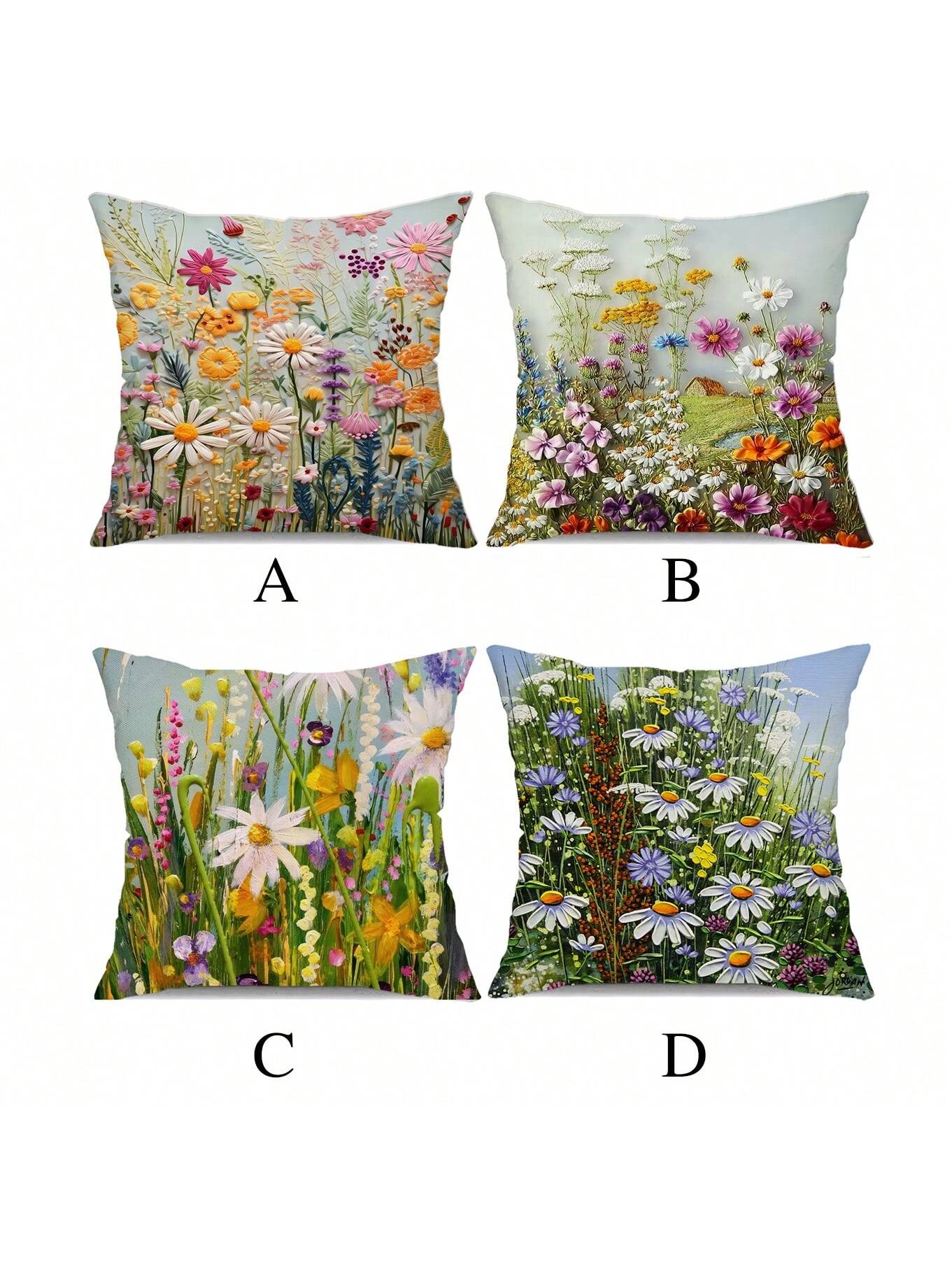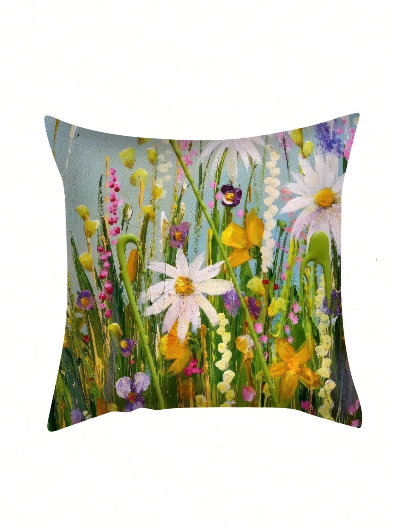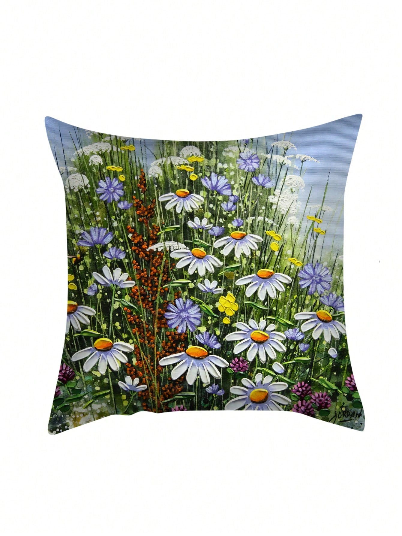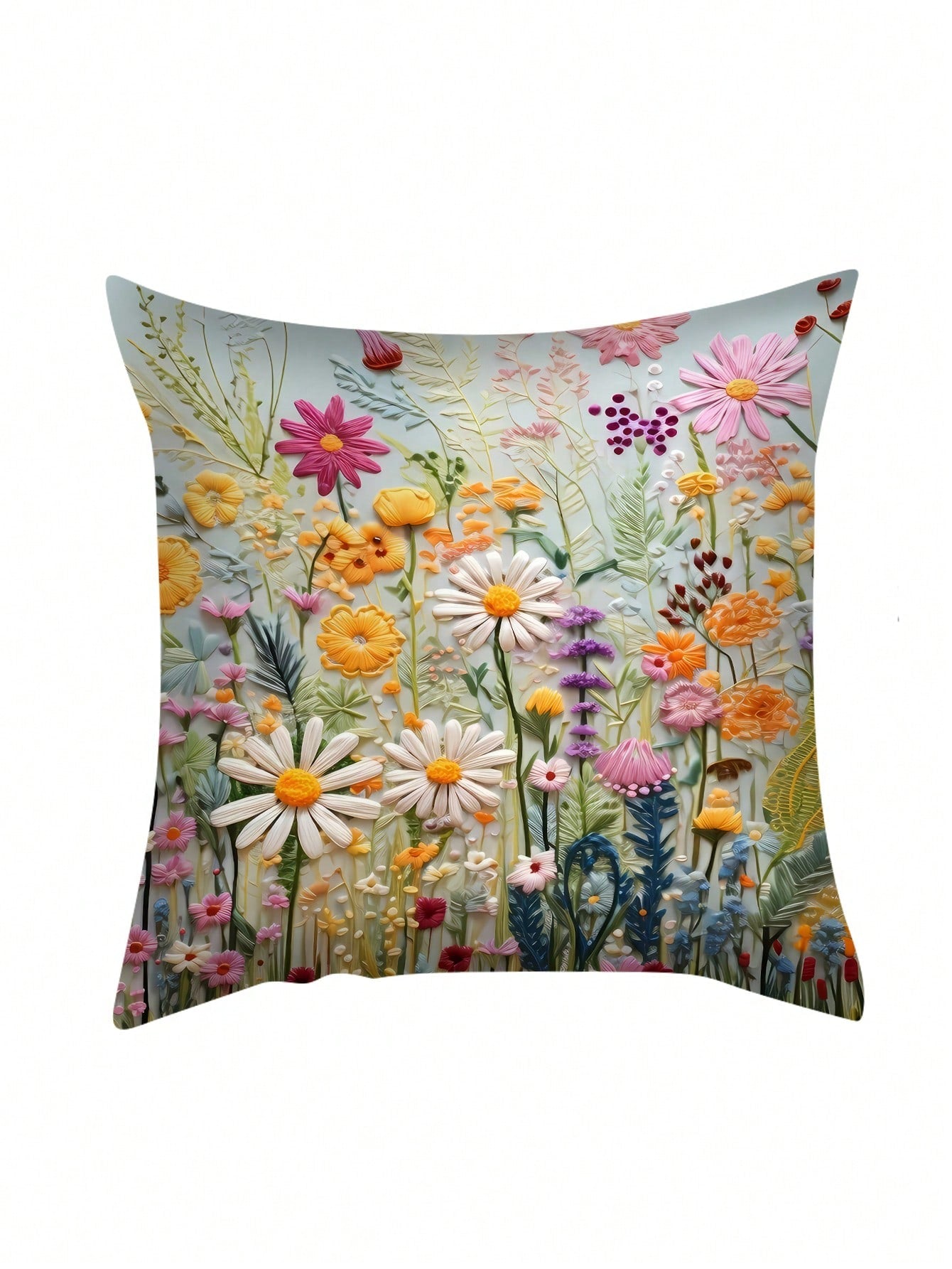 غطاء وسادة بوليستر مع نمط النباتات والزهور