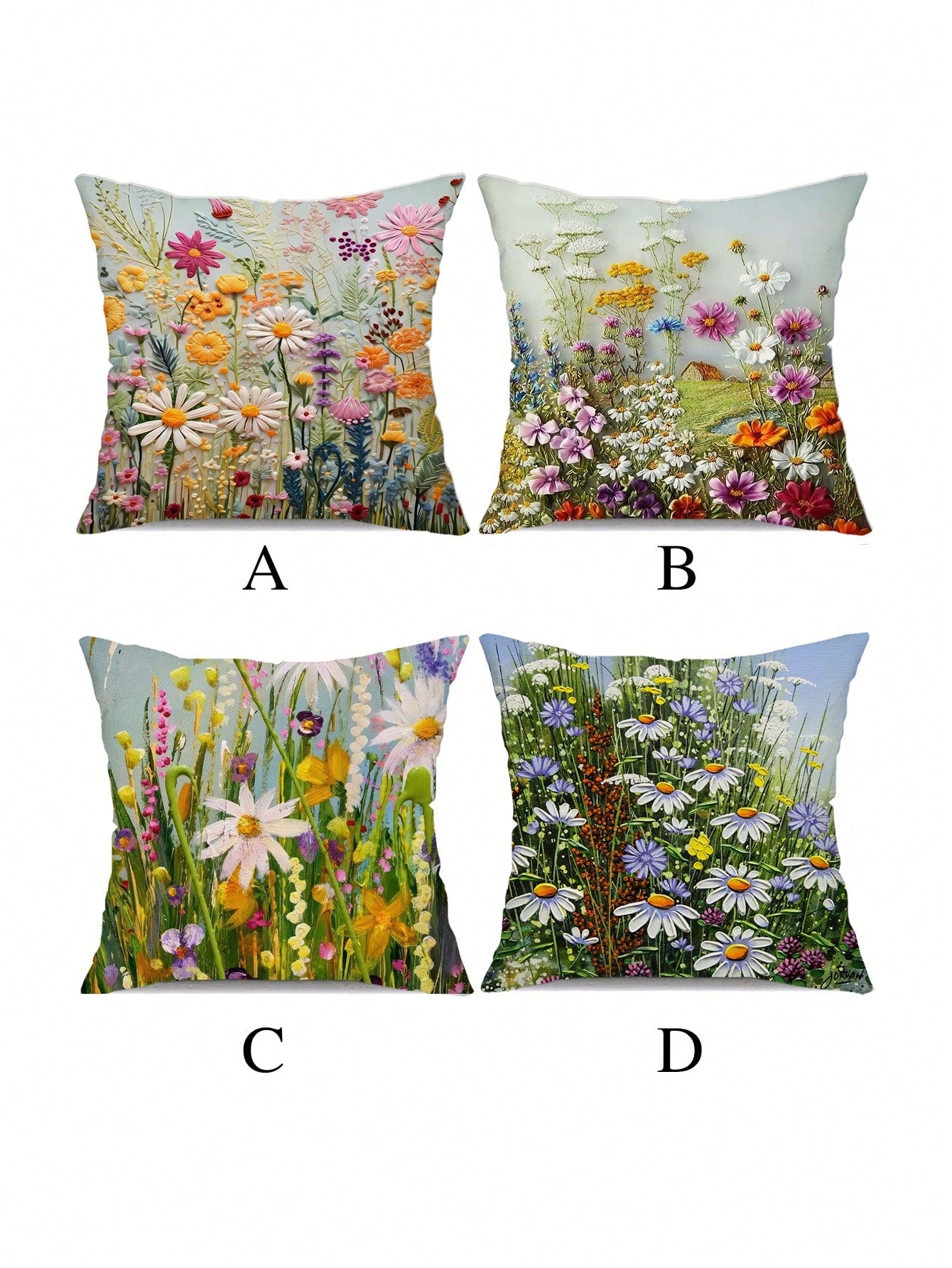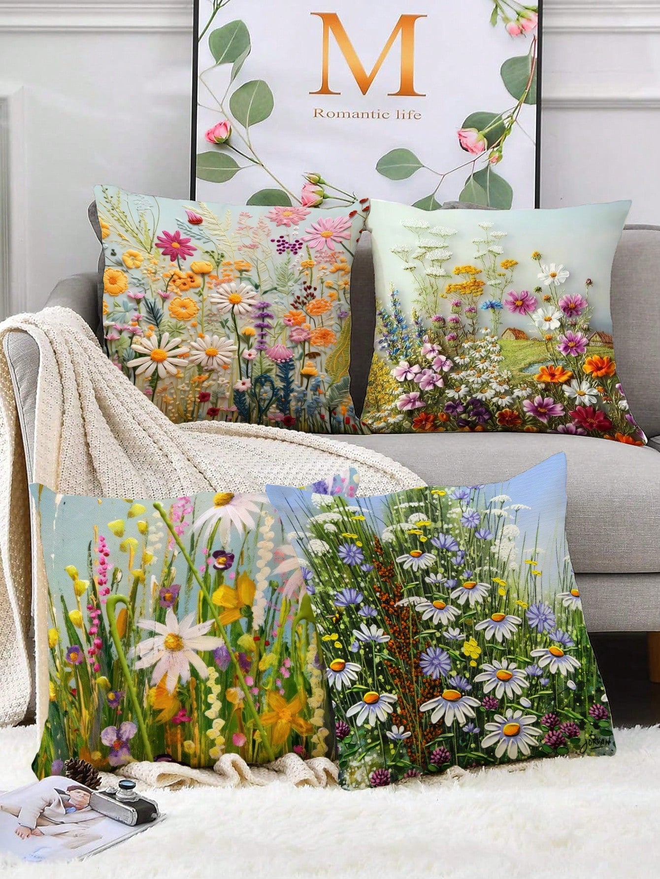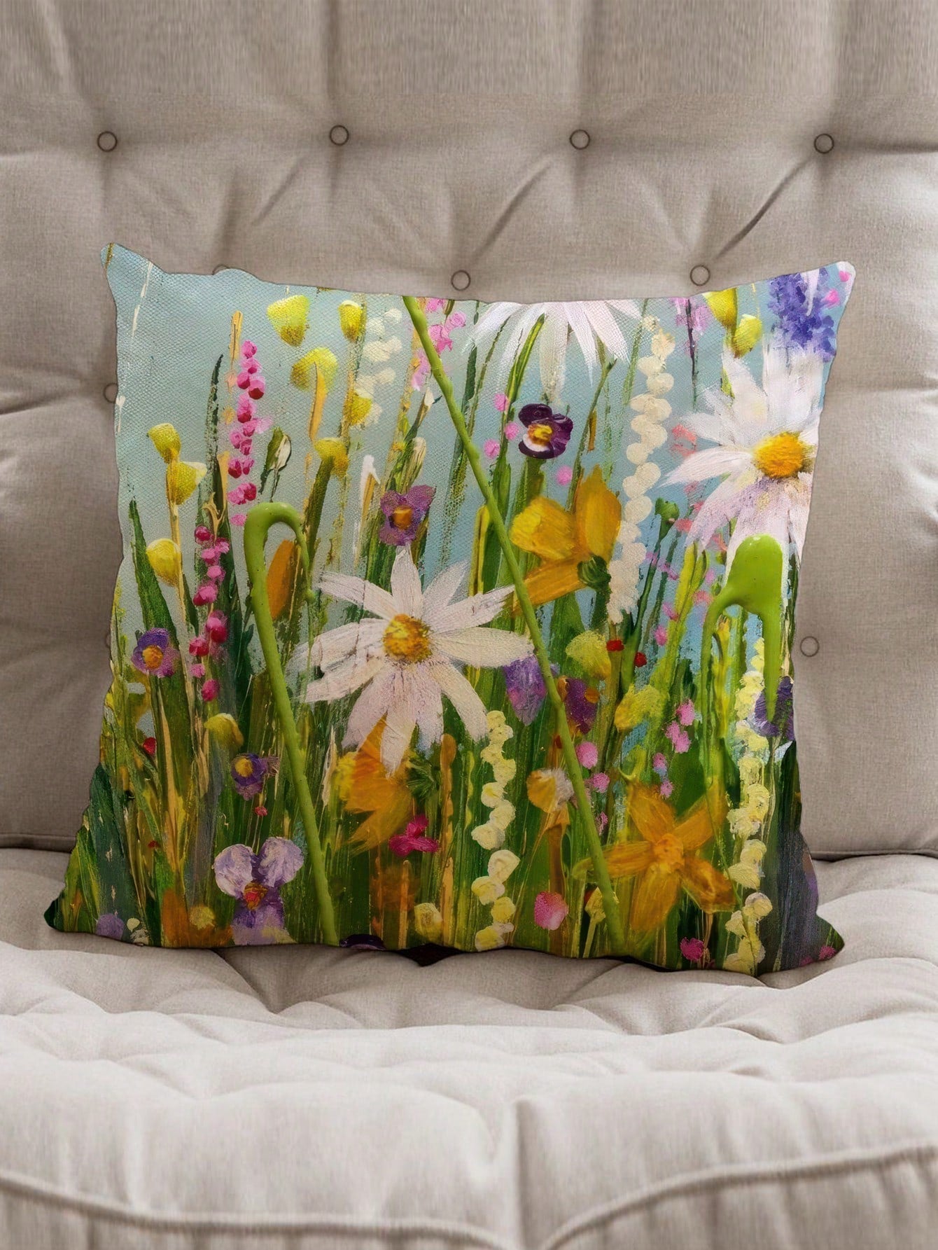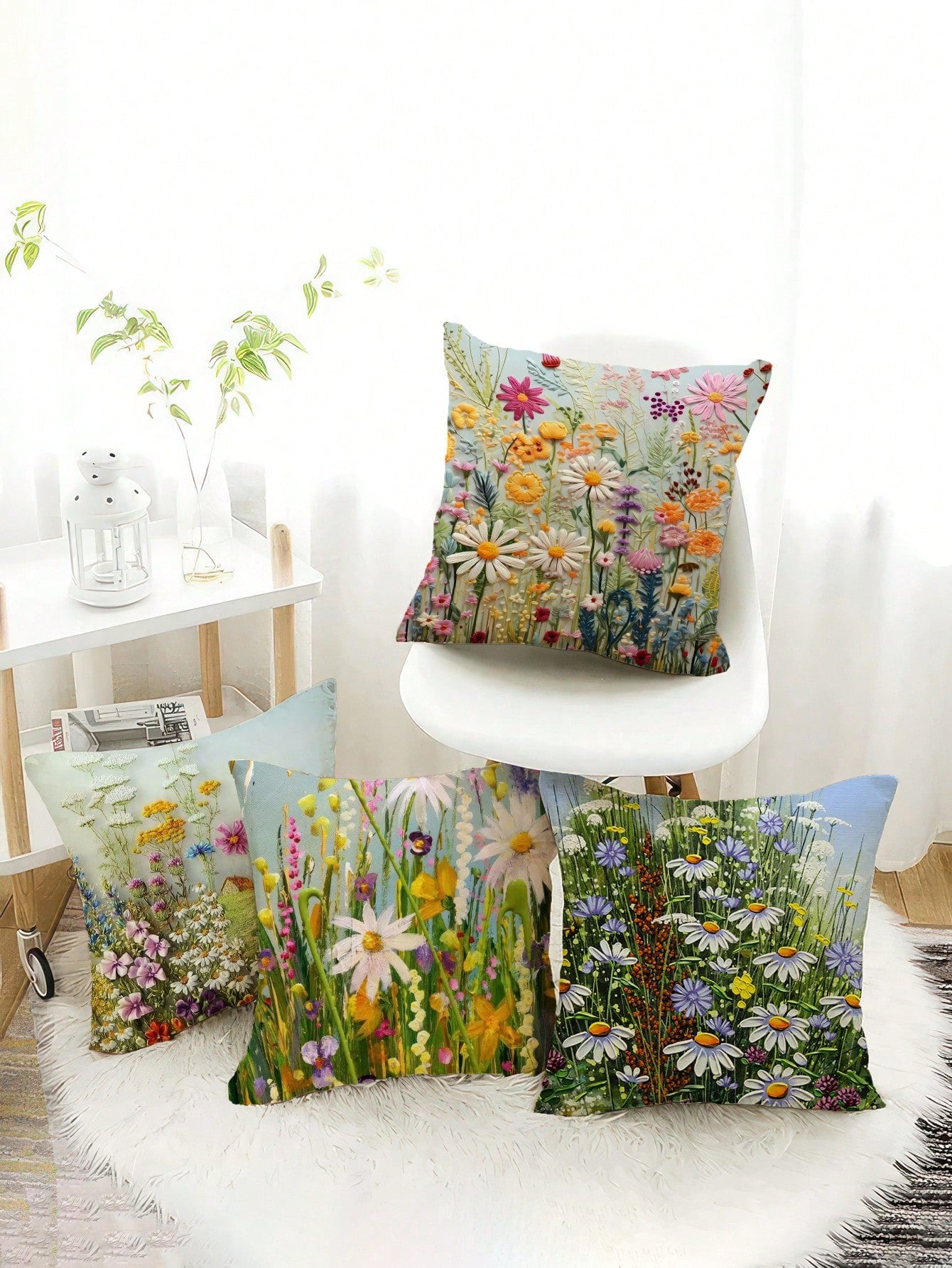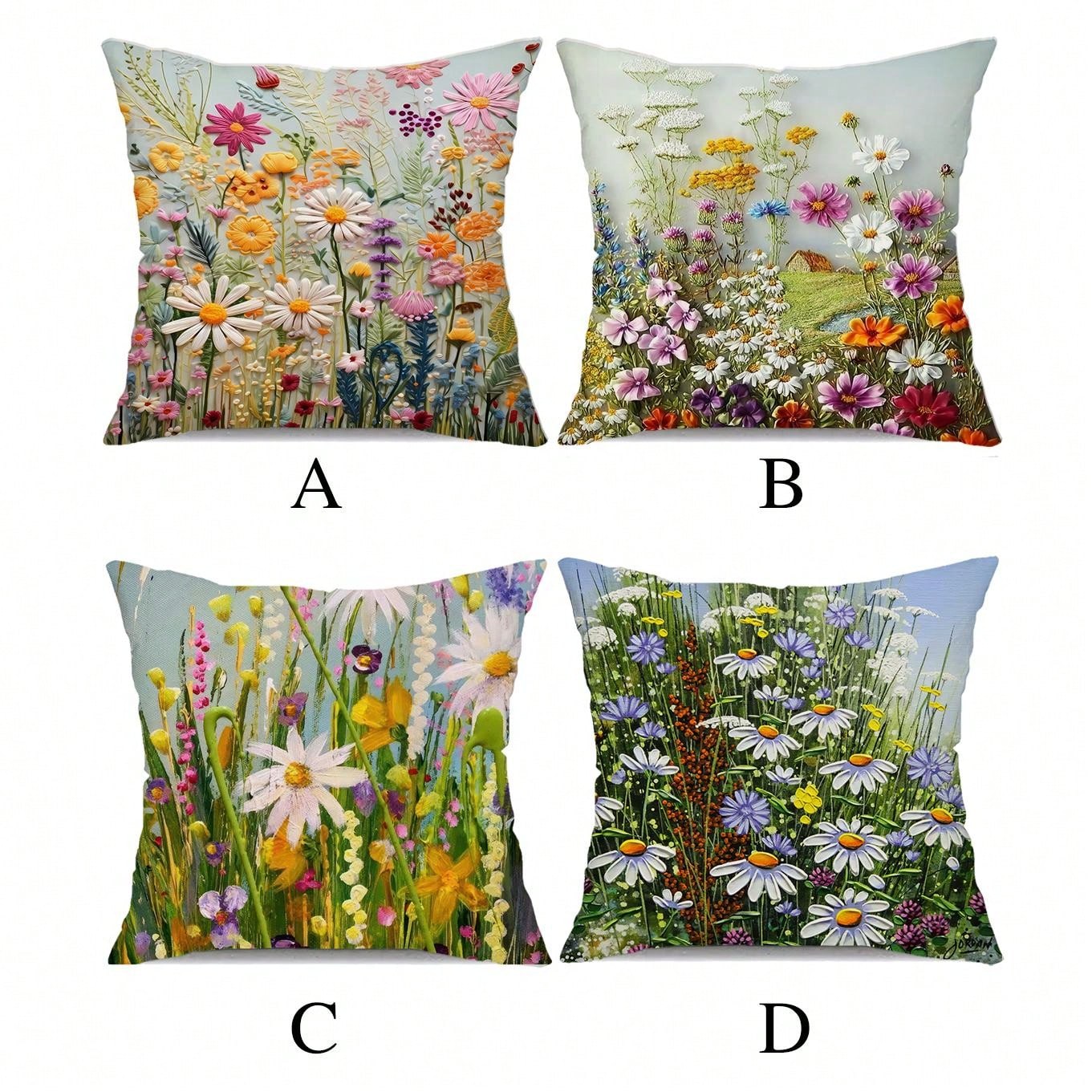 غطاء وسادة بوليستر مع نمط النباتات والزهور