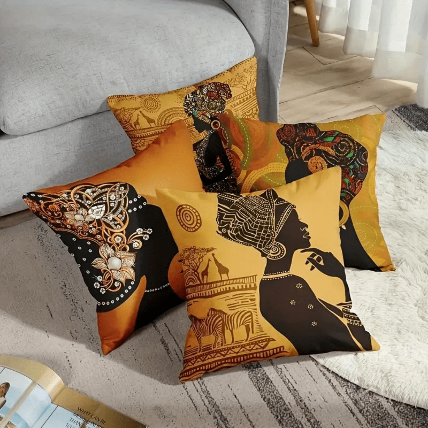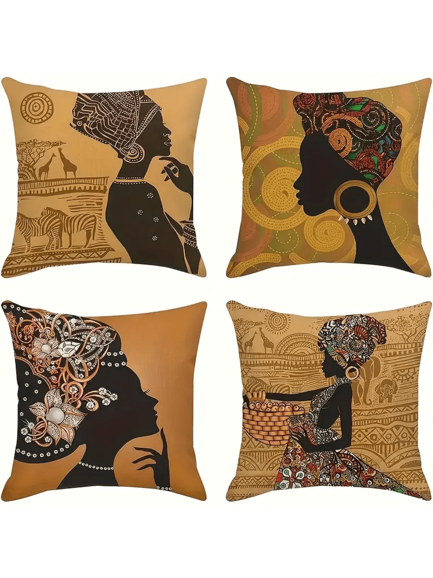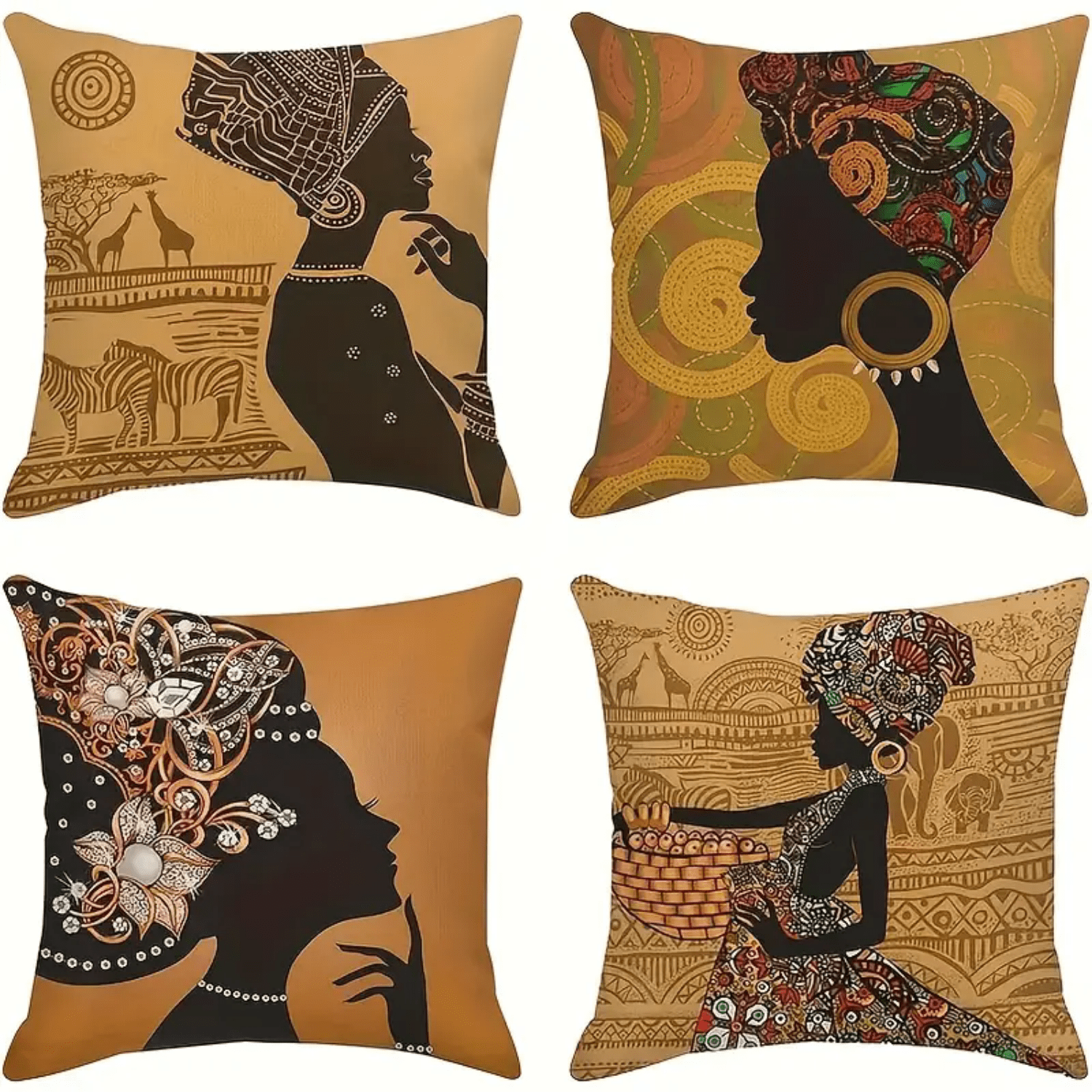 غطاء وسادة زينة نسائيات أفريقي 4 قطع لمنطقة الجلوس و الأريكة ، غطاء وسادة من الكتان (لا يشمل النواة)
