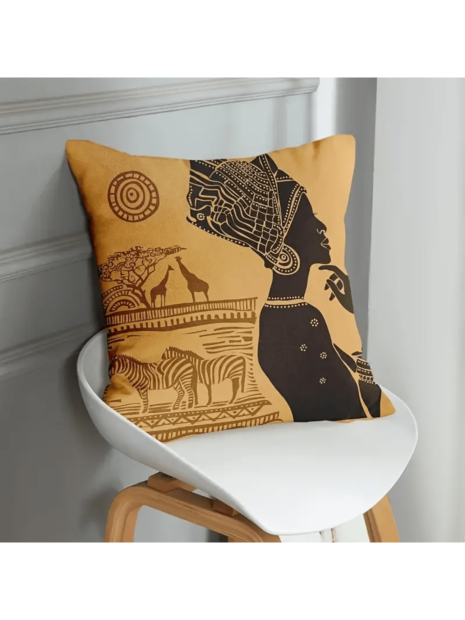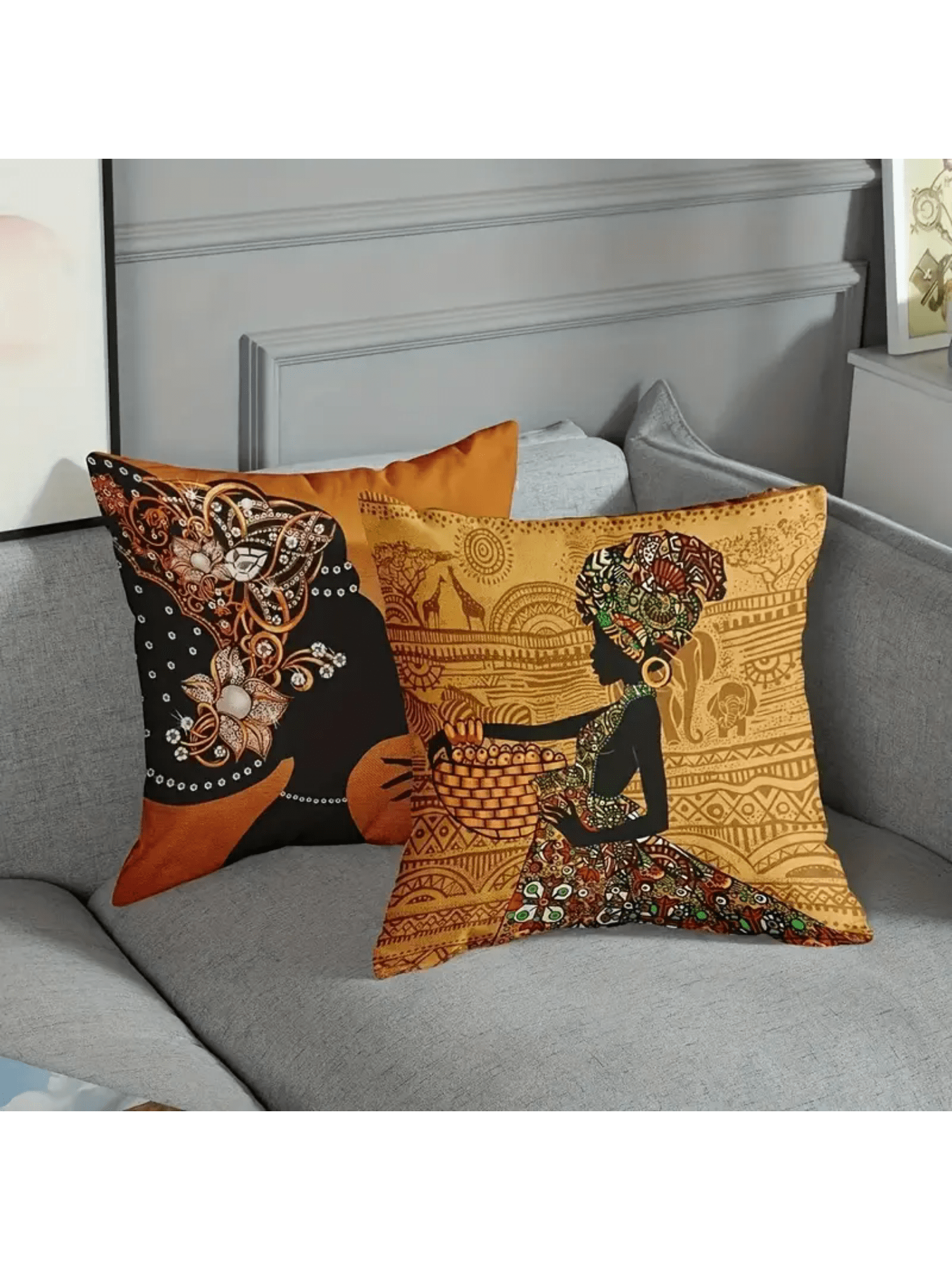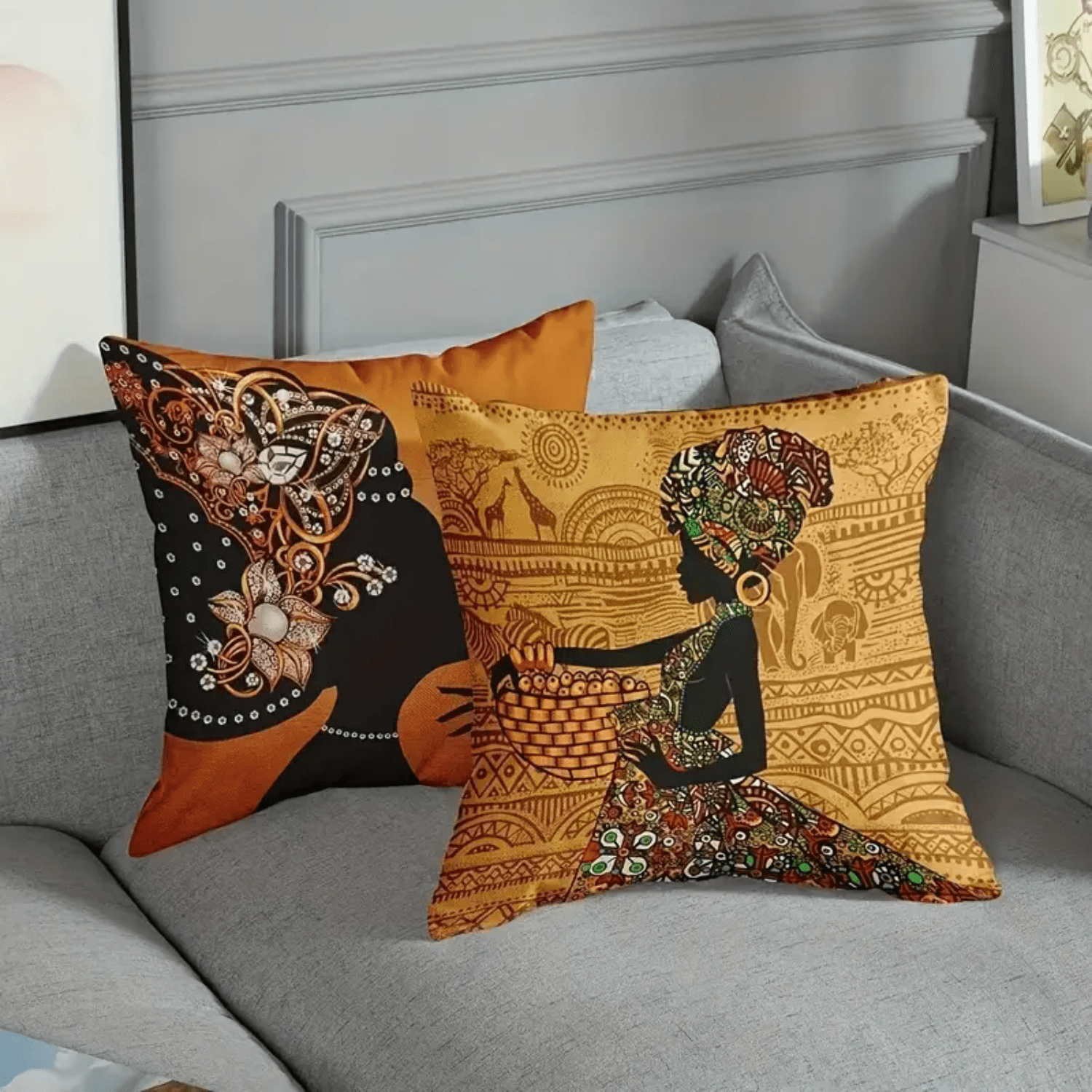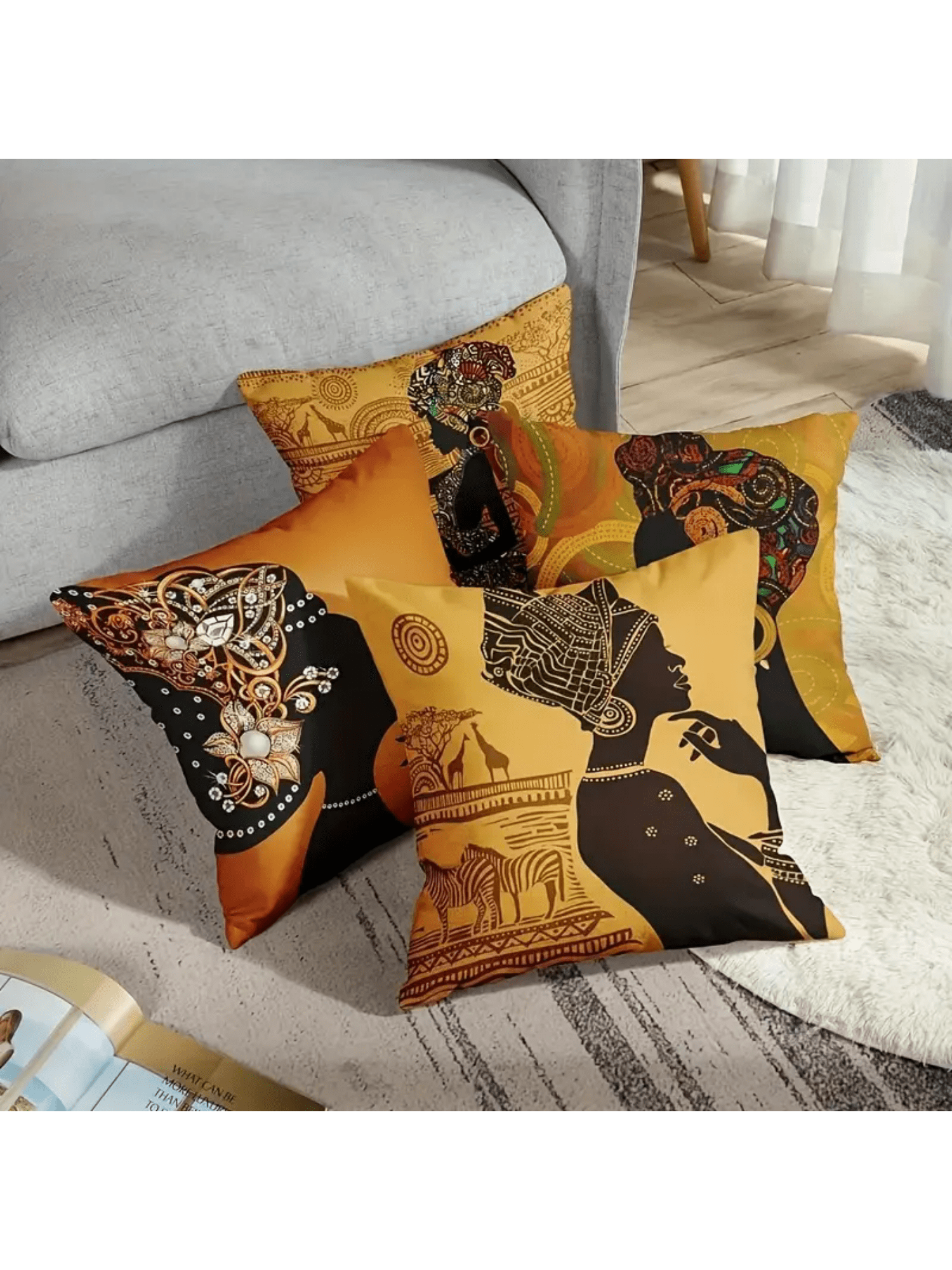 غطاء وسادة زينة نسائيات أفريقي 4 قطع لمنطقة الجلوس و الأريكة ، غطاء وسادة من الكتان (لا يشمل النواة)