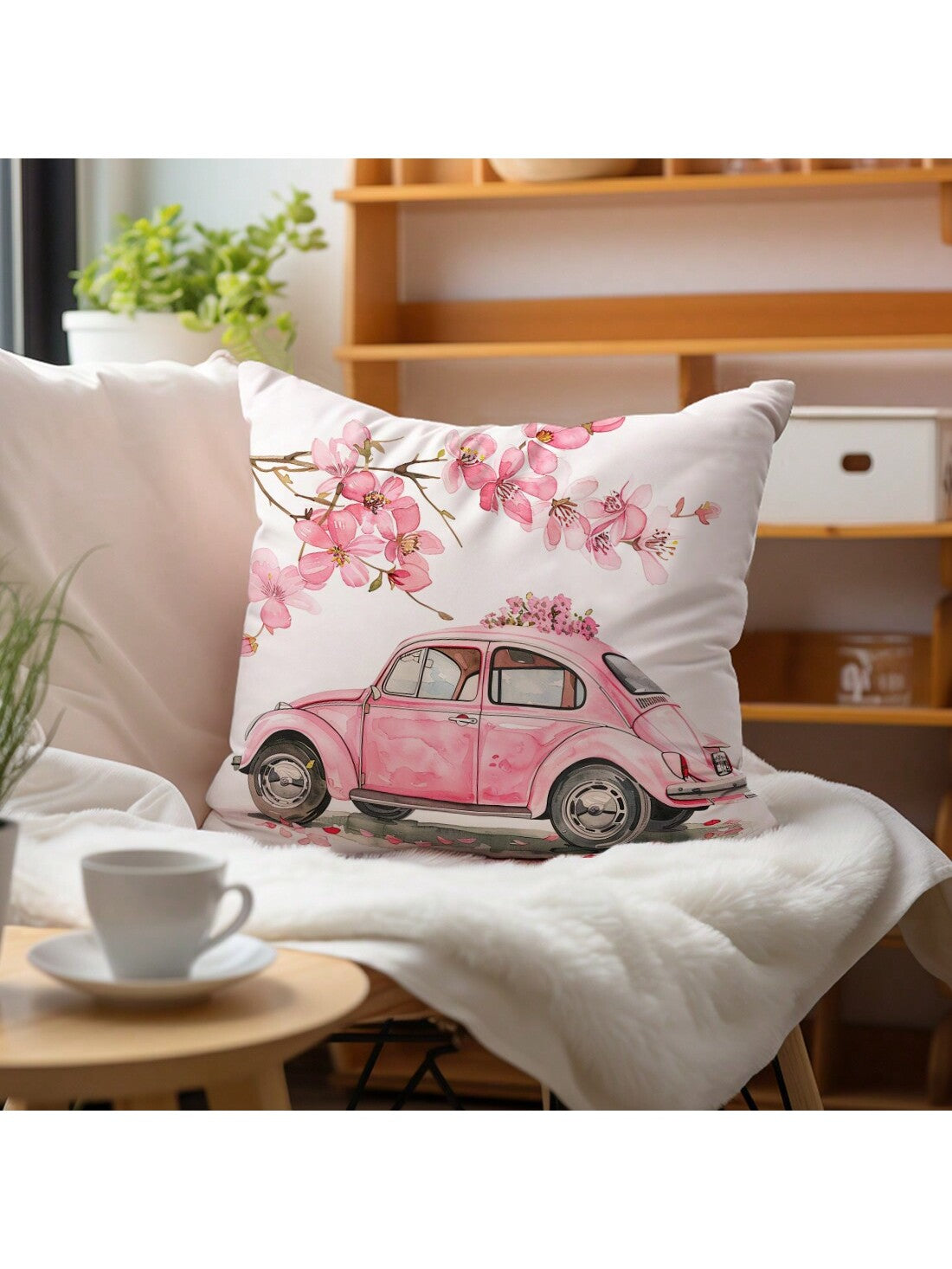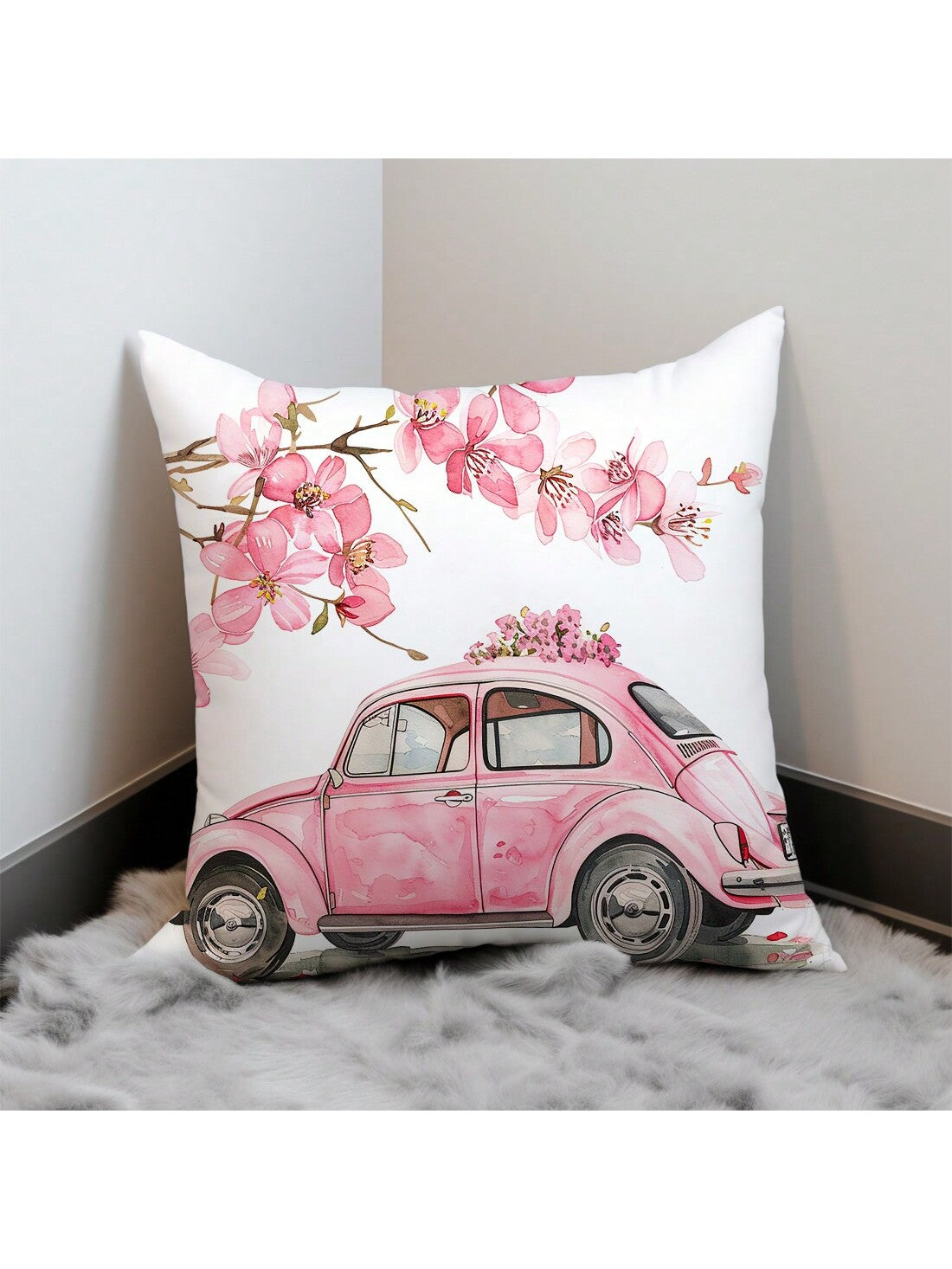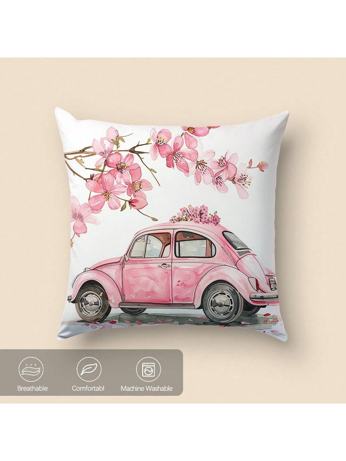 غطاء وسادة على شكل قلب بنمط وردى سيارة زهرية
