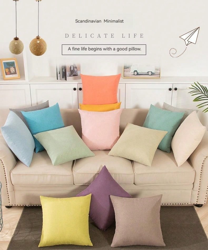 غطاء وسادة قطني بلون واحد لطيف باللون الوردي ، والأخضر ، والأزرق، وغيرها
