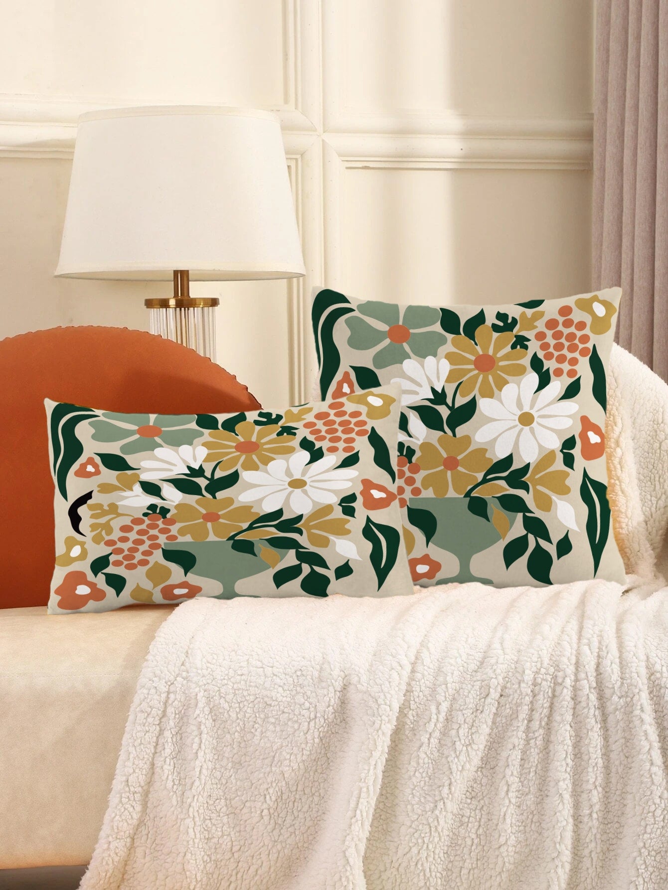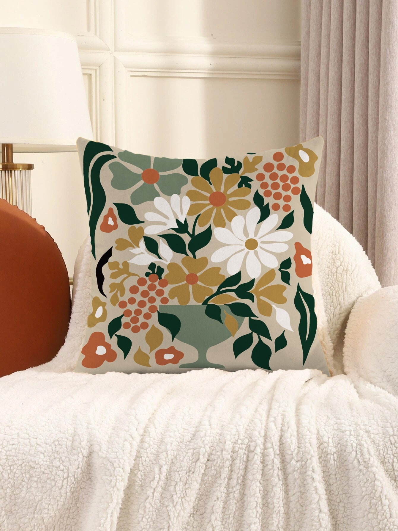 غطاء وسادة مطبوع بنمط زهرة الكوب البسيط العصري بدون حشو