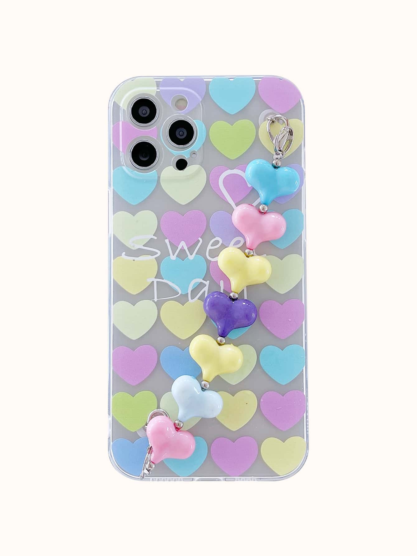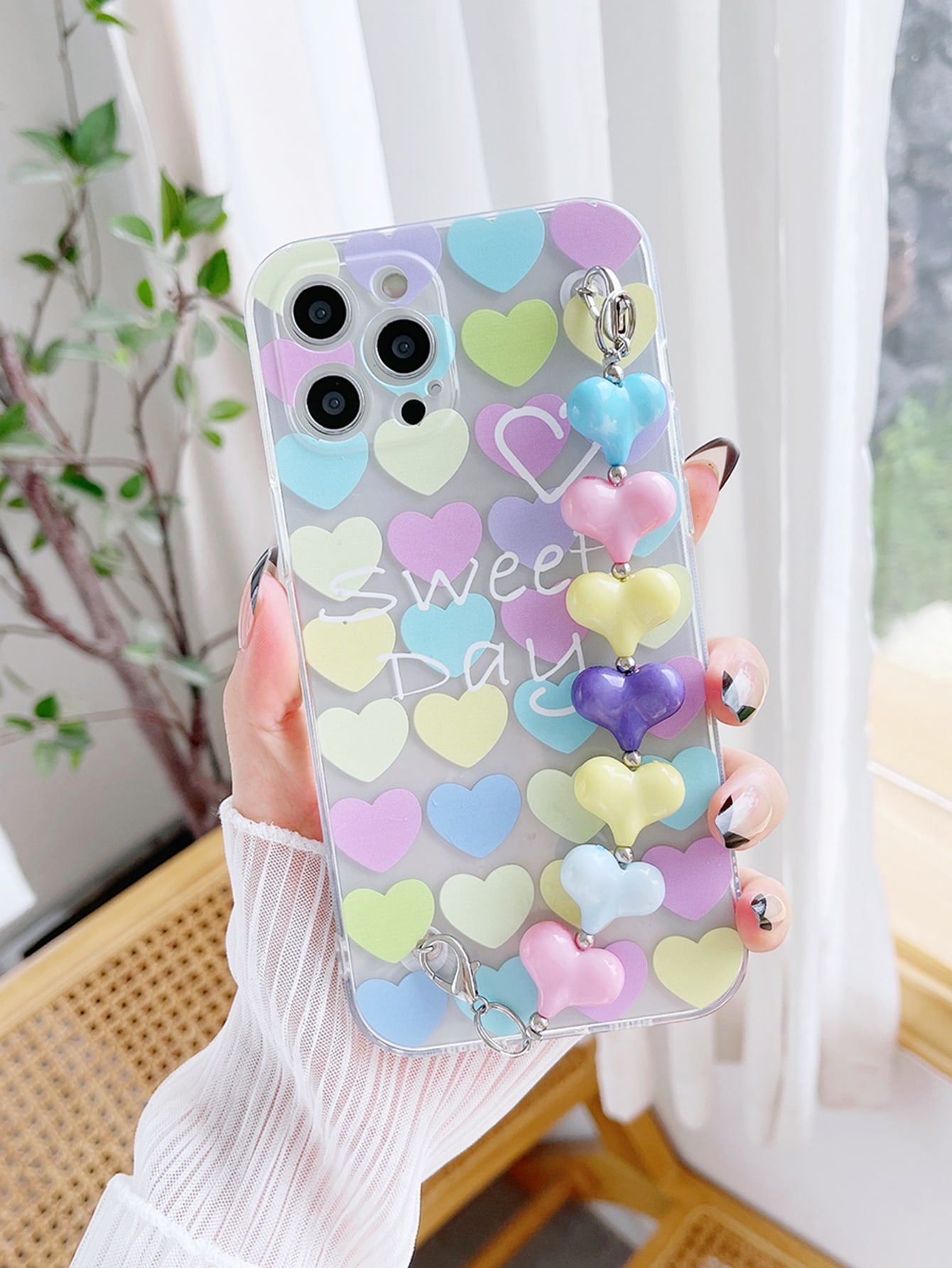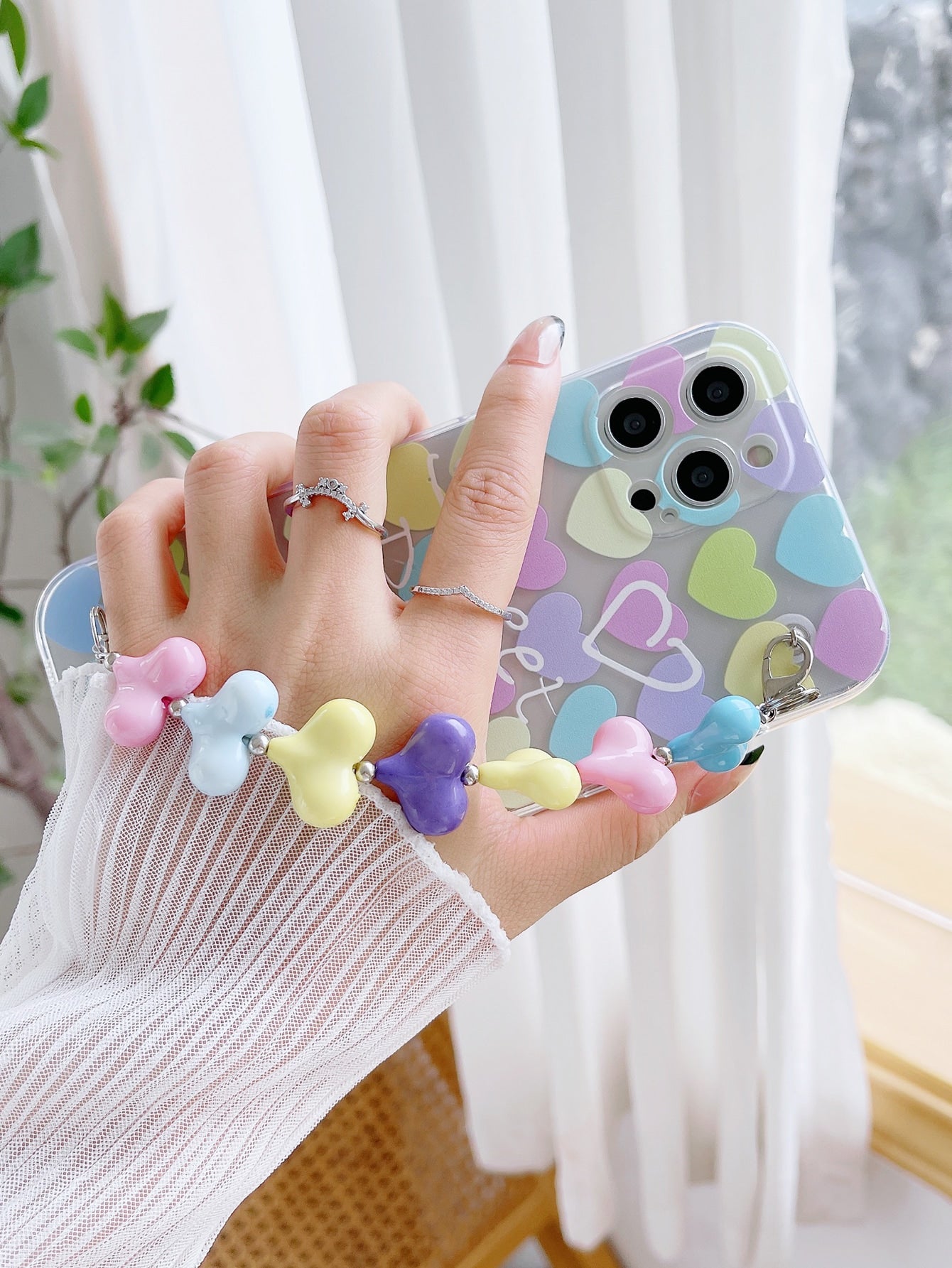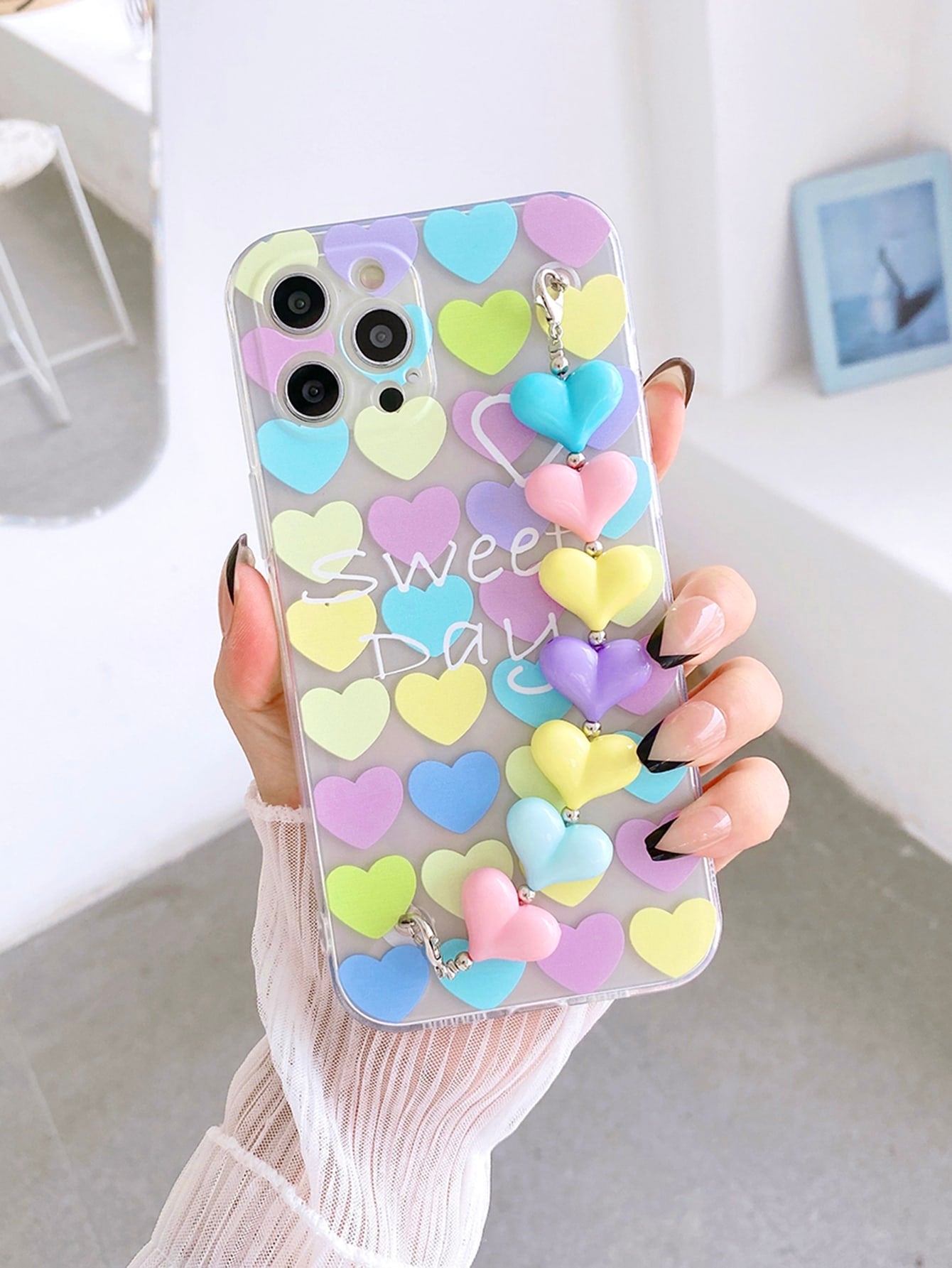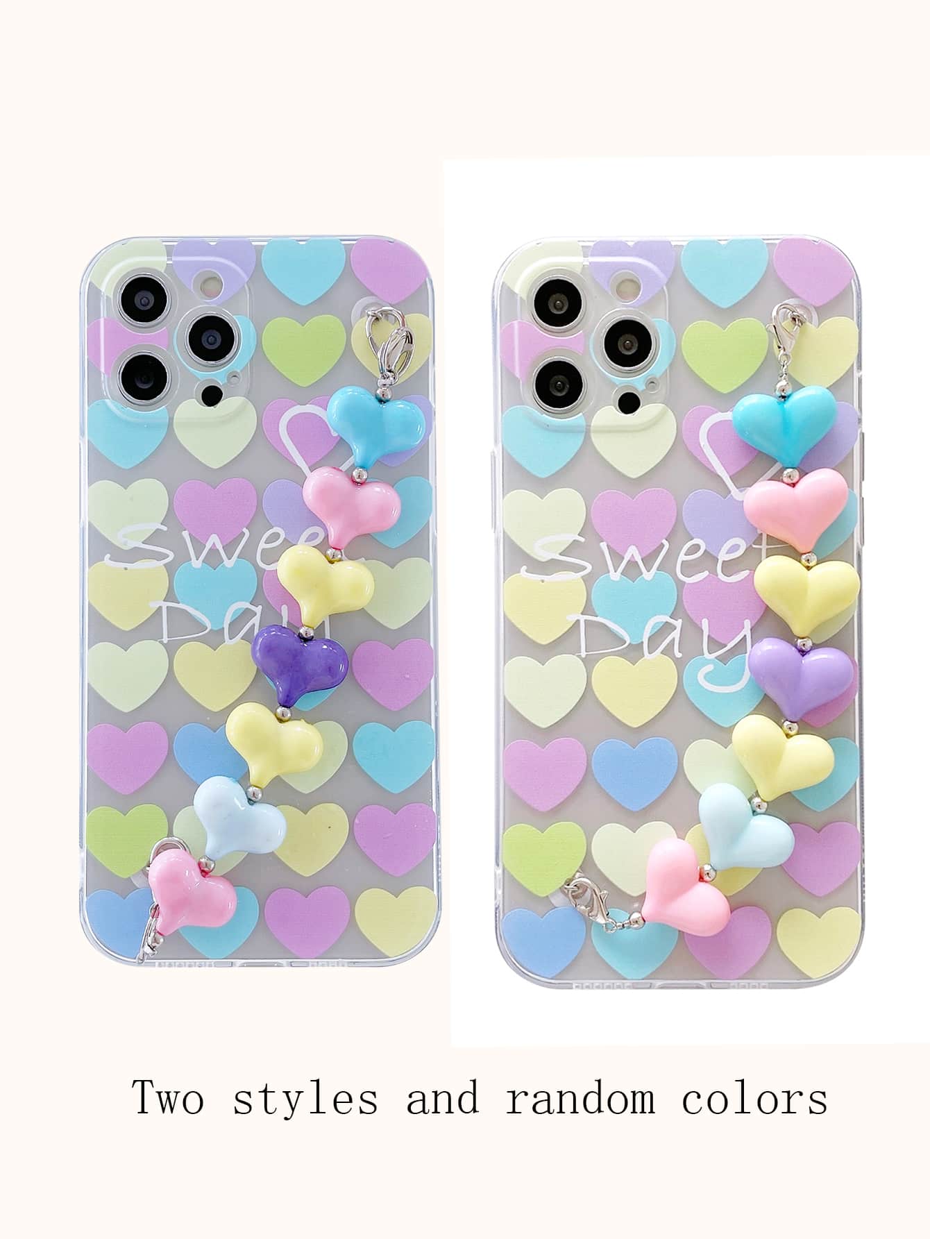 غلاف جوال بحلية سلسلة ملونة على شكل قلب متوافق مع آيفون 15 برو ماكس قطعة واحدة