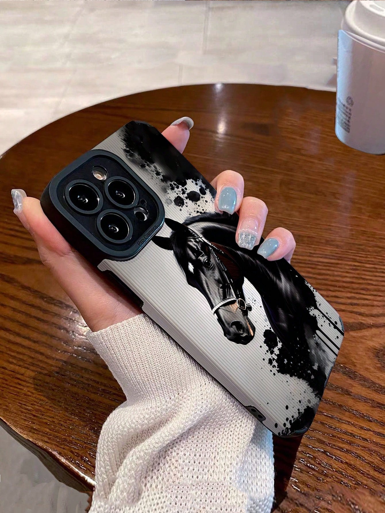 غلاف هاتف للرجال قطعة واحدة من الجلد الاصطناعي مطبوع بنقشة الحصان، ملمس ناعم مقاوم للسقوط